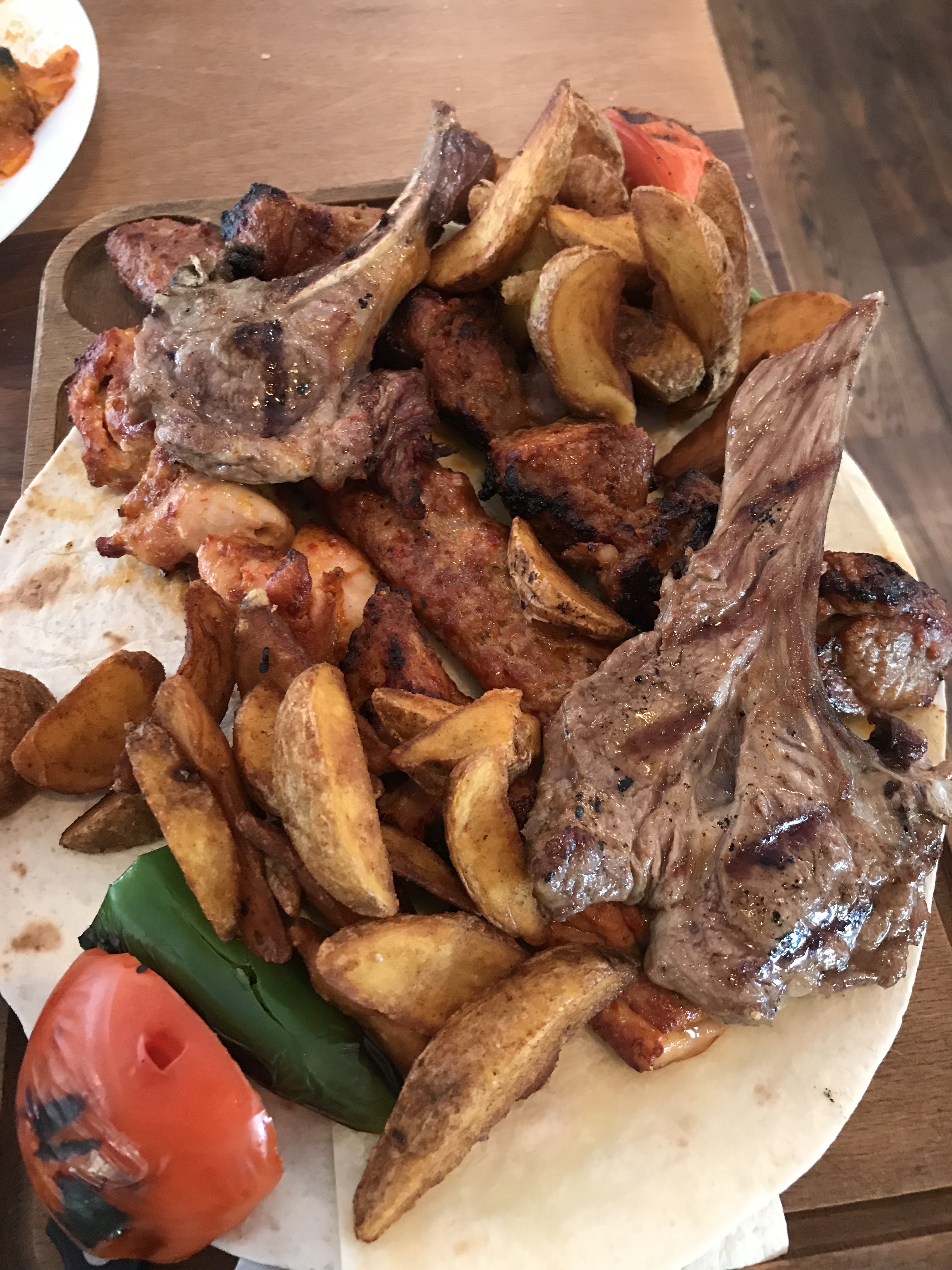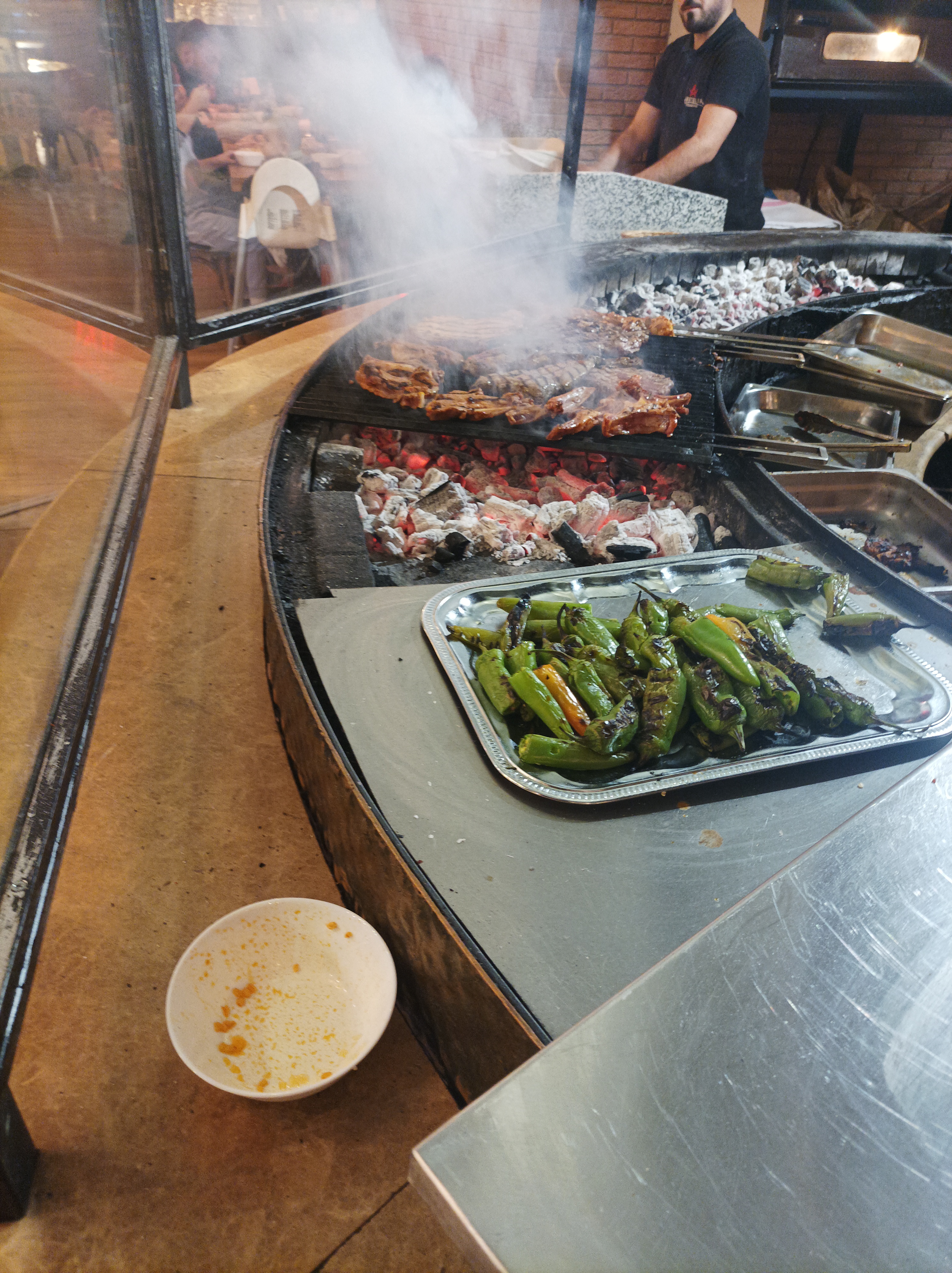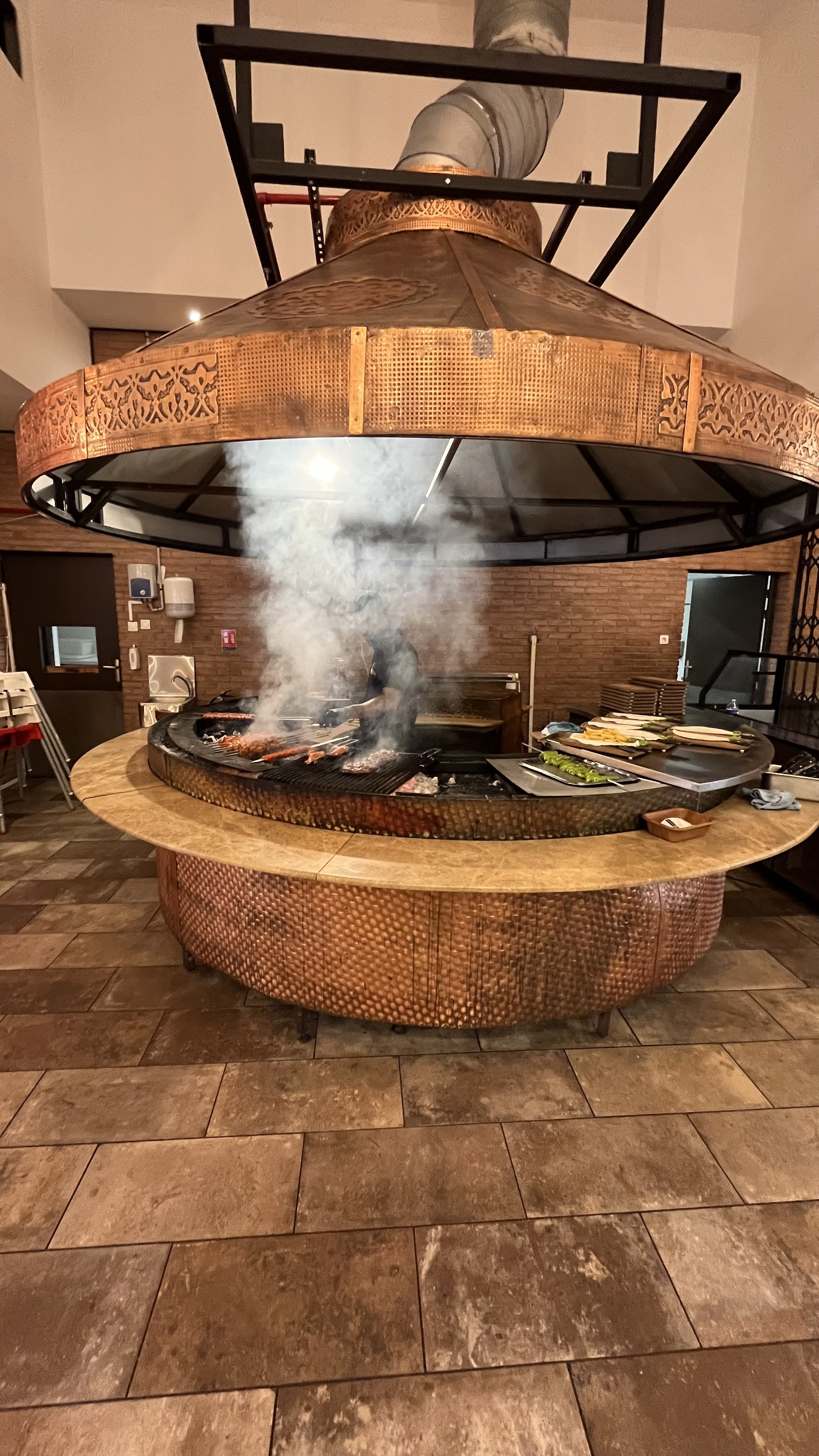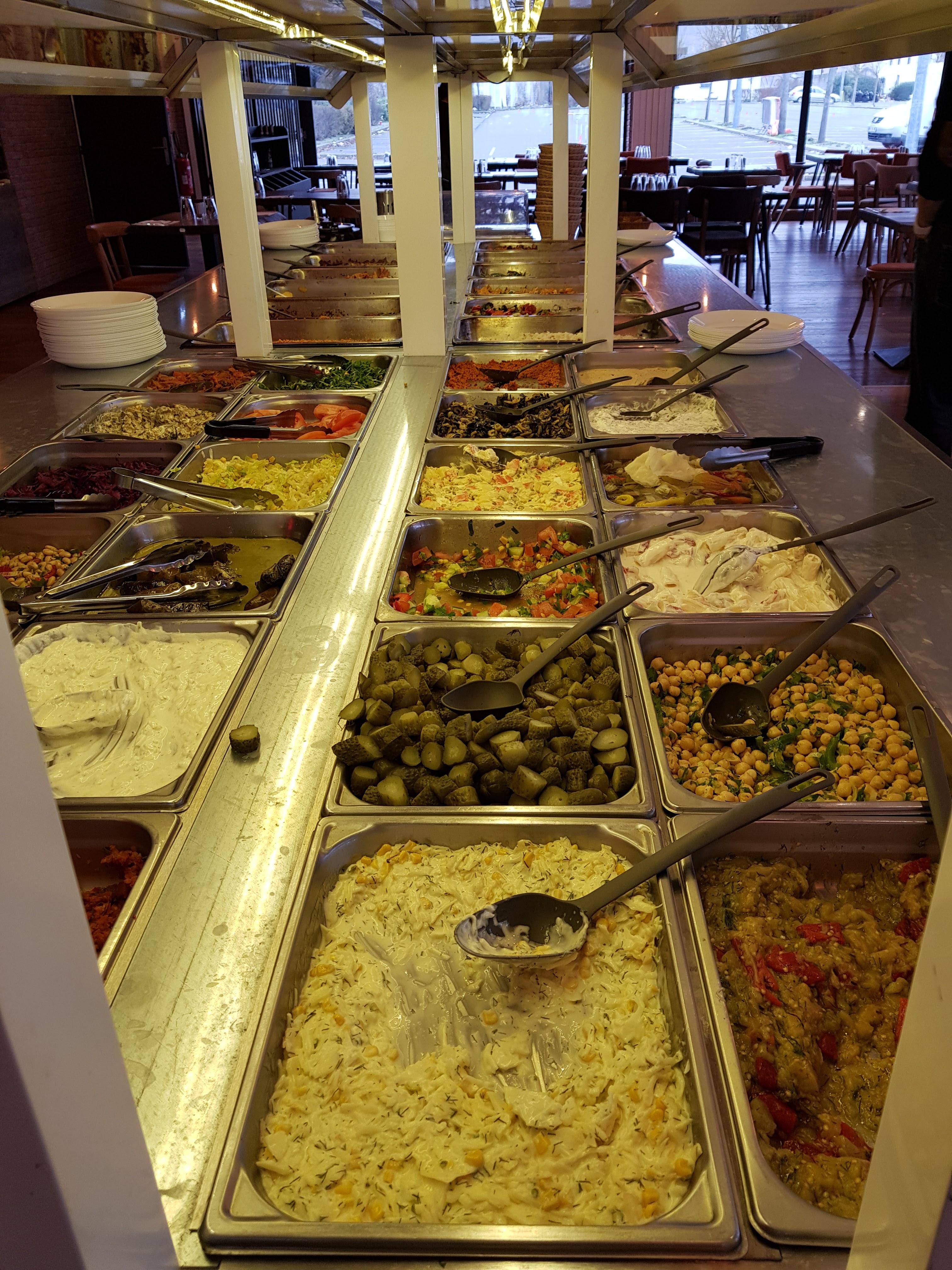 Restaurant spacieux, familial et convivial. Cuisson de la viande au charbon, personnel sympathique et accueillant. Buffet à volonté très varié passant des épinards mijotés au feuilles de vignes, choux de Bruxelles, haricots verts, blé, diverses salades., accompagné d’une viande au choix parmi le menu. Prix moyen 21€ menu enfant 11€. Seul bémol manque de choix au niveau déserts sinon Belle trouvaille.