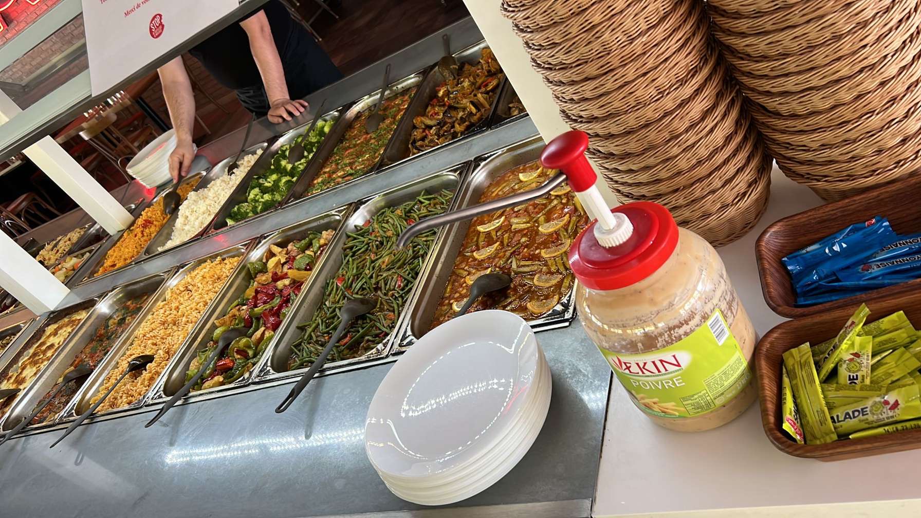 Bien accueilli dans l'ensemble. Serveuse avenante. Le reste est sans plus. Les plats chauds sont froids mais vraiment froid. La bavette est sans goût mais les brochettes d'agneau à un goût de 3 jours dans le frigo mais le poulet est très bon. On voit ce qui est renouvelé quotidiennement ou non. La mousse au chocolat est bonne dommage qu'on puisse en prendre qu'une sinon la deuxième est facturée. Malheureusement, je ne le referait pas.