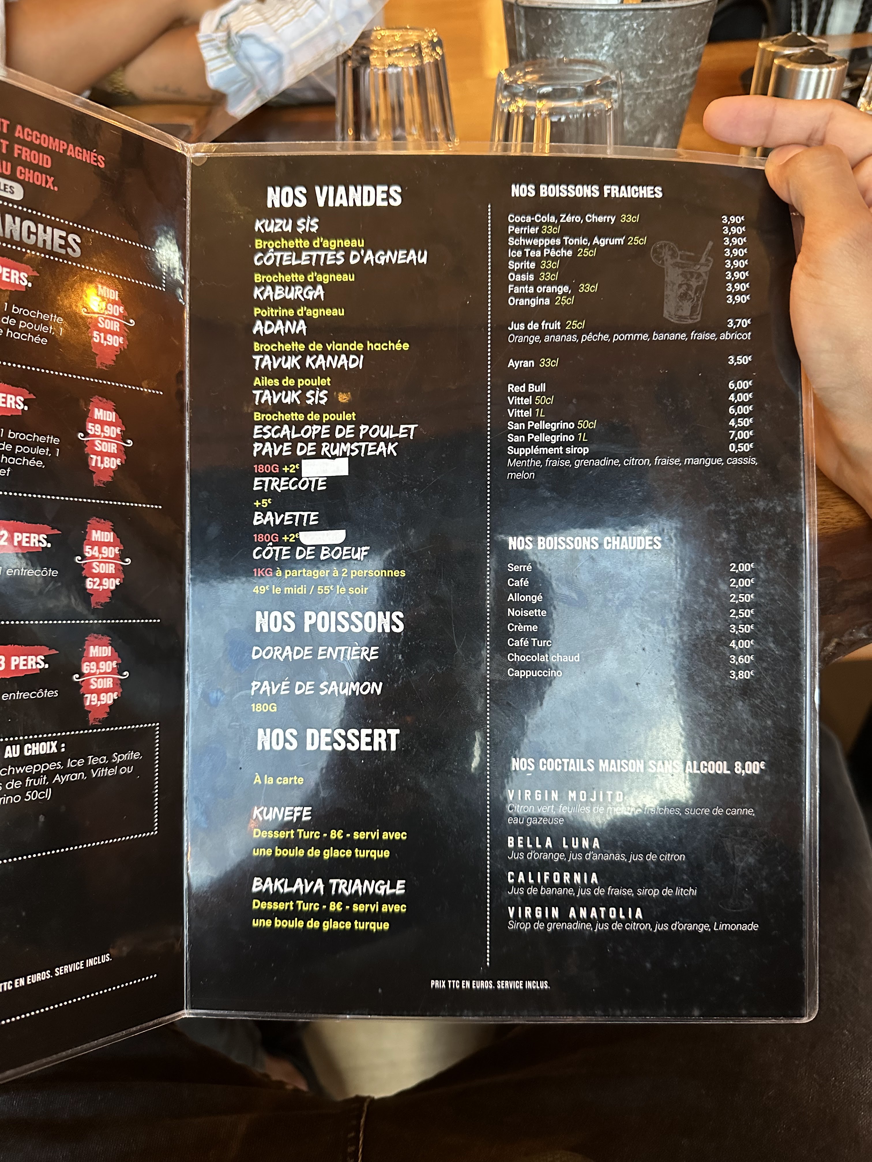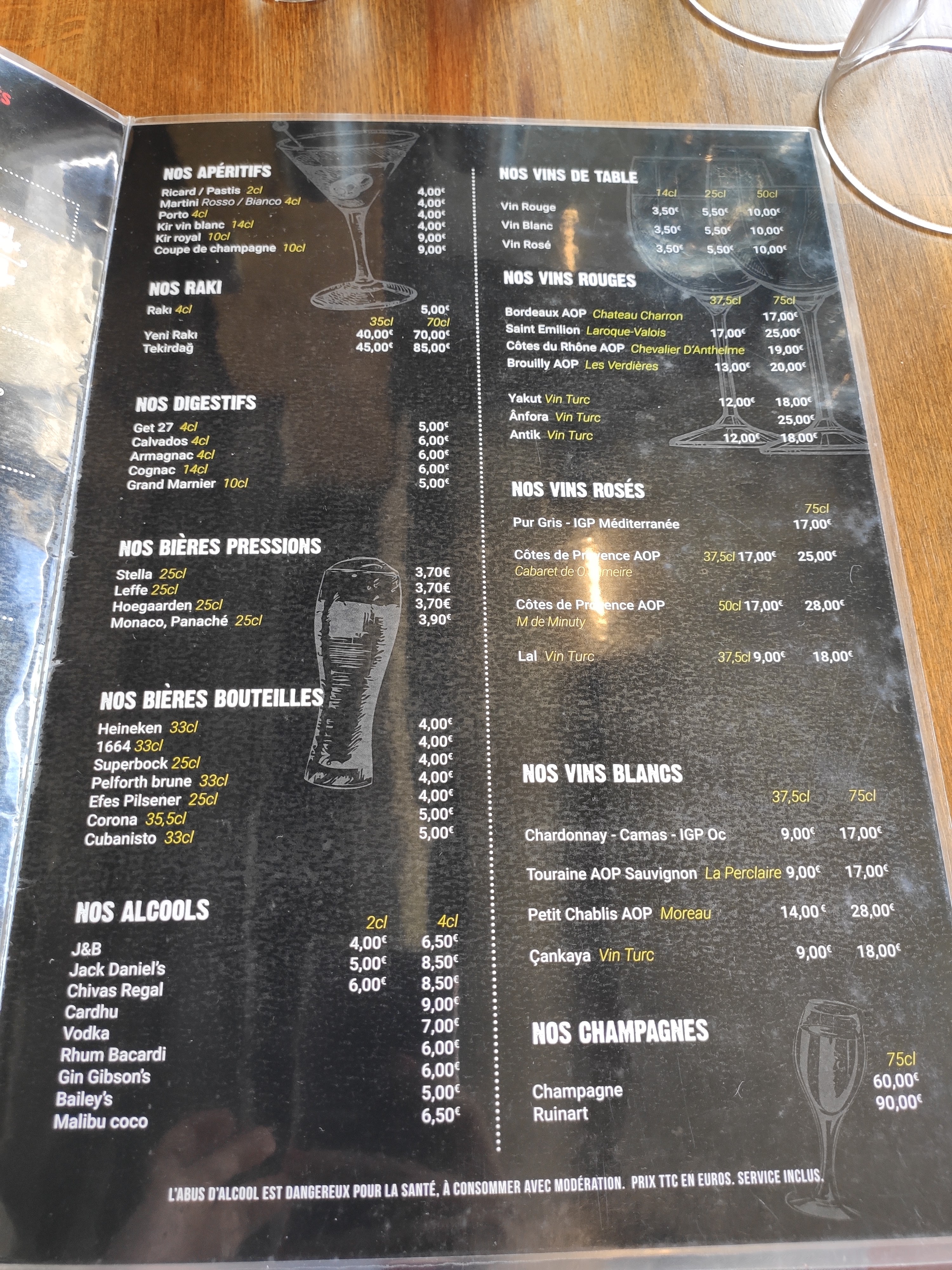 Bonne adresse si vous cherchez un restaurant spécialisé dans la cuisine Turc ! Nous étions 6 personnes et avons réservé préalablement. Dans le menu, il est inclus le dessert et d'un buffet chaud et froid. La cuisine était bonne ! Le personnels étaient très gentils.