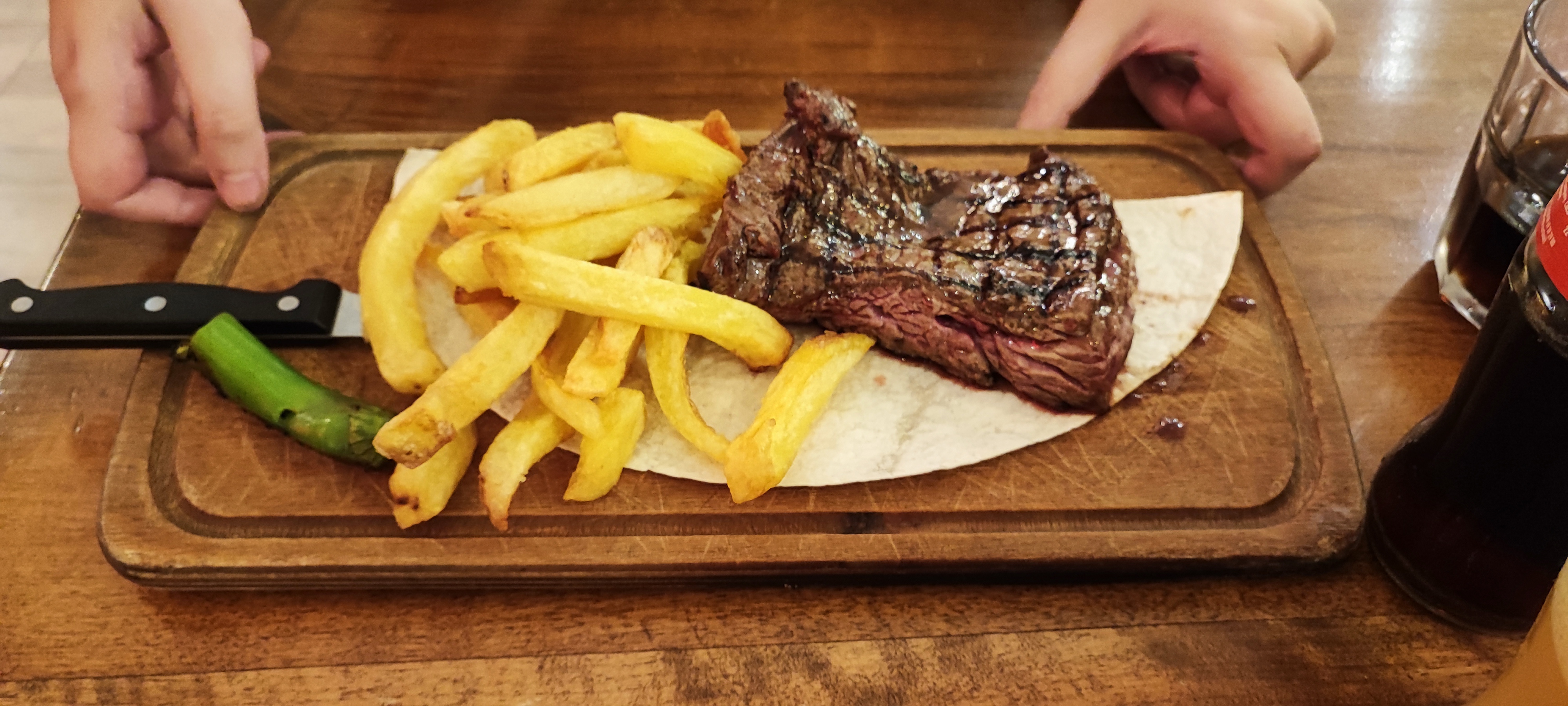 Viande super bonne restaurant très grand idéale aussi pour fêter des anniversaires serveuse très gentille à l'écoute je recommande