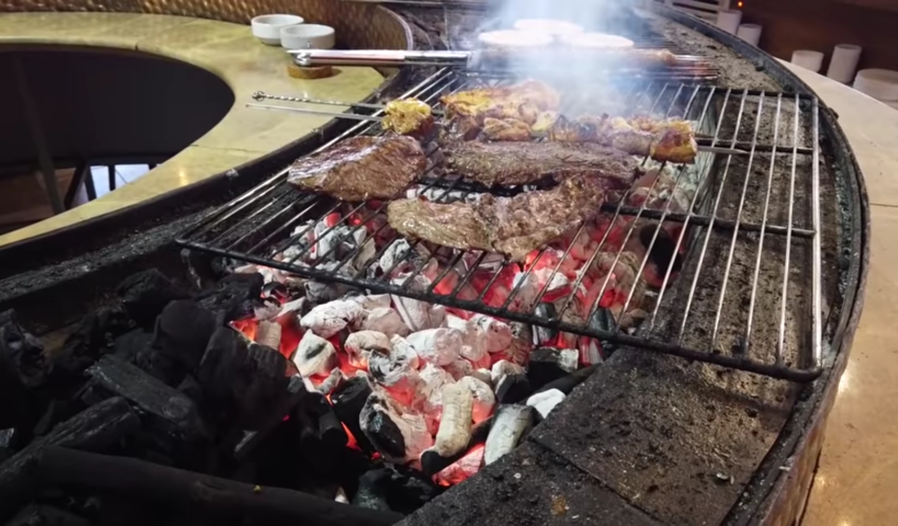 Restaurant steackhouse la spécialité sont les grillades avec un barbecue géant ou ils vous grille la viande vous avez également accès au buffet pour des gratins des légumes pour accompagner tout sa Bonne appétit au carnivore