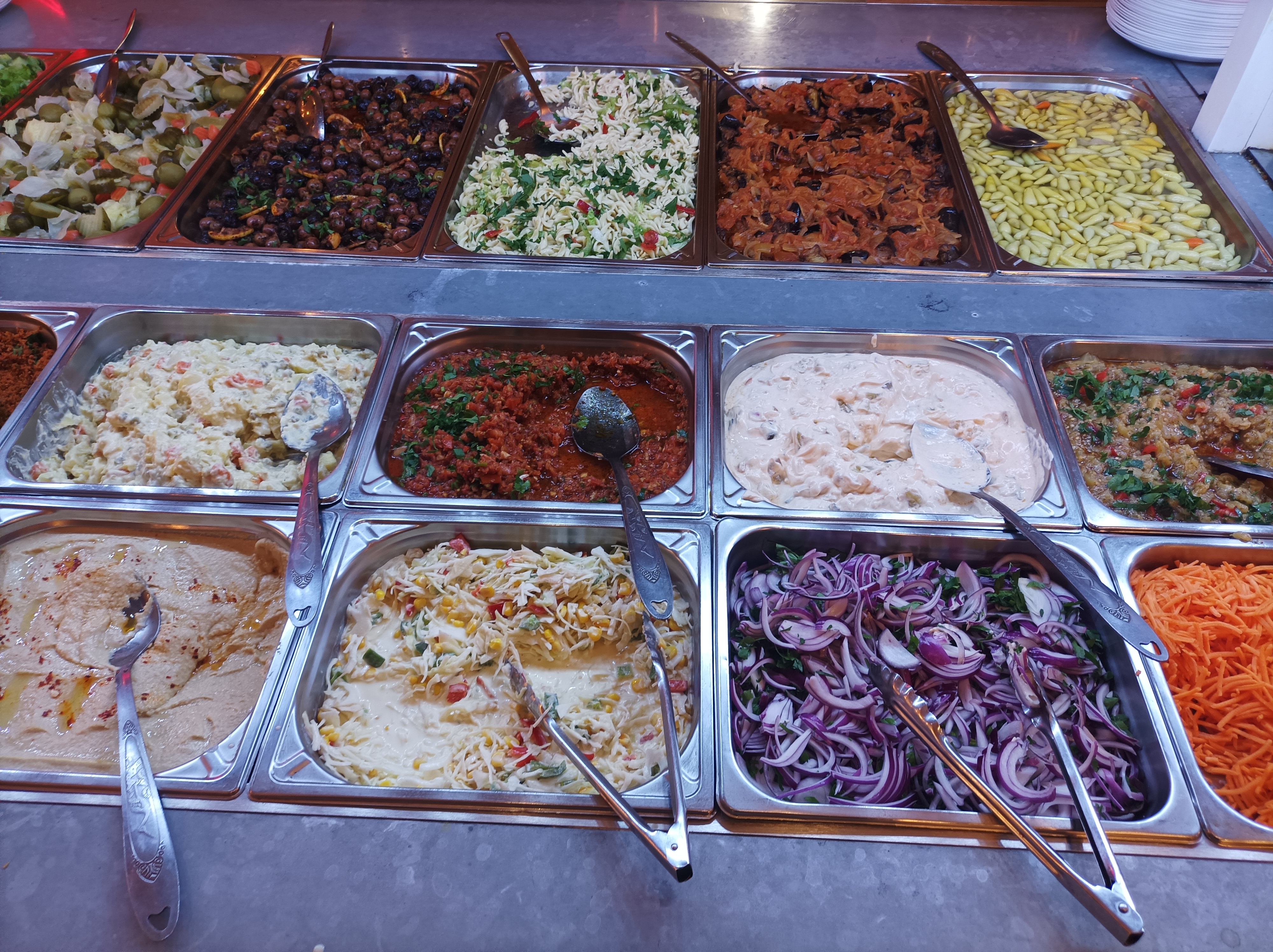 JE NE RECOMMANDE PAS DU TOUT ce restaurant. Pour une belle et agréable expérience, passez votre chemin, ça ne sera pas ici. J’ai demandé une viande bien cuite, elle est arrivée saignante. Le buffet laisse à désirer, il y’a certes, beaucoup de plats mais peu qualitatif, ça fait cantine bas de gamme, et c’est pour la plupart, froid ! Pas de sauce blanche… la base pour un restau turque. Un bruit monstre, impossible de s’entendre. La viande est très moyenne niveau qualité et goût. Et les frites ne sont pas bonnes, elles sont ramollies et pas croustillantes. Ça ressemble à une cantine bas de gamme. On mange beaucoup mieux, moins cher et dans une bien meilleure ambiance ailleurs. Les points positifs: La soupe de lentilles est très bonne et les serveuses sont très agréables