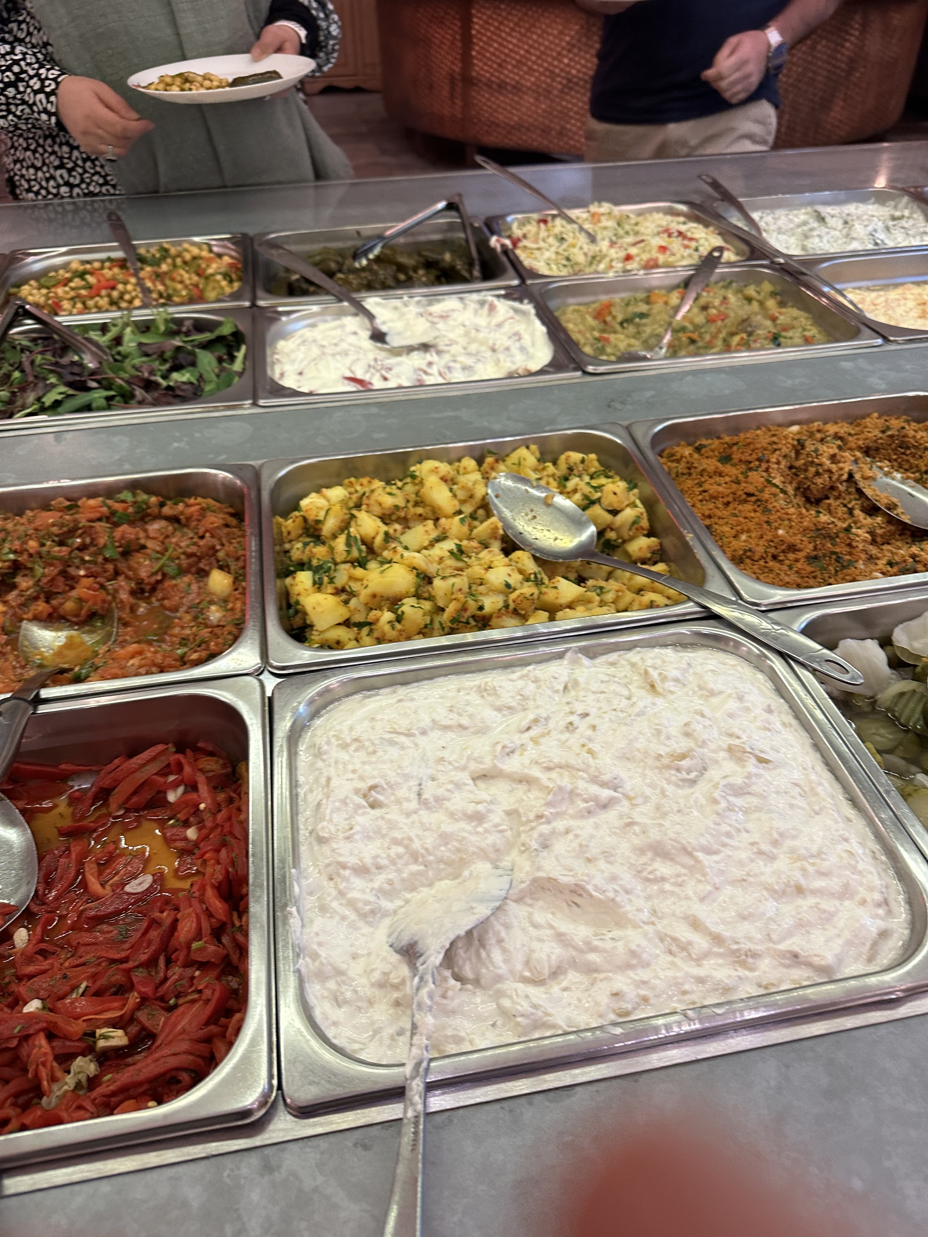 Nous avons prit un brunch pour 2 la cuisine était bonne, les plats bien présenté, nous avons eu un très bonne accueil, nous avons rajouté au brunch un dessert le kunefe je vous le conseille un très bon dessert, seul petit bémol il n'avait pa assez de charcuterie pour 2 personnes pour un brunch, mais sinon tout le reste était parfait, nous en avons eu pour a peu près 30euros par personne très raisonnable comme prix.
