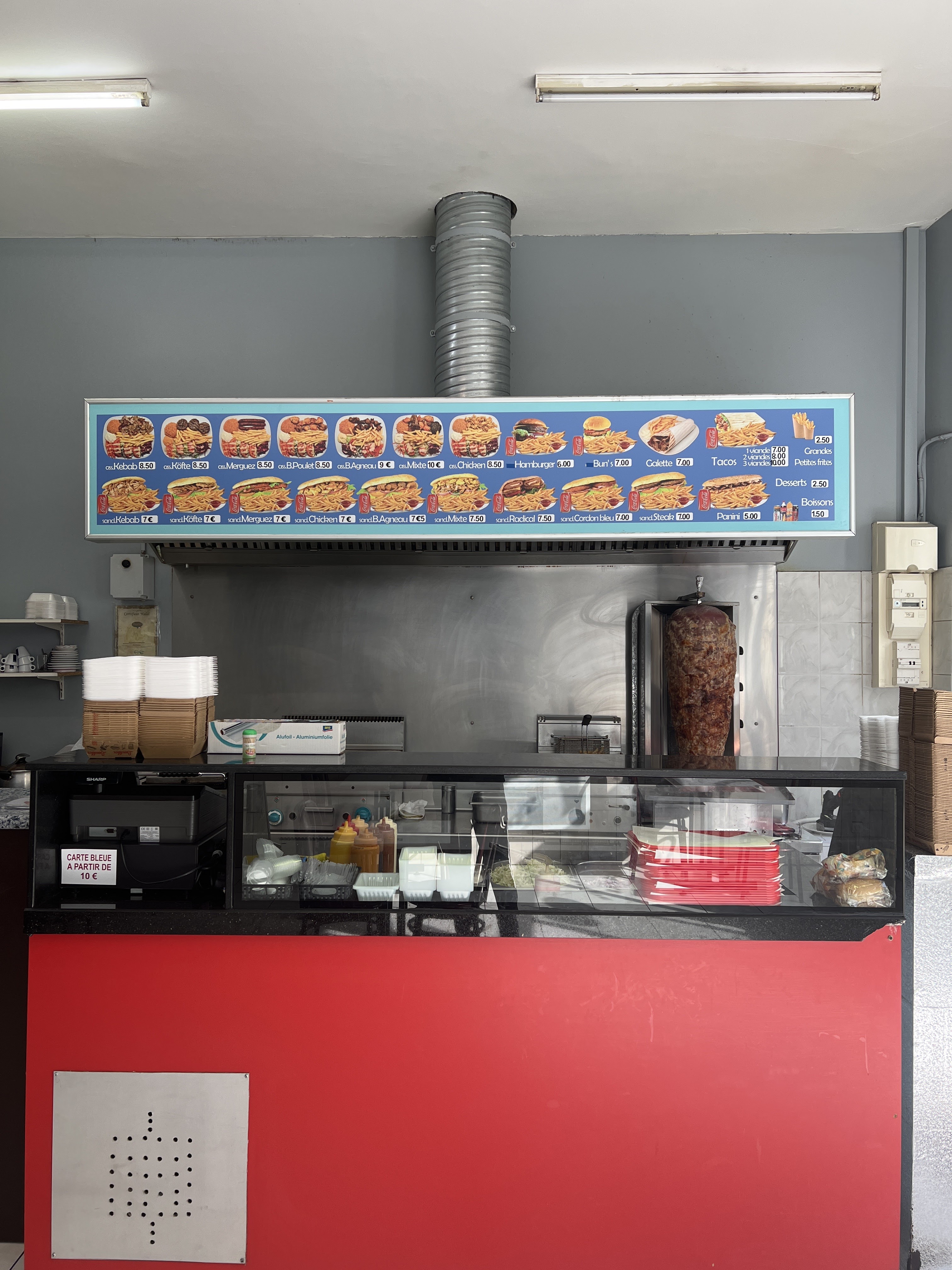 Une équipe souriante et sympathique, toujours le sourire aux lèvres, bon accueil et bon ambiance. Les employés travaillent sans relâche et ne s'octroient que peu de pause. La nourriture est bonne, le pain est frais, la viande est goutue. Les prix sont très corrects et les quantités suffisantes pour se remplir l'estomac à moindre coût. Je recommande vivement.