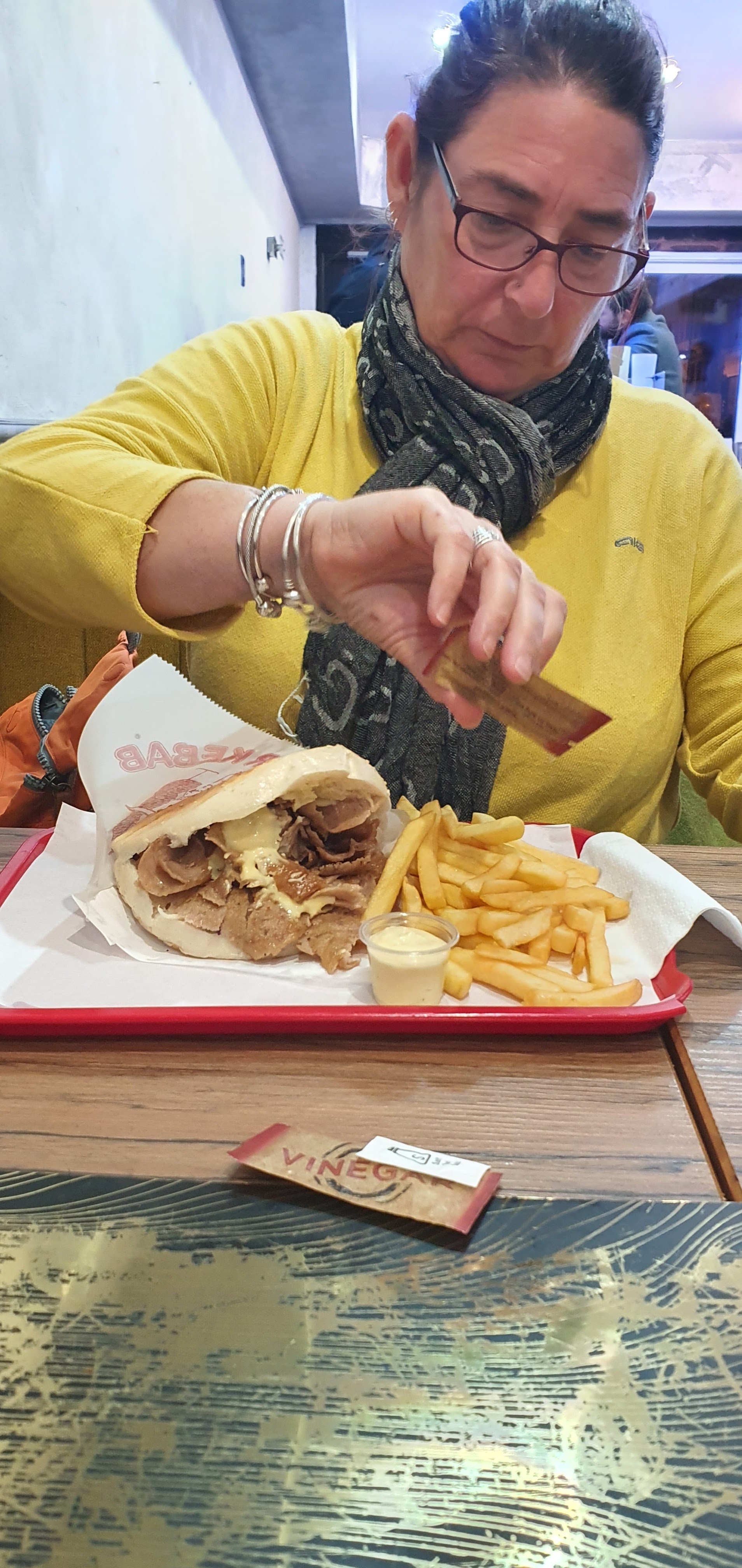 Meilleur kebab à Saint-Omer. J'avais une assiette composée et Hilda avait un sandwich de donneur. Mmmm. Beau.