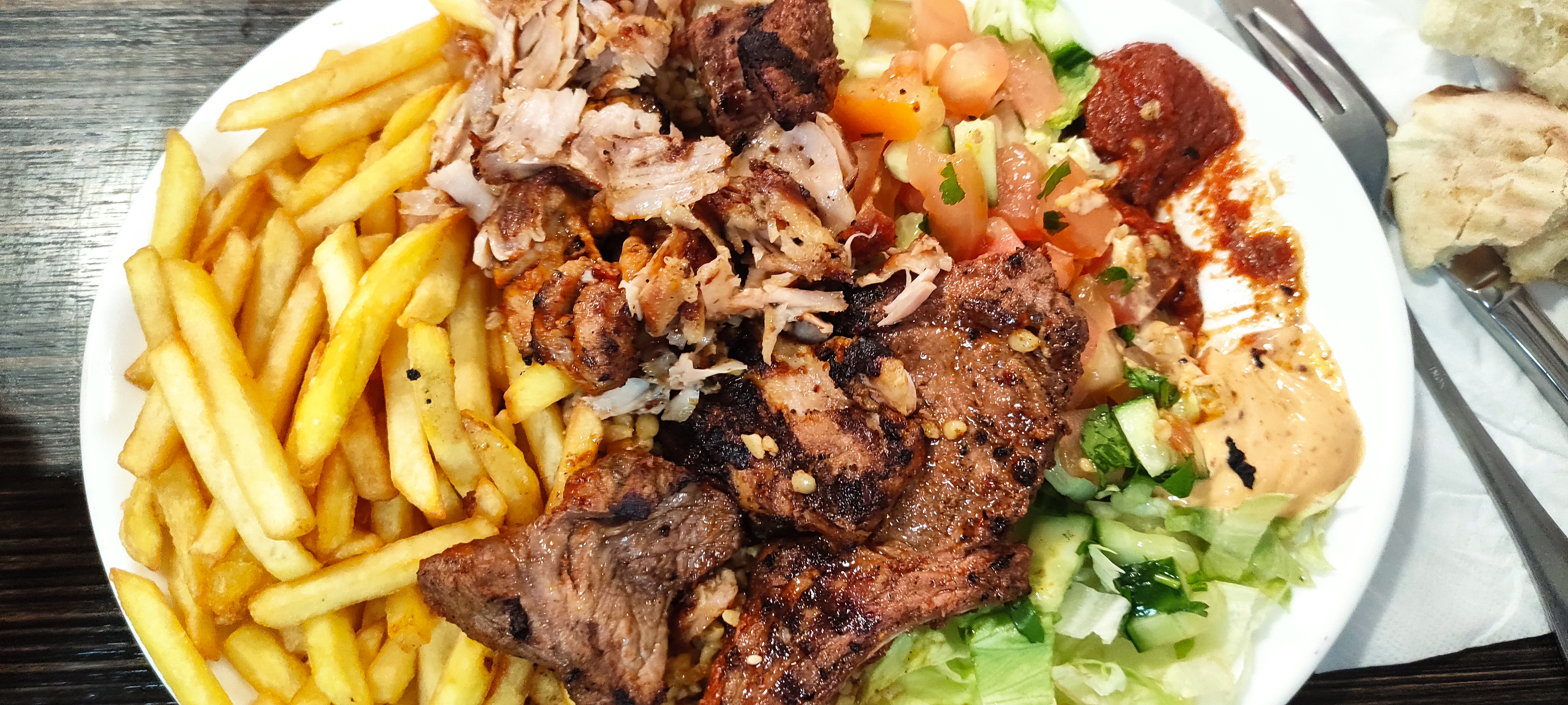 Malgré l'heure tardive l'accueil est très agréable. Les assiettes kebabs sont généreuses et très savoureuses. Je reviendrais. Merci à vous d'être ouvert en cette période.