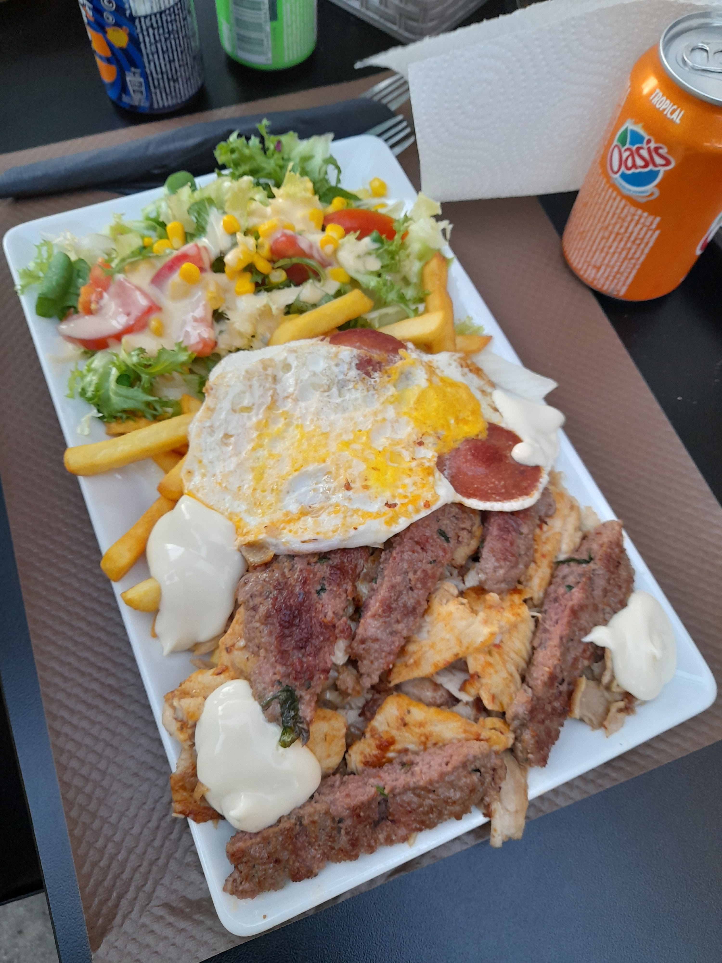 Assiette kebab très délicieux, serveur accueillant et sympathique. En revanche la canette de redbull a 3,50… c’est un peu cher je trouve après ce n’est que mon avis.