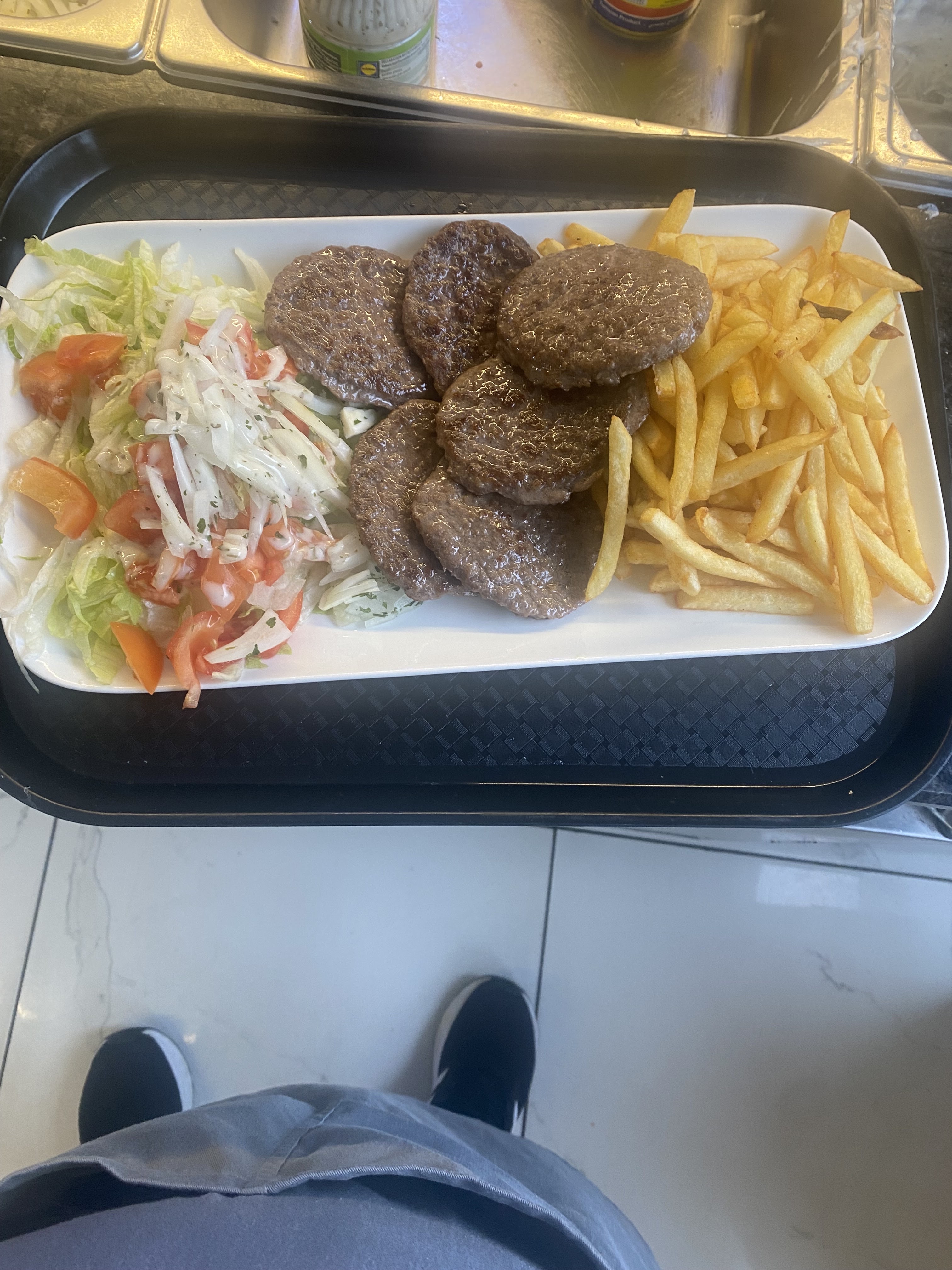 Burger sans tomate ni salade ,pain,steck, point a la ligne.. même le chien 🐶 n'en a pas voulu 😔
