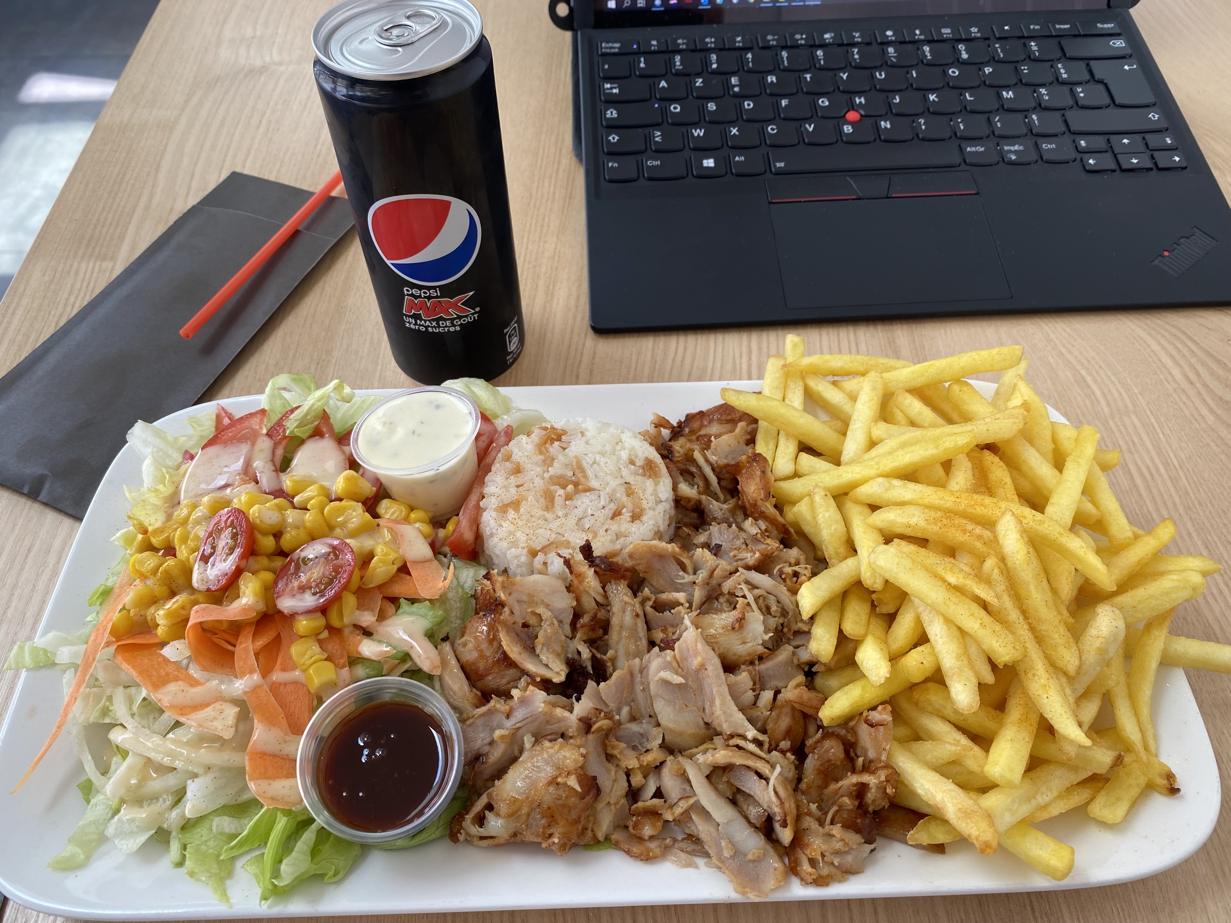 Quel accueil !! Si nous étions accueillis aussi chaleureusement à chaque fois que nous mangeons au resto... Ma compagne et moi avons mangé un kebab assiette qui était excellent.