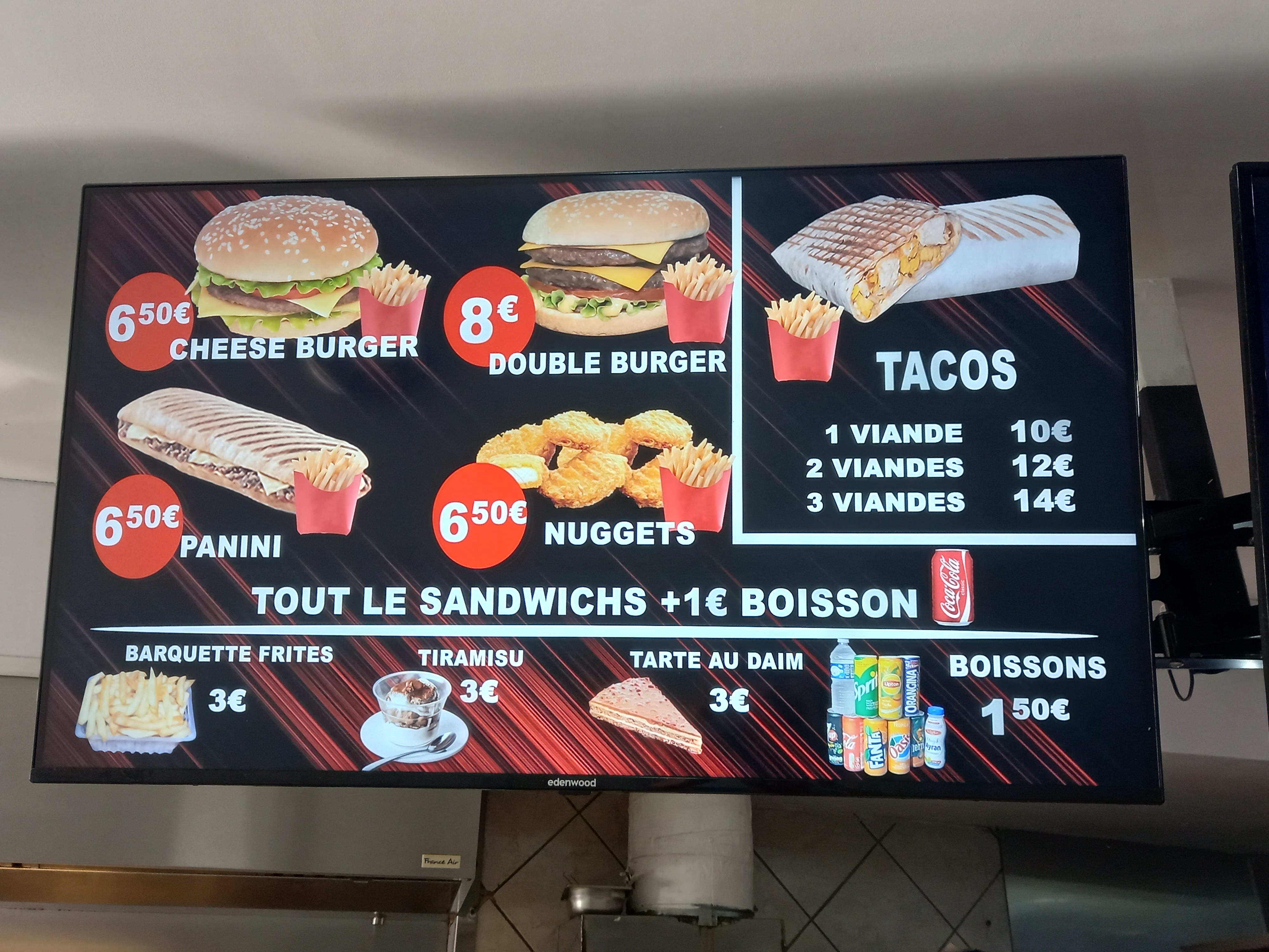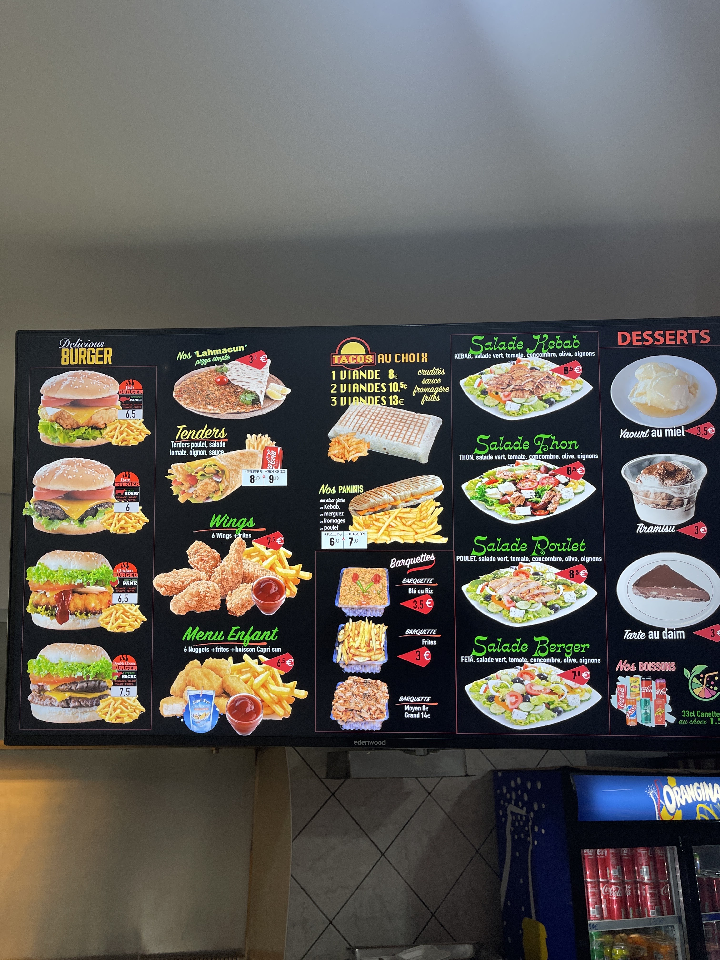 Berk j'ai acheté ya 3j plus jamais le mec qui cuisiné serrer la main à tt le.monde et part me faire mon tacos j'ai demandé sauce fromagère ila rien mit tt sec j'ai lai jeté au moment au J'attendais yavais 2autres cuisinier qui rentrez de doheur directement il se mettent en cuisine sn ce lavé ls ✋ je demande un remboursement