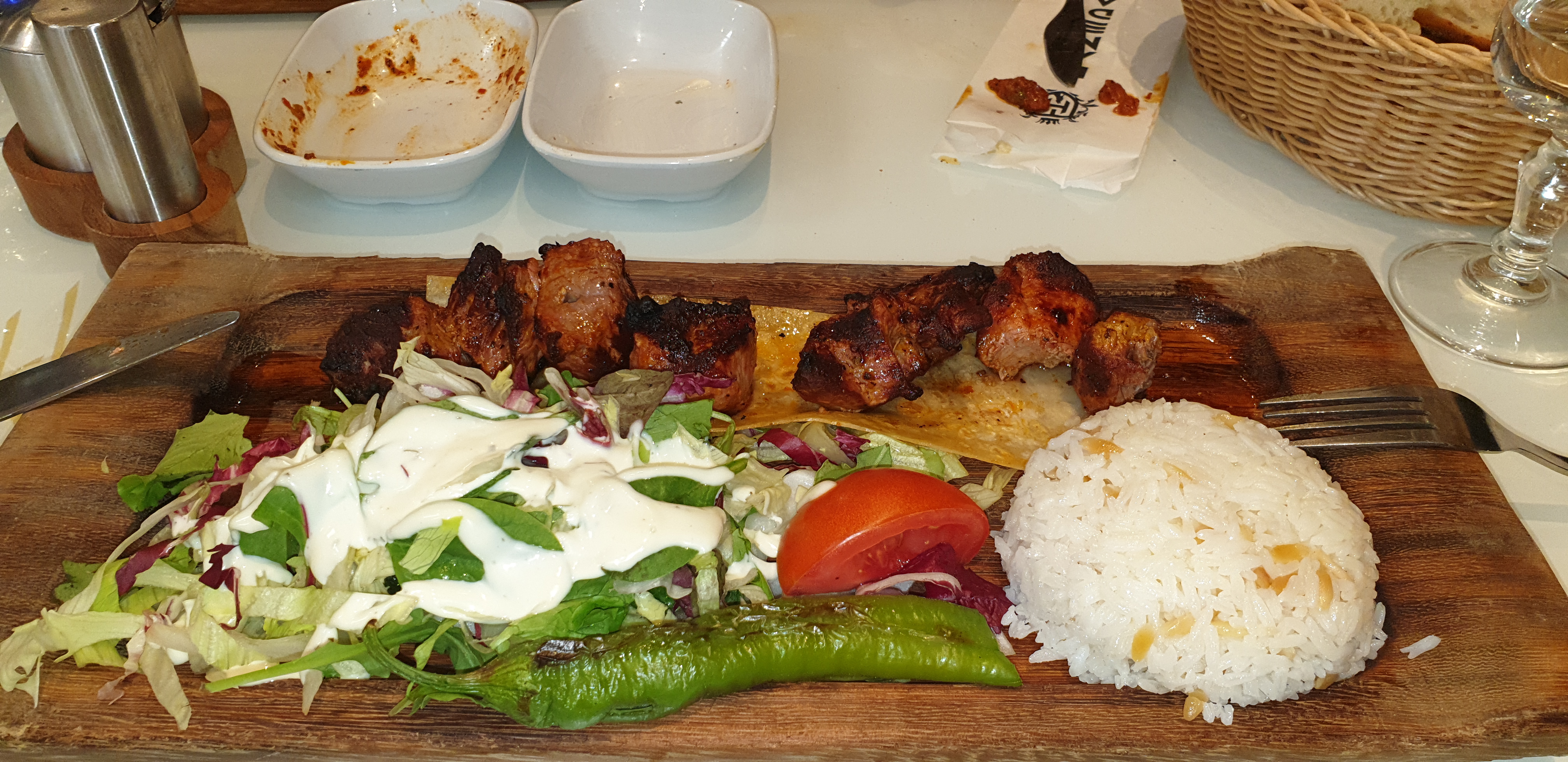 J’ai voulu tester ce restaurant ce soir, franchement très déçu plat arriver froid (viande + riz) tavuk beyti et quand j’ai demandé au serveur de me le réchauffer, il me dit que c’est normal cela se mange tiède.. j’ai déjà mangé ce même plat plusieurs fois dans d’autres restaurants et je l’ai mangé chaud !! En plus de sa très fade aucun goût et viande caoutchouteuse.. dommage je ne reviendrais pas 😔