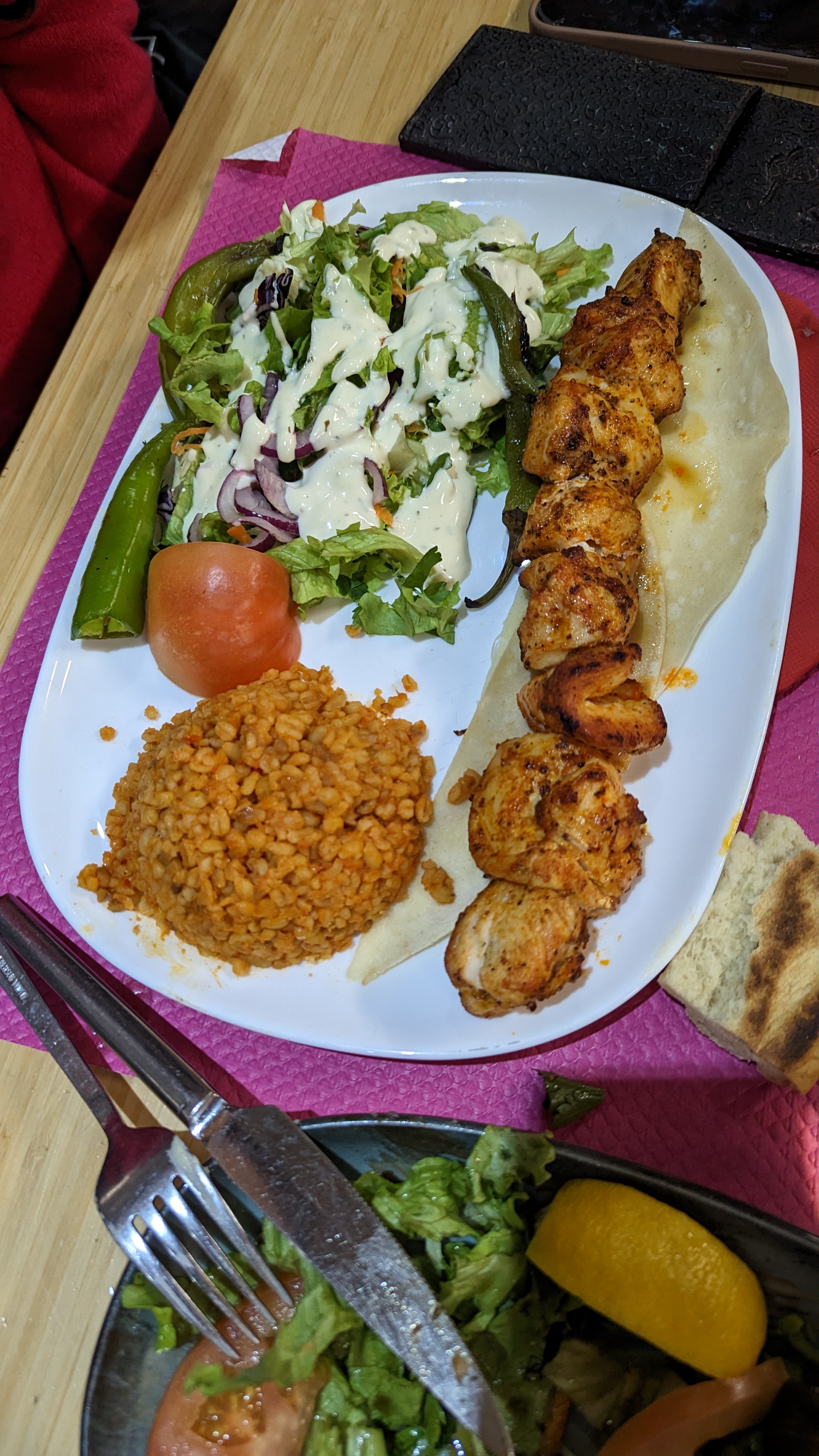 C était délicieux, cuisiner avec des produits frais. C est une très bonne adresse, le service est de qualité et il y a une pâtisserie turc accolée c est une tuerie 🔥🔥🔥
