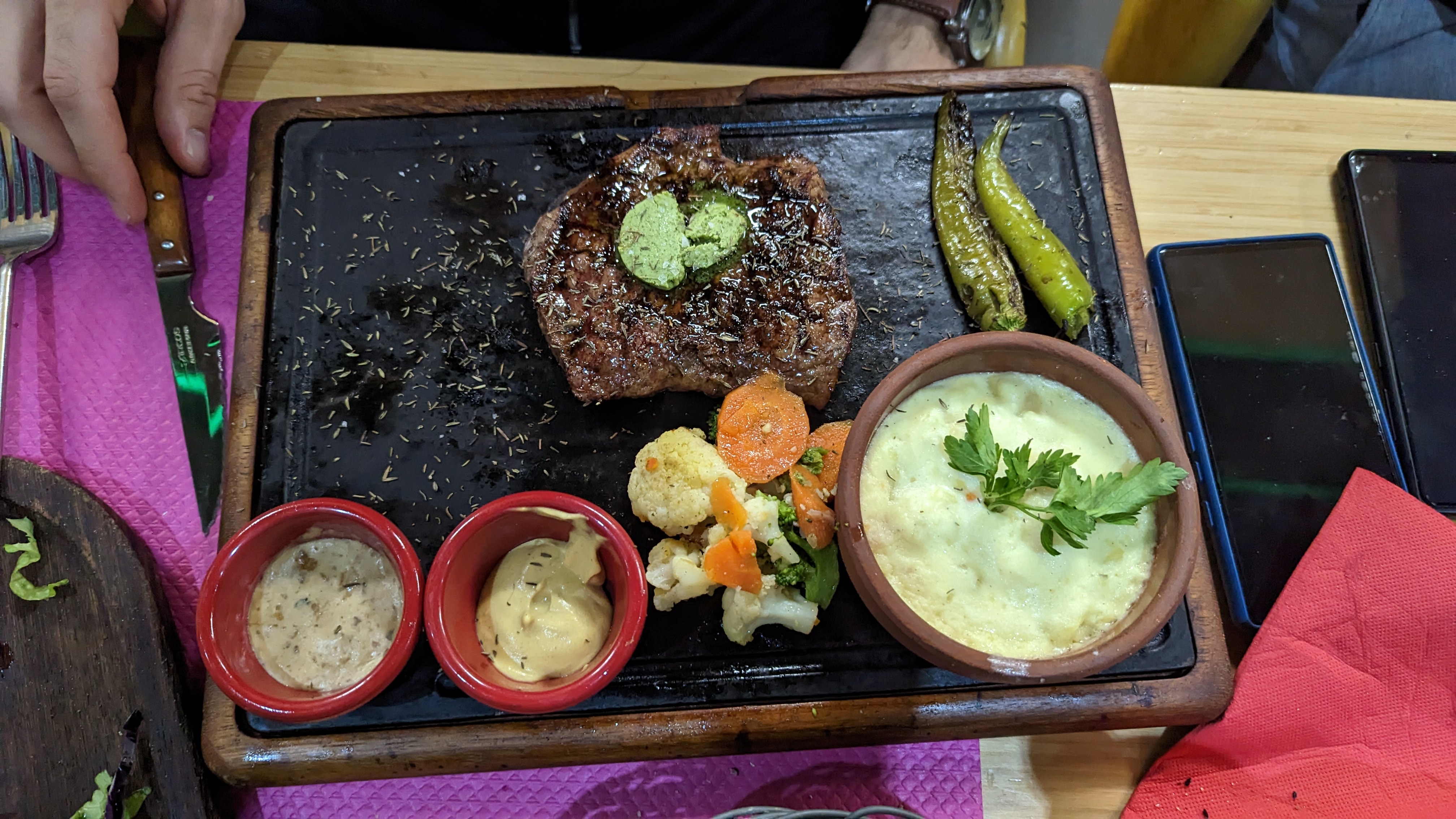 L'accueil, la salle et le personnel sont chaleureux. Le service dans des plats type planche en bois change des habitudes. Le repas est excellent. Et je pèse mes mots. La viande est succulente, les accompagnements sont savoureux ; à toutes les personnes assujetties aux plats halal, vous pouvez y aller les yeux fermés, chaque plat est excellent et fait maison.