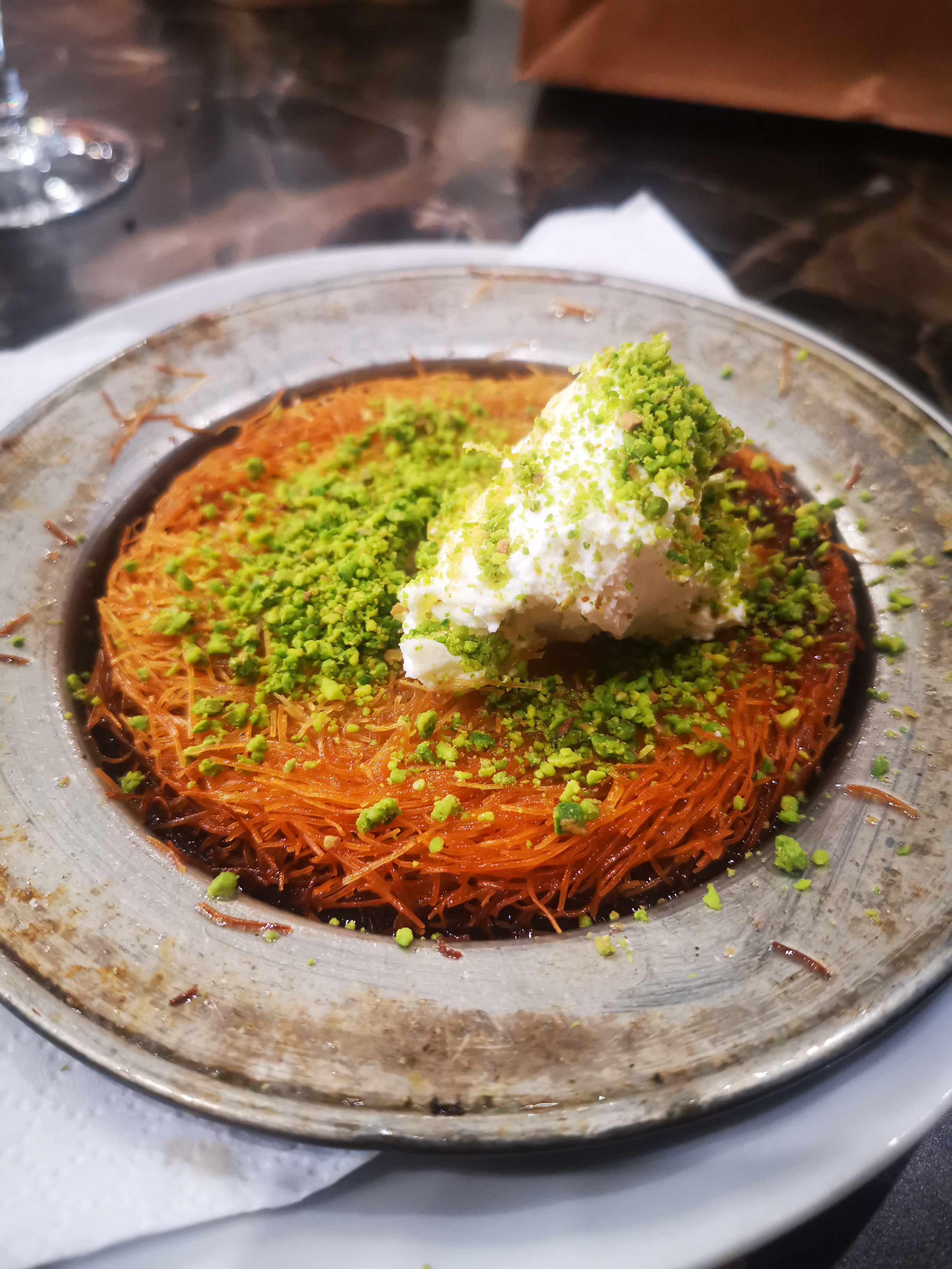 Excellent t'accueil. Une jeune fille très adorable et souriante nous a accueilli et servie. Les plats que nous as conseillés cette personne étaient très bon et le Kunefa excellente. On c est régalé. Je reviendrais avec plaisir
