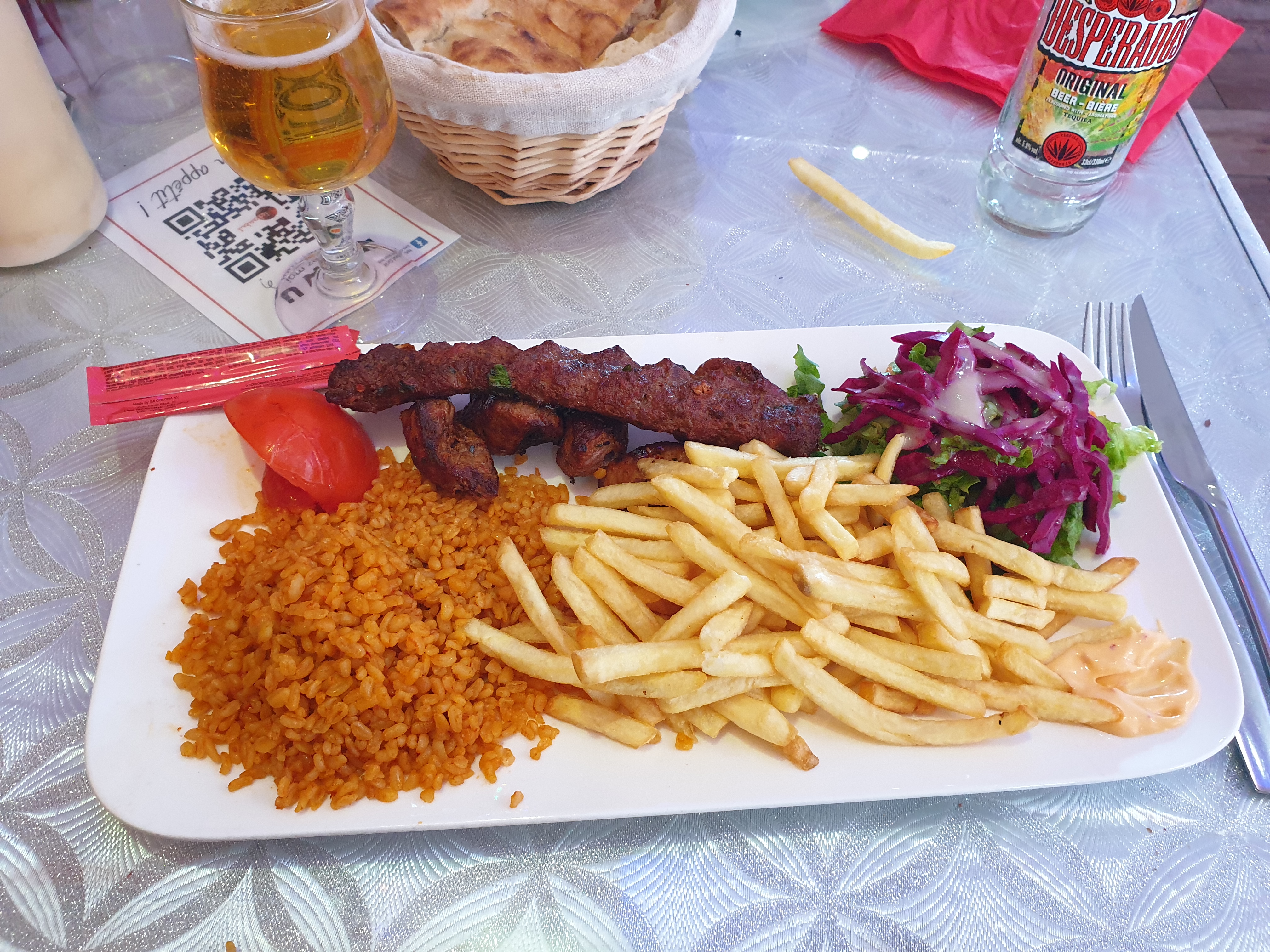 Par quoi commencer... La décoration est à revoir au goût du jour. Les assiettes sont cassées. Pas de choix au niveau des sauces. Les plats sont super cher. La viande de kebab était pleine de gras et mal cuite. La brochette de poulet était très salée. Le pain était sec. Les serveurs devraient être plus avenants et souriants c'est dommage. Le seul point positif, rapide et assiette bien garnis. Je ne conseille pas.