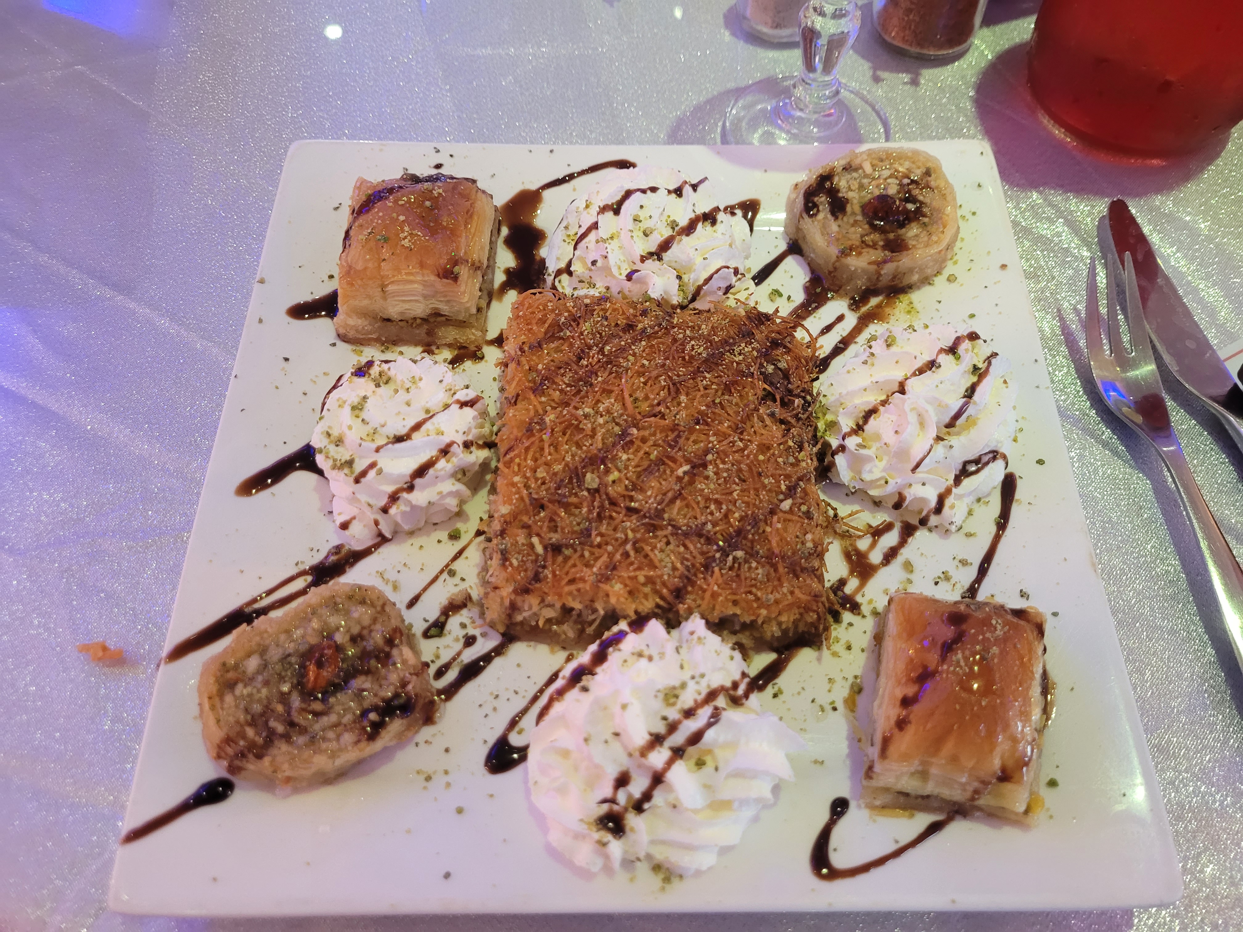 Konafe sans goût et cramer . J’ai pris l’espèce de tajine au agneau plus d’huile que le reste. 4 petits morceaux de viandes. Trop cher par rapport à la qualité de la bouffe. Je ne reviendrai plus