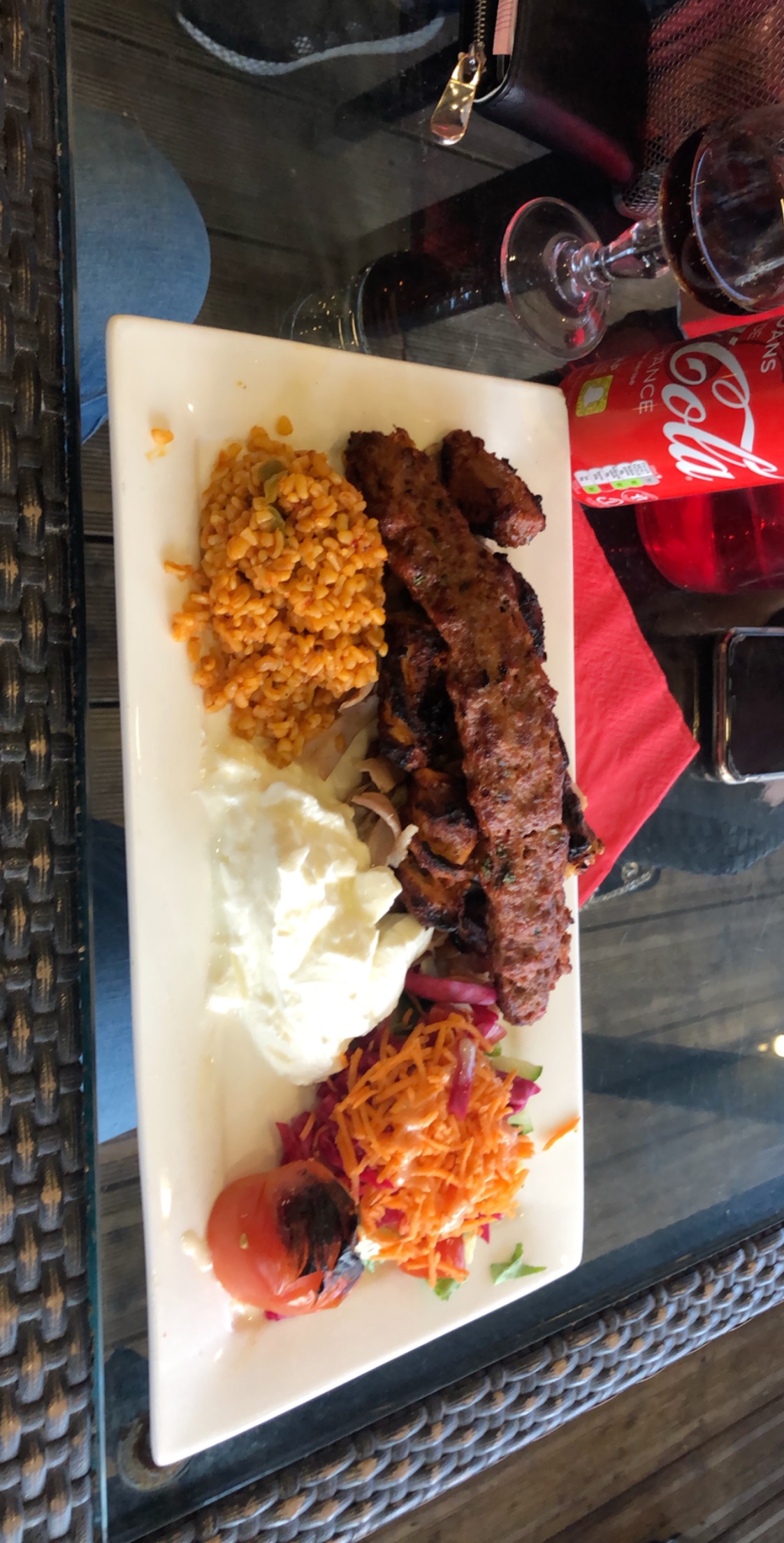 Horrible, que du GRAS dans la viande de kebab!!! Après l’avoir signalé à un membre du personnel, celui-ci nous indique qu’ils l’ont achetés tel quel…4€ la San Pellegrino, c’est du vol!