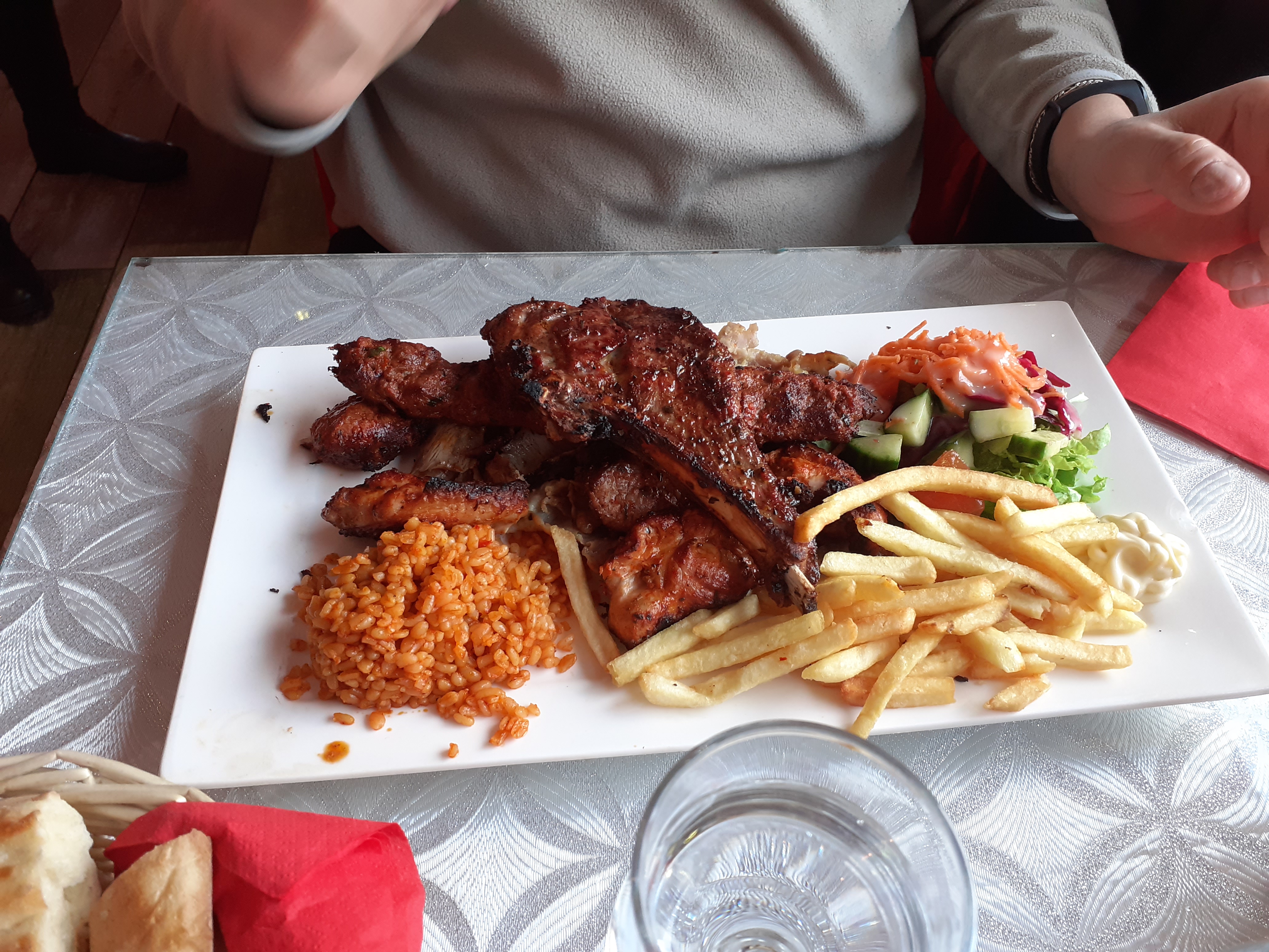J’y etais avec min mari hier. C’est bon. Vu la note sur google je m’attendais à pire, mais c’est bin et propre. Par contre ne prenez surtout pas les Sarma (feuilles de vigne farcies au riz) c’est juste pas mangeable on dirait faites a l’eau aucun gout de l’huile d’olive meme la farce est sans gout et ne meritent certainement pas 7euros pour 5pieces sans gout.