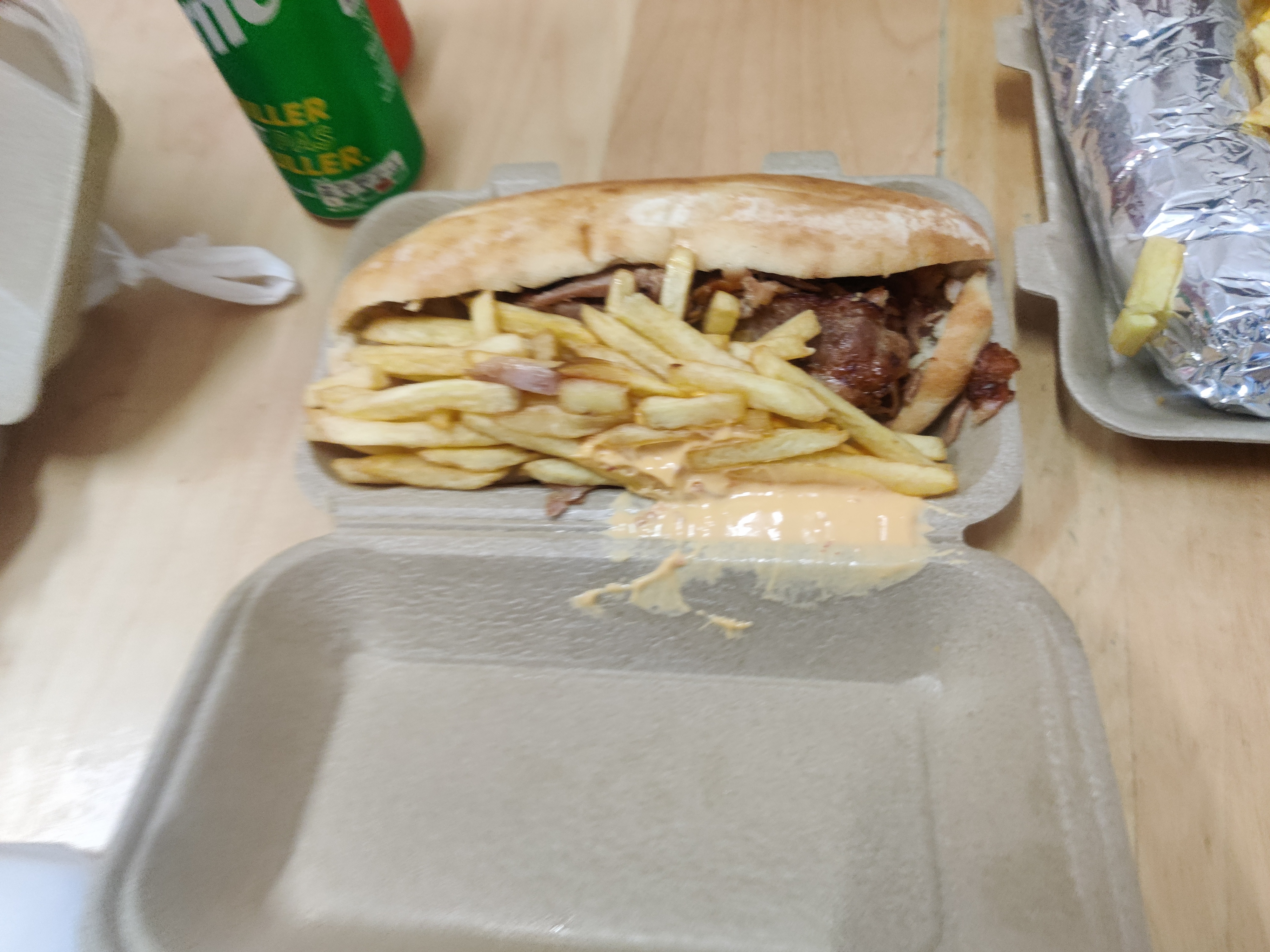 La broche de viande n'est faite maison et c'est un point rédhibitoire pour moi, le sandwich est sec ( sans sauce). Le mec qui fait les sandwichs est speed au détriment de la qualité. Un menu à 7,50 qui en vaut 4 et je suis gentil.