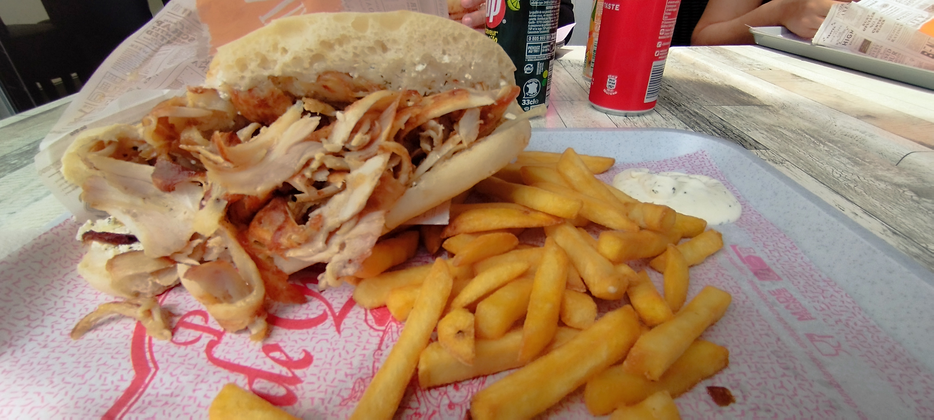 Ça faisait longtemps que je n’avais pas mangé un VRAI BON KEBAB ! Un kebab STO sauce blanche un vrai délice. D’ailleurs la sauce blanche est faite maison et elle est vraiment bonne. Vraiment un bon point d’avoir de bons ingrédients bien préparés !! Et puis c’est servi rapidement avec beaucoup de frites, un kebab familial sans aucune prise de tête. (Au passage j’ai explosé le tiramisu maison au spéculos… une tuerie)