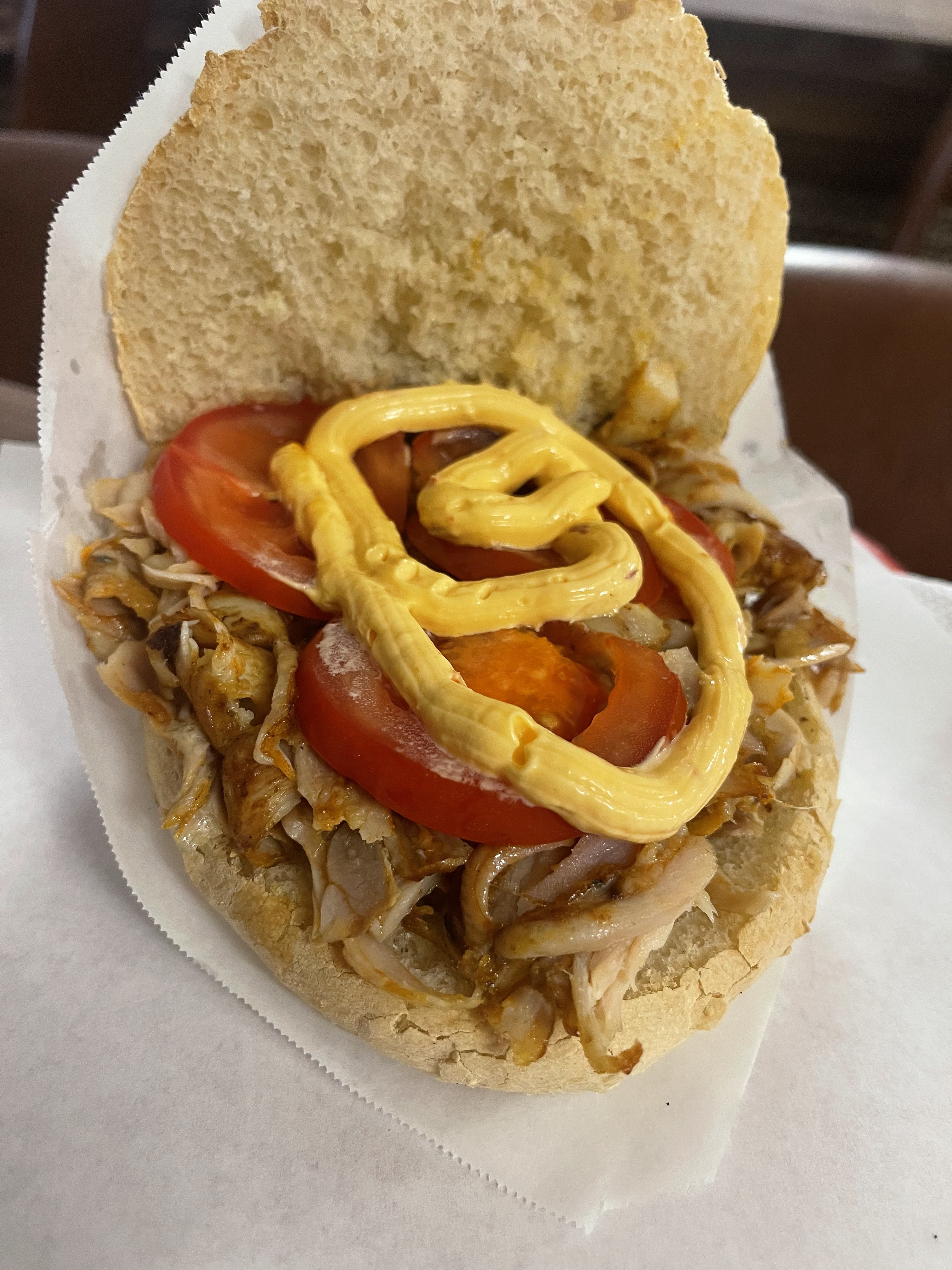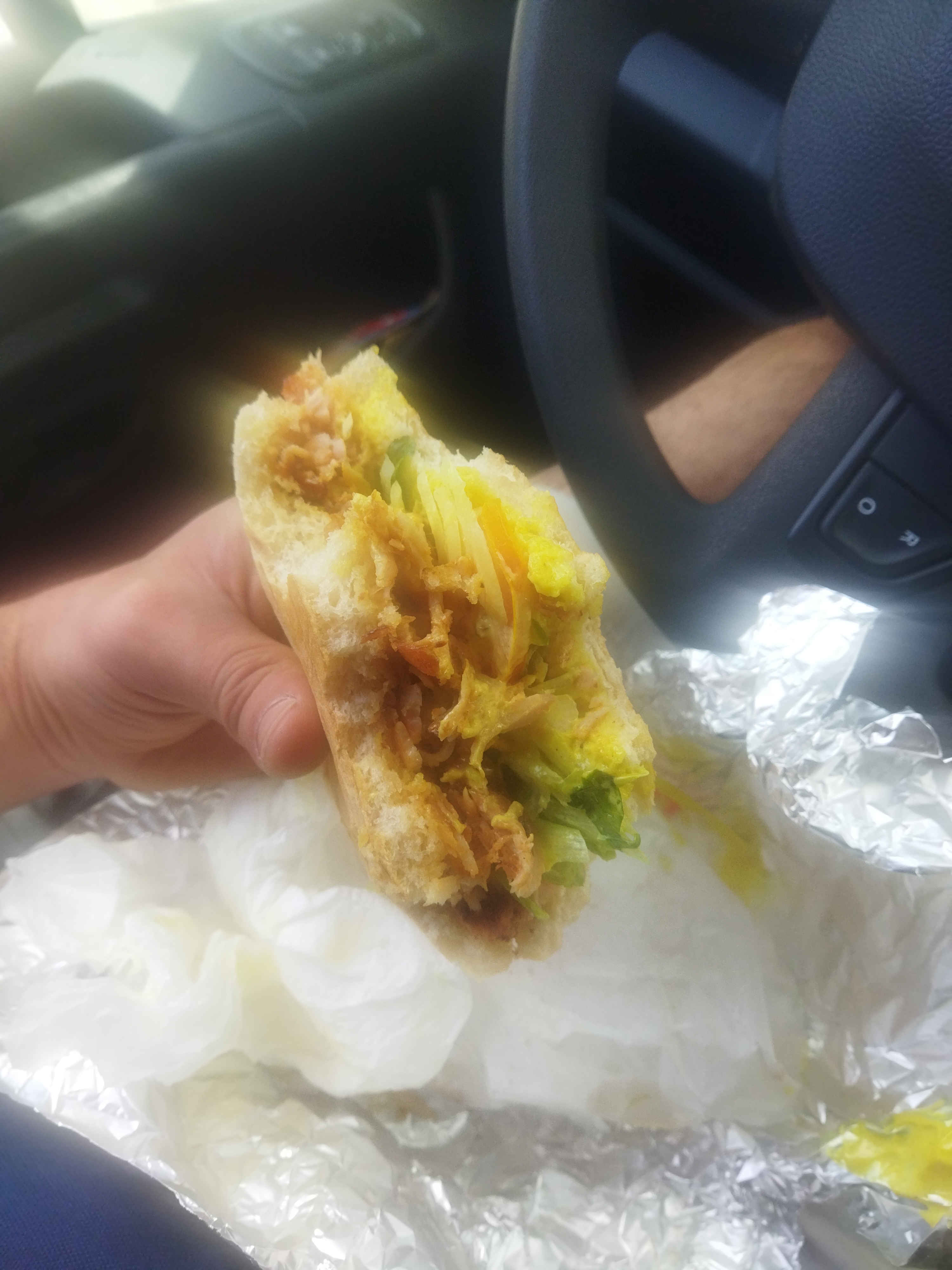 Manque de quantité de viande dans le sandwich et mélange le veau avec le poulet alors qu' on a demandé du veau. Dommage car quand on est bien servi c'est très bon. Vérifier qu'ils servent la viande qui est prise directement de la broche et non d'une boîte métallique.