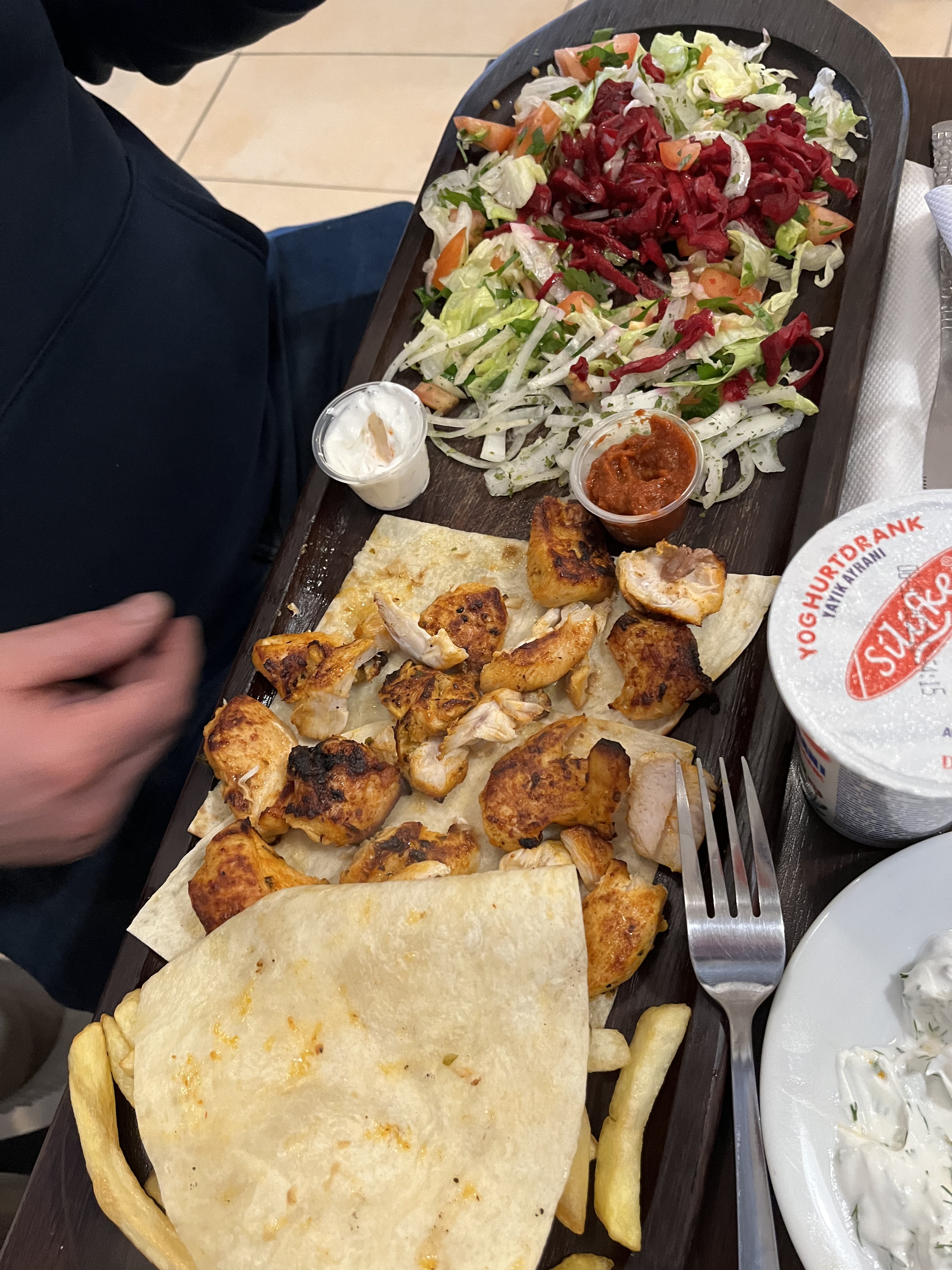Une partie de Turquie comme si se détacher est venu là la cuisine et les deux bambous vous le voyez tout ce qu'ils le font le service est devant vous les fonds rapidement il y a vraiment vol ambiance vous mangez de bonnes grillades brochette de poulet brochette de agneau brochette de Adana kebab et donner kebab haute qualité prix c'est génial je vous conseille de aller manger là-bas bonne journée à vous