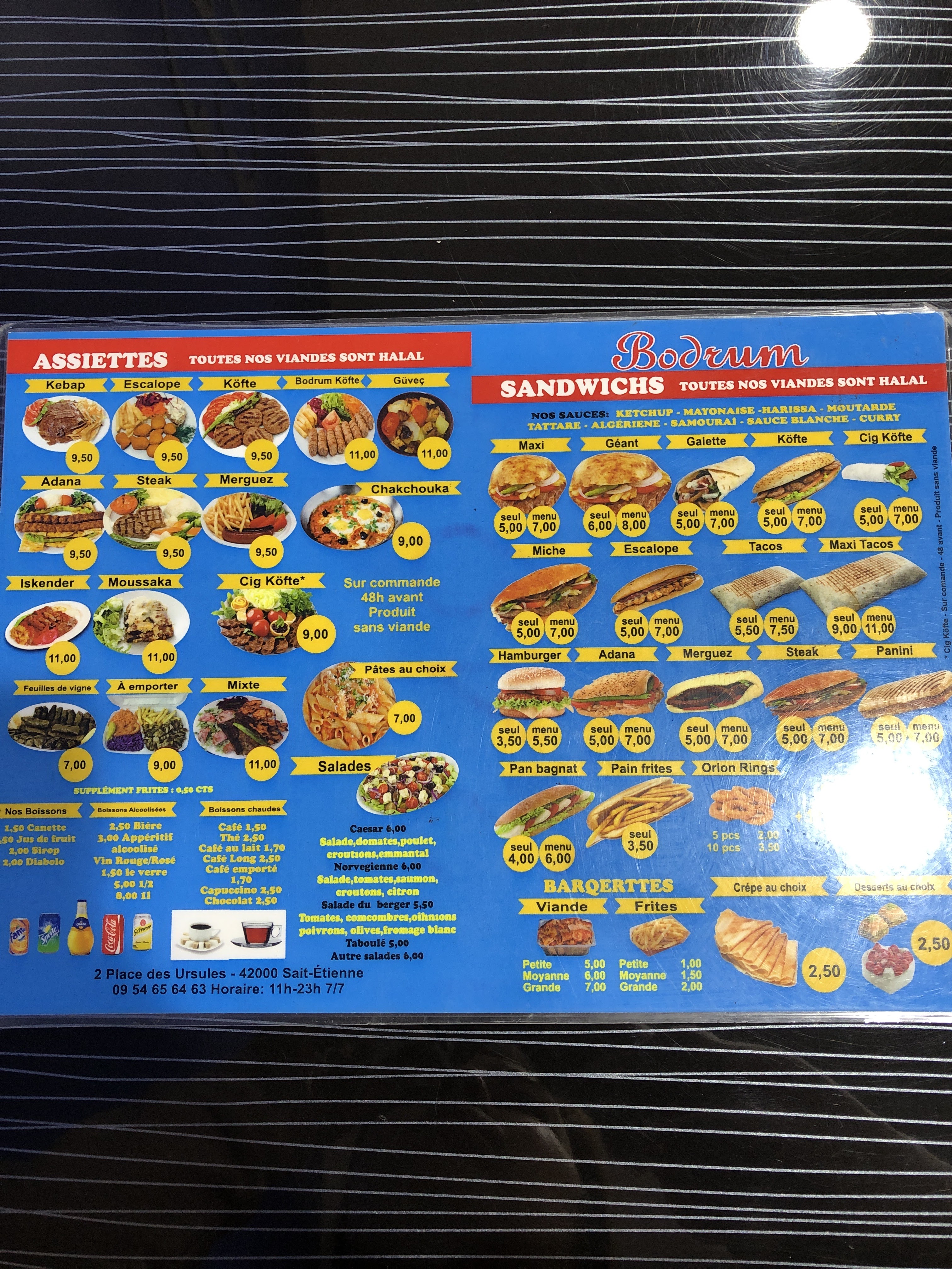 Très bon établissement, j'ai pris une bonne assiette KEBAB (DÉLICIEUX), MAIS LE SEUL HIC LA SALLE 'ÉTAIT PAS CHAUFFÉE, J'AI DU GARDER MA DOUDOUNE ET MON BONNET, MAIS POUR LE PRIX TRÈS ABORDABLE, ÉTABLISSEMENT TRÈS CONFORTABLE ET TRÈS PROPRE, MERCI À BODRUM.