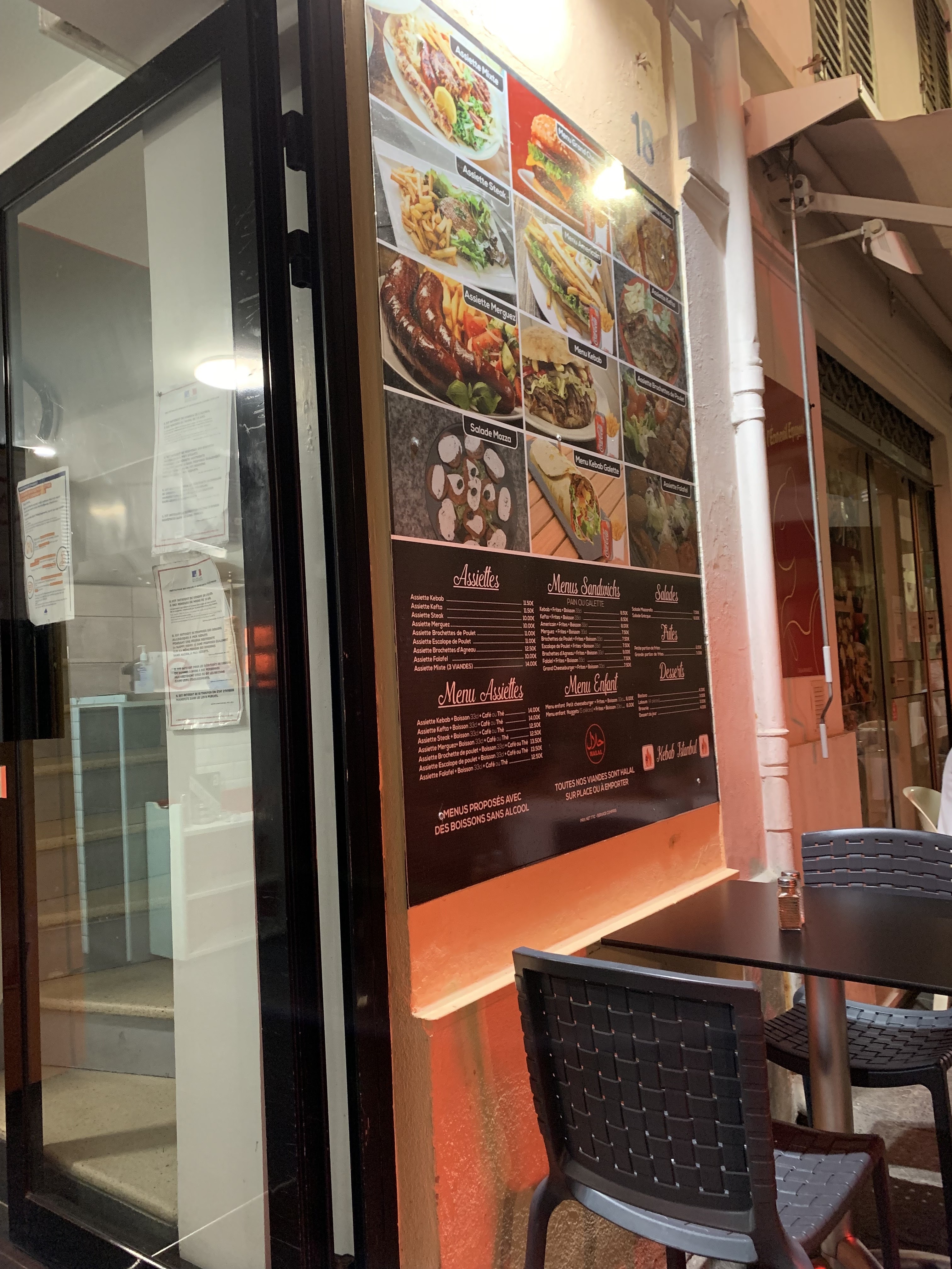 Enfin un snack kebab à la hauteur d'Antibes ! Très bien fréquenté ! Très beau contexte dans une rue sympa Par contre ne prennent pas la carte !!!!