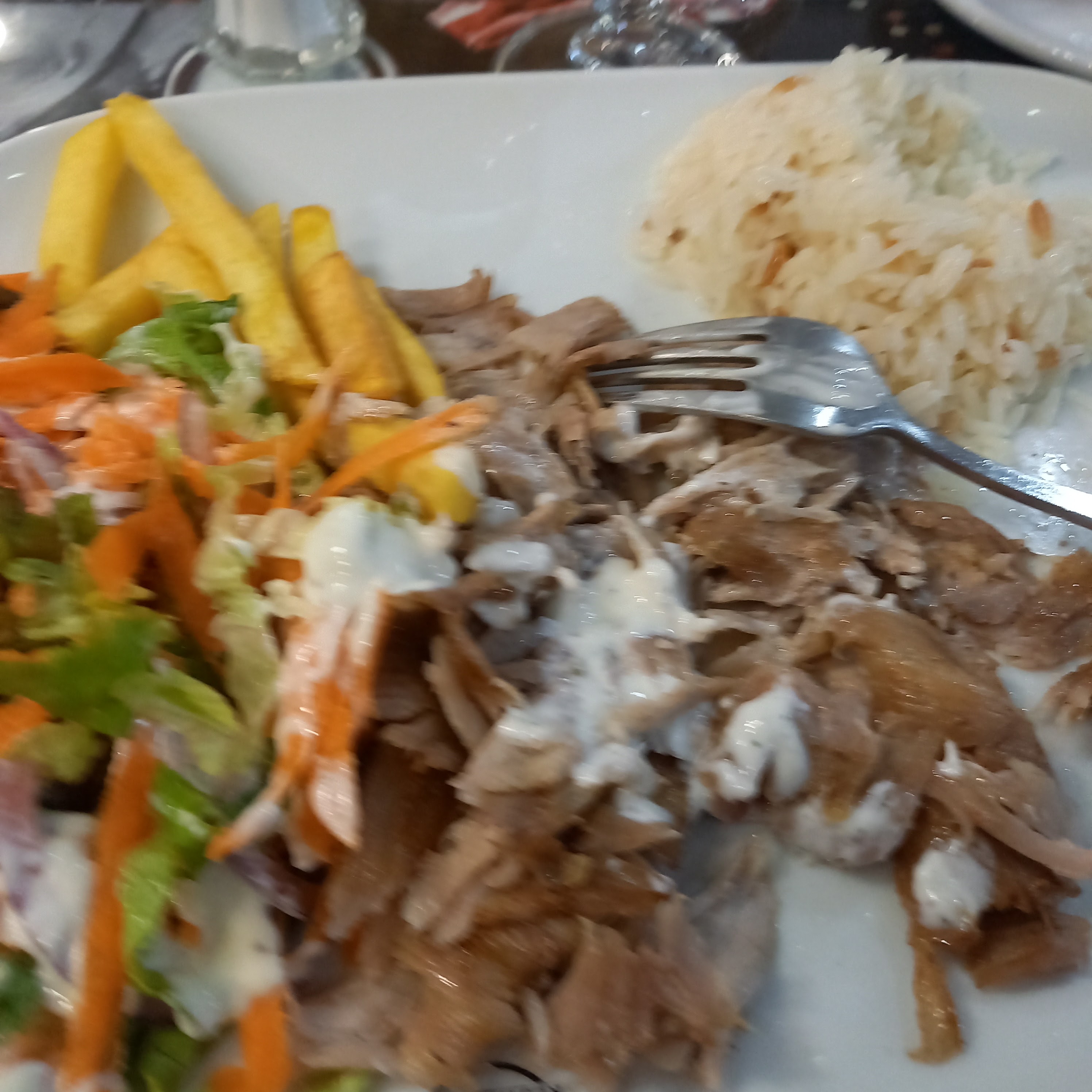C était vraiment trop bon la galette pour le kebab est faite maison, la viande est fraîche et très bonne franchement une tuerie. Les assiettes copieuses et le rapport qualité prix est validé