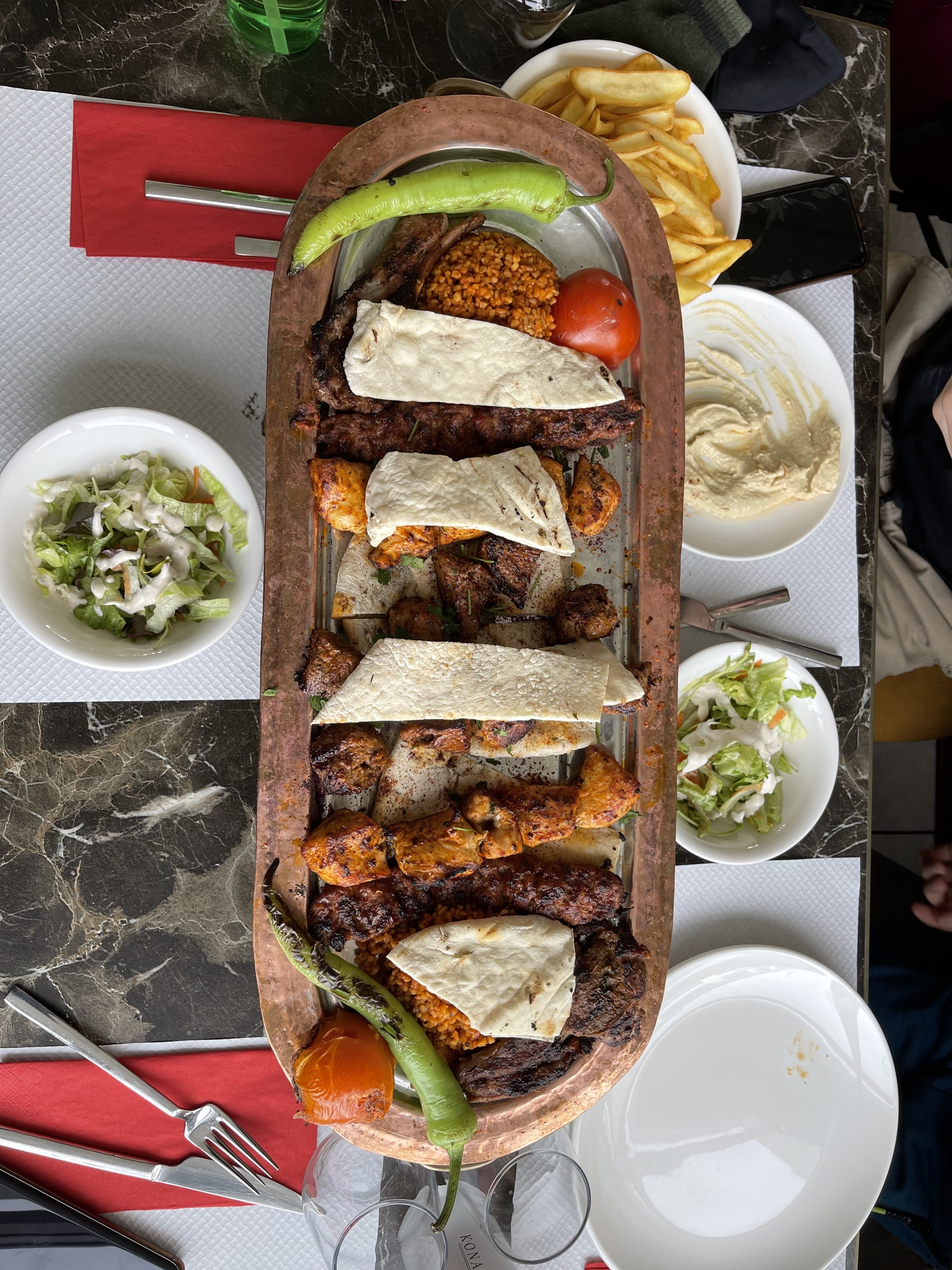 Comment dire, vraiment merci de nous avoir trouvé une place malgré le fait que nous n’avions pas de réservation et que c’était bondée de monde. Un accueil au top, des serveurs au top, au petit soin et d’une gentillesse malgré le speed. Une nourriture complète et de qualité ça me rappelle mon voyage en Turquie. Salam de la Normandie