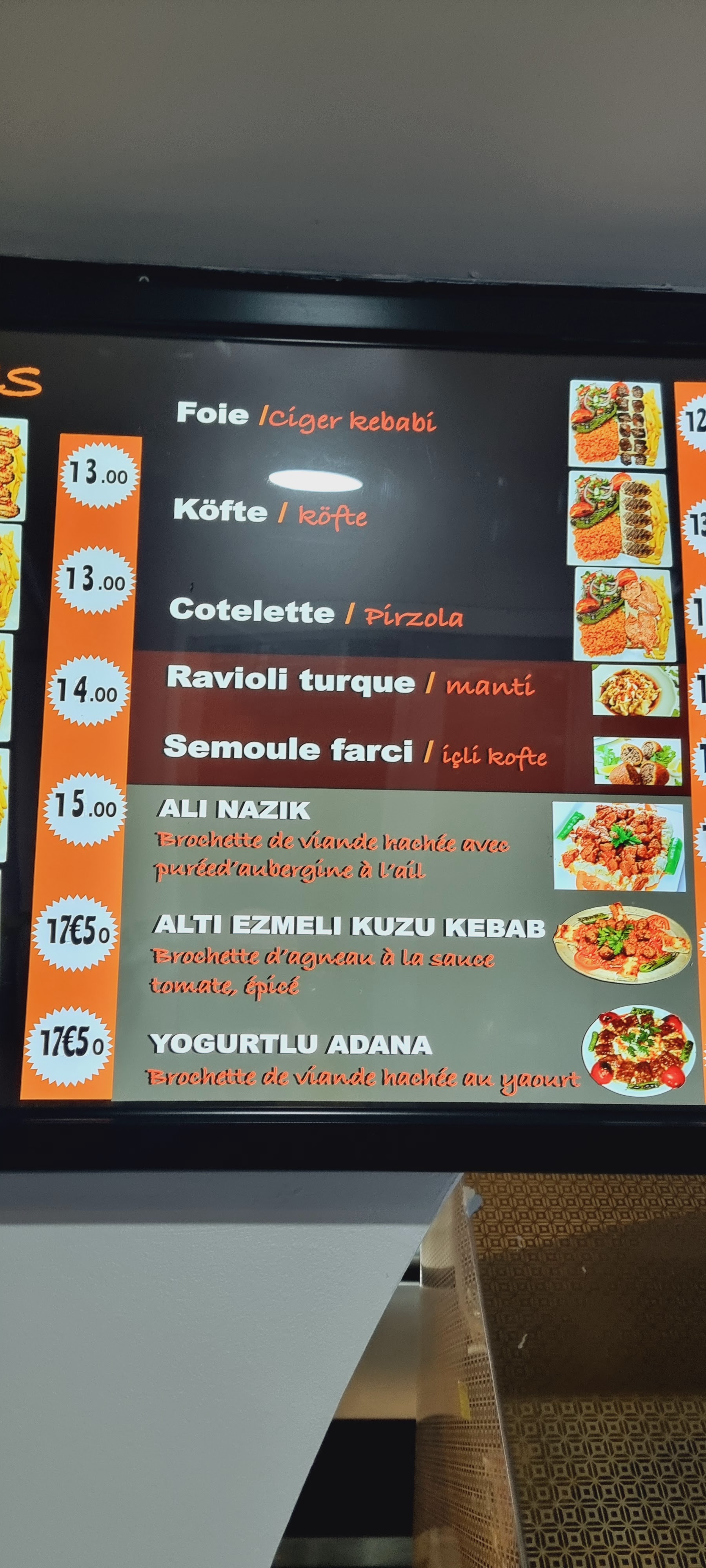Rien à dire, un restaurant turc à la hauteur de mes attentes Pas de chichi, pas de spectacle, pas de prix excessif Tu viens, tu manges pour maximum 15€ (l'assiette mixte) et tu rentres le ventre plein avec une qualité de viande présente Belle surprise, on se sentait en Turquie