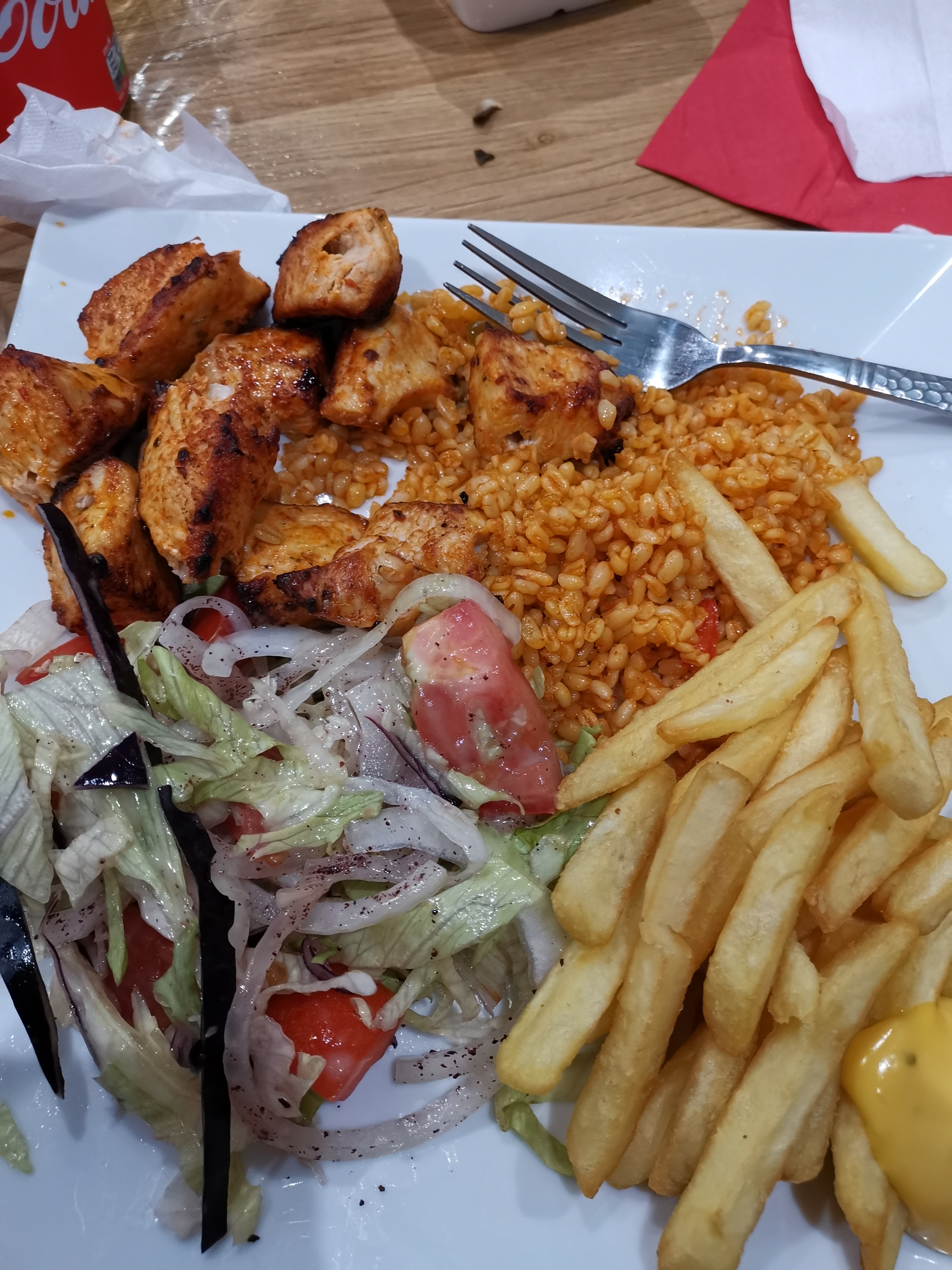 On y a bien mangé. Accueil sympathique et chaleureu. Restaurant très propre 👍 Seul bémol, la viande kefta et le blé un peu sec.