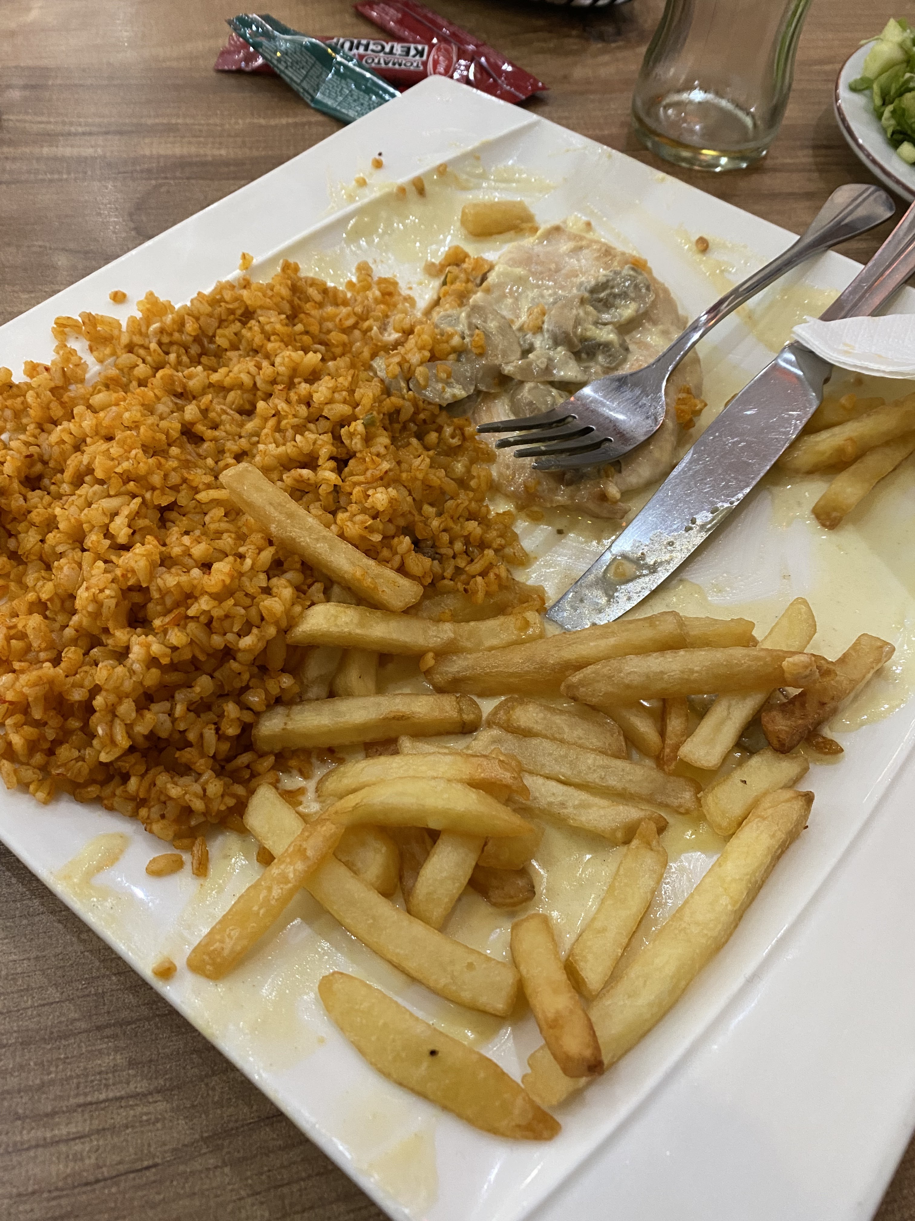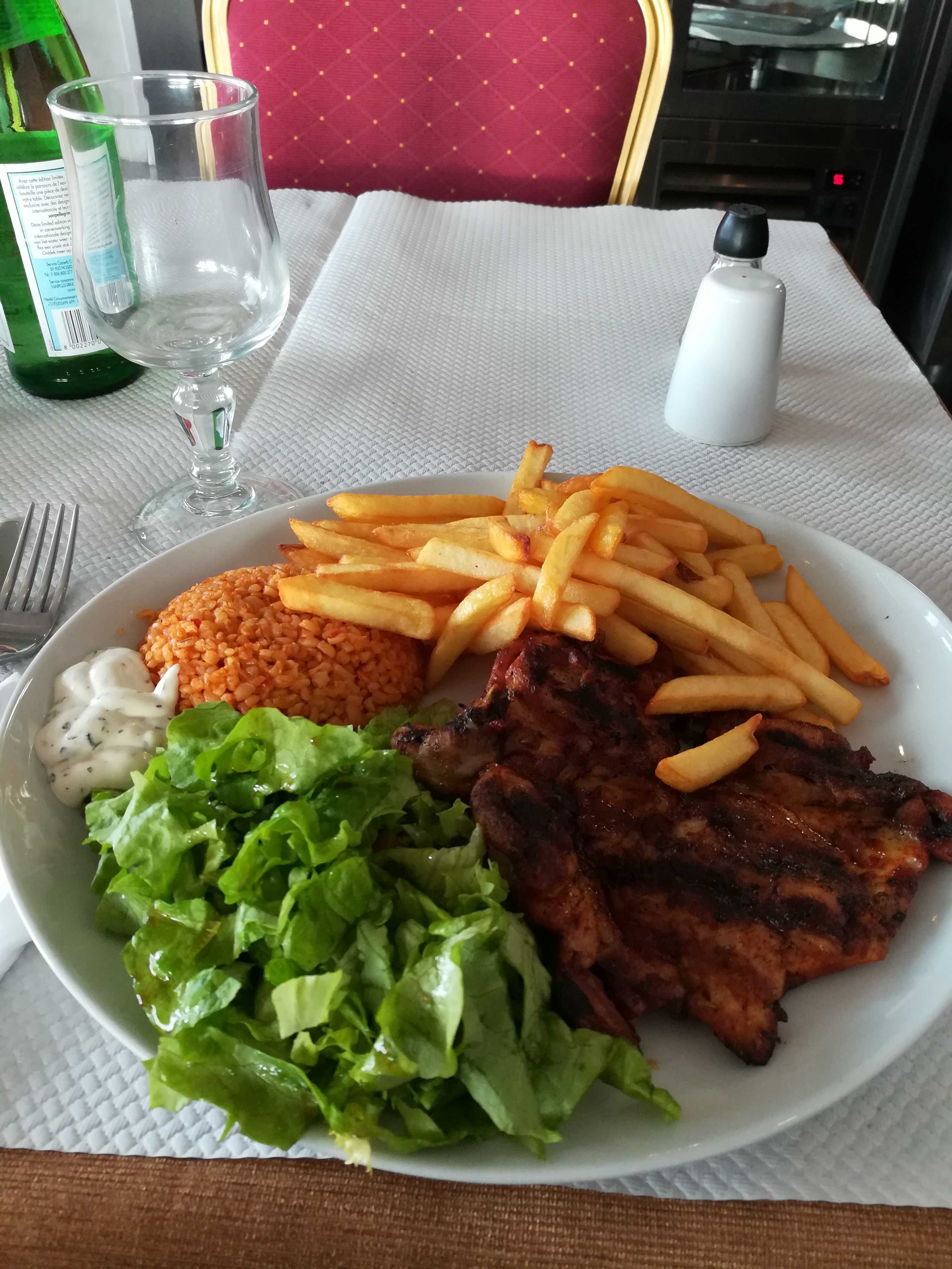Le restaurant sert de belle portion de nourriture la qualité est au rendez-vous, mais j'ai trouver leur iskender trop gras, pour ce qui est du yaourt au concombre une tuerie. L'escalope à la crème était servis avec du riz et des frites. La sauces était Bonne mais comme l'iskender très grâce. Pour ce qui est des meze rien à dire délicieux. Le prix est abordable et la service sympathique. Je dirais que je n'est pas apprécié le regard lourd d'un groupe d'habituer mais cela ne dépend pas du restaurant. Enfin le repas à été conclu par un thé turc offert une bonne surprise. 😸 Je reviendrai sûrement mais plutôt en hiver.