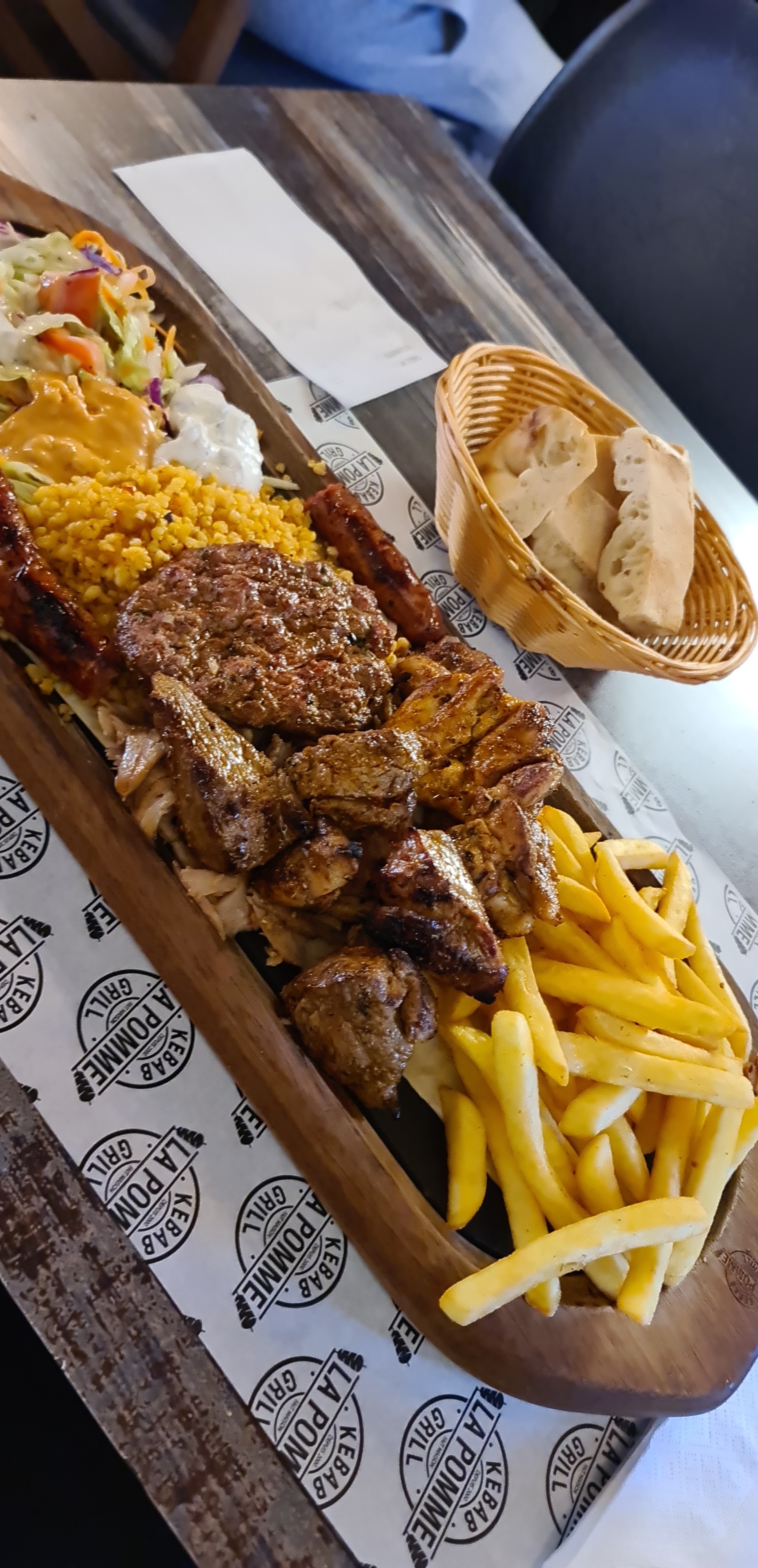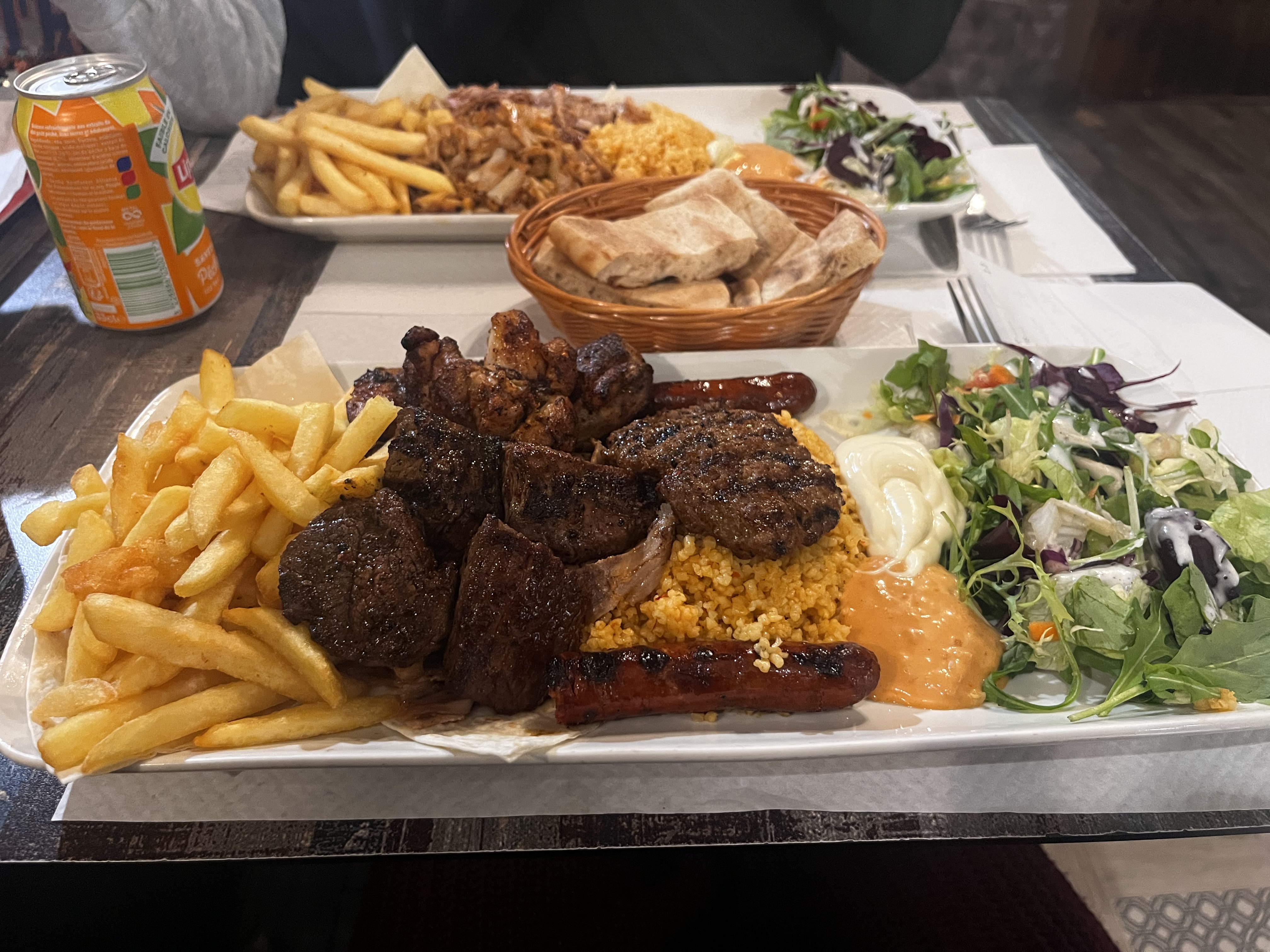 Très bon dans l’ensemble , je recommande surtout la viande de grec. Pensez à mettre un peu plus de sauce dans les assiettes, et pour les assiettes mixte, et de rajouter un peu plus de viande de grec sachant qu’au moment de la commande vous nous aviez dit que vous alliez mettre la dose.