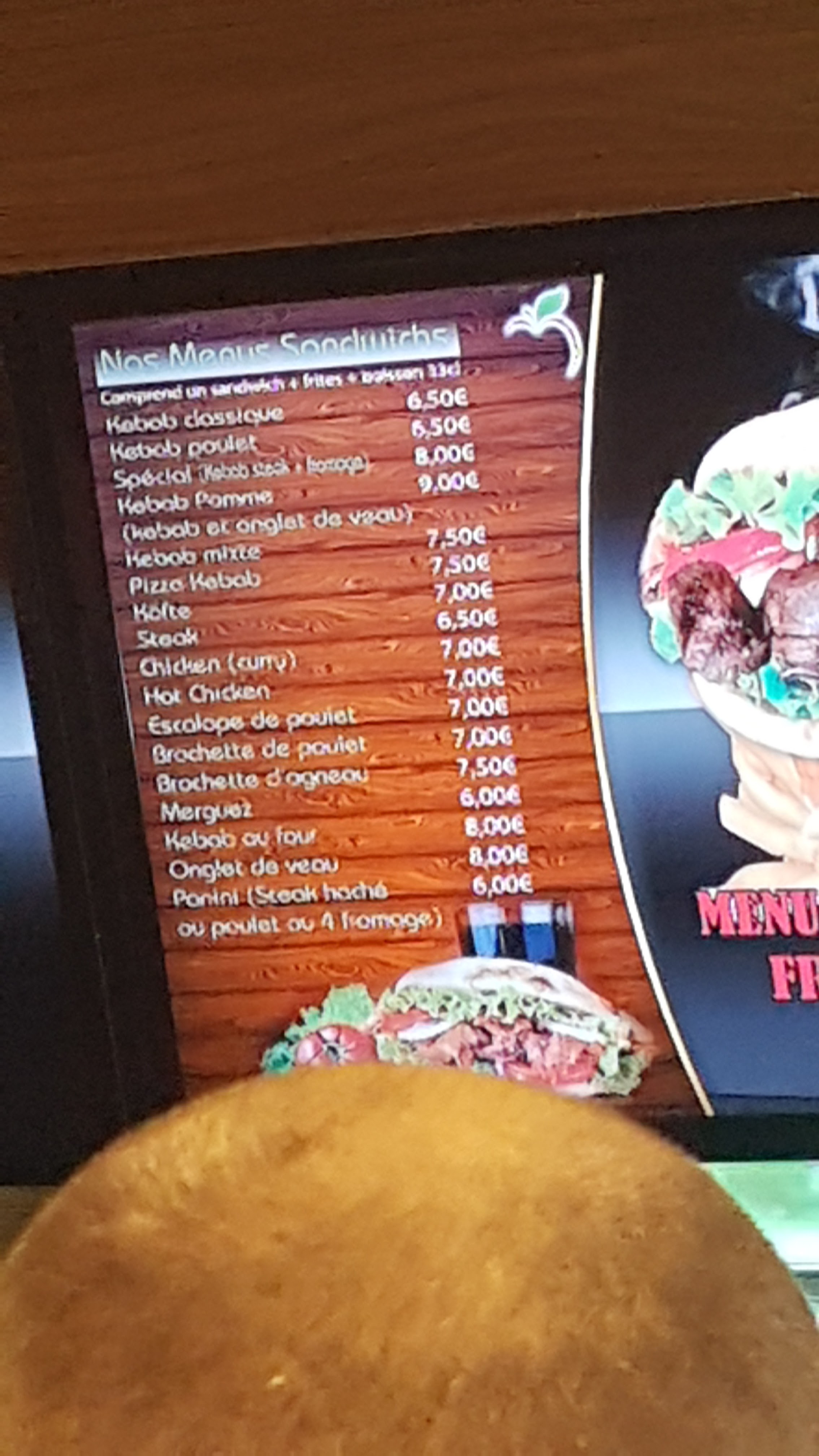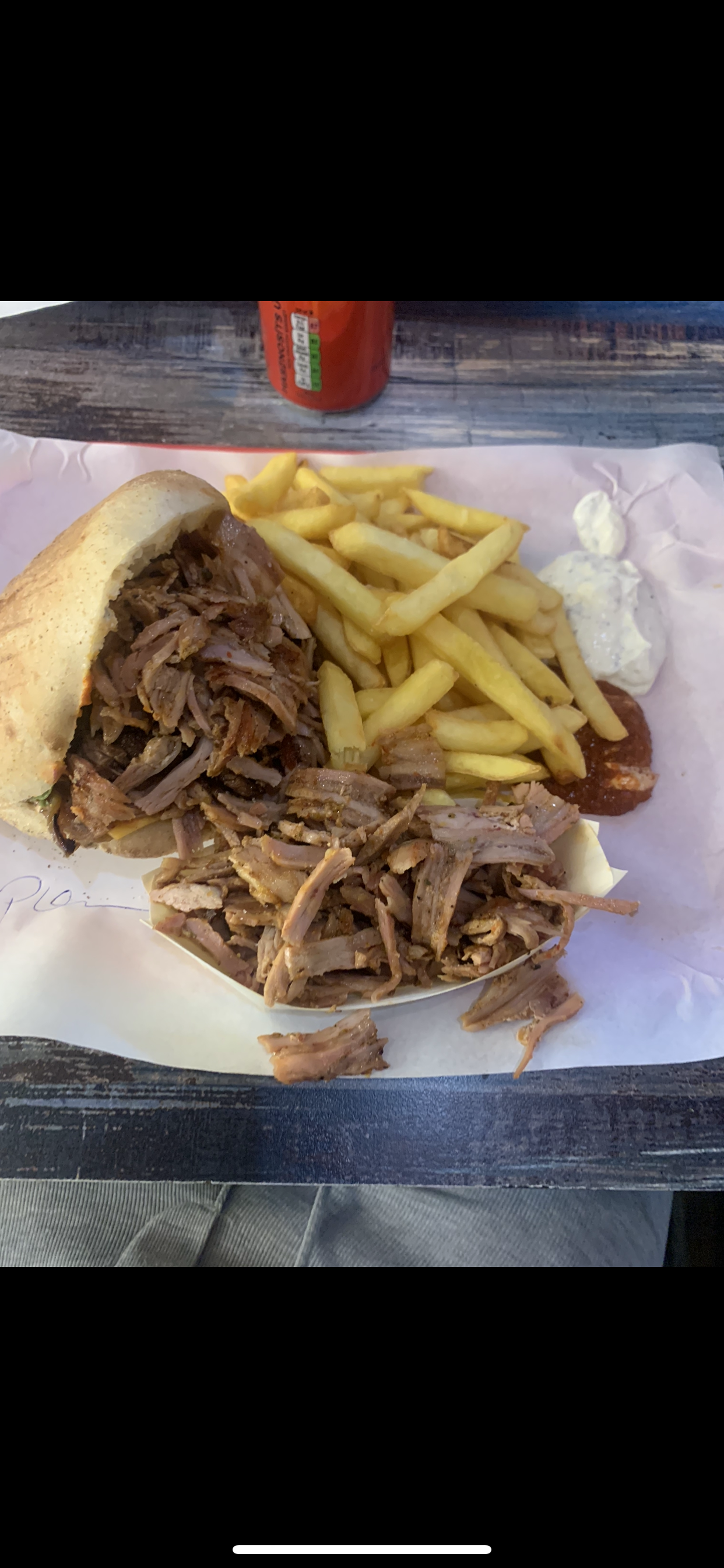 Kebab très bon je recommande! La viande est de qualité, les oignons rouges et tomates sont fraîches, le pain rond est moelleux et les frites même à emporter ne sont pas arrivées molles. Deuxième fois que nous allons la bas et très satisfaits
