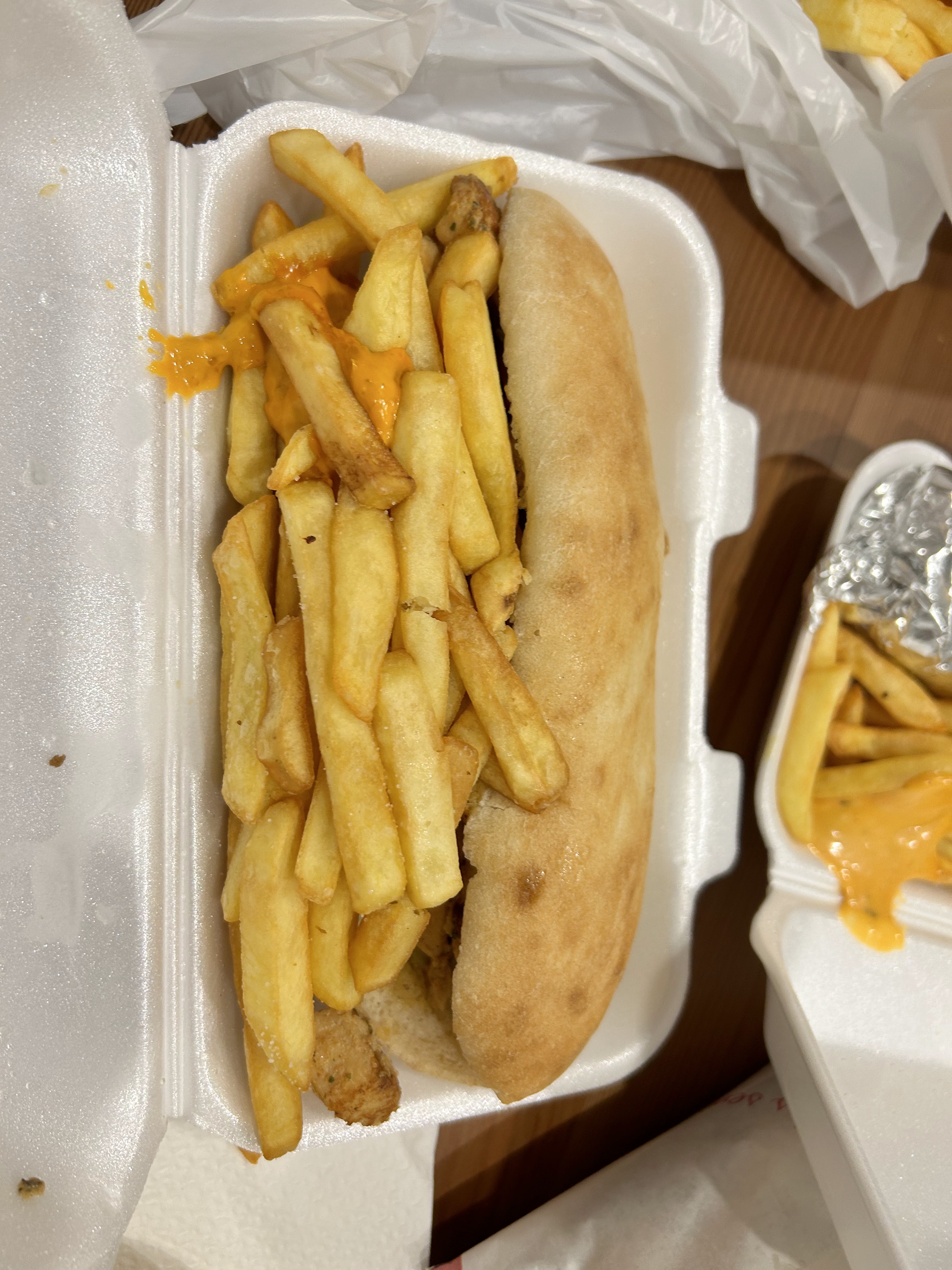 Pas terrible le grec a emporter, je me suis retrouvé avec « des frites mariné au grec »au lieu des frites ainsi que les deux sauces que j’avais demandé…