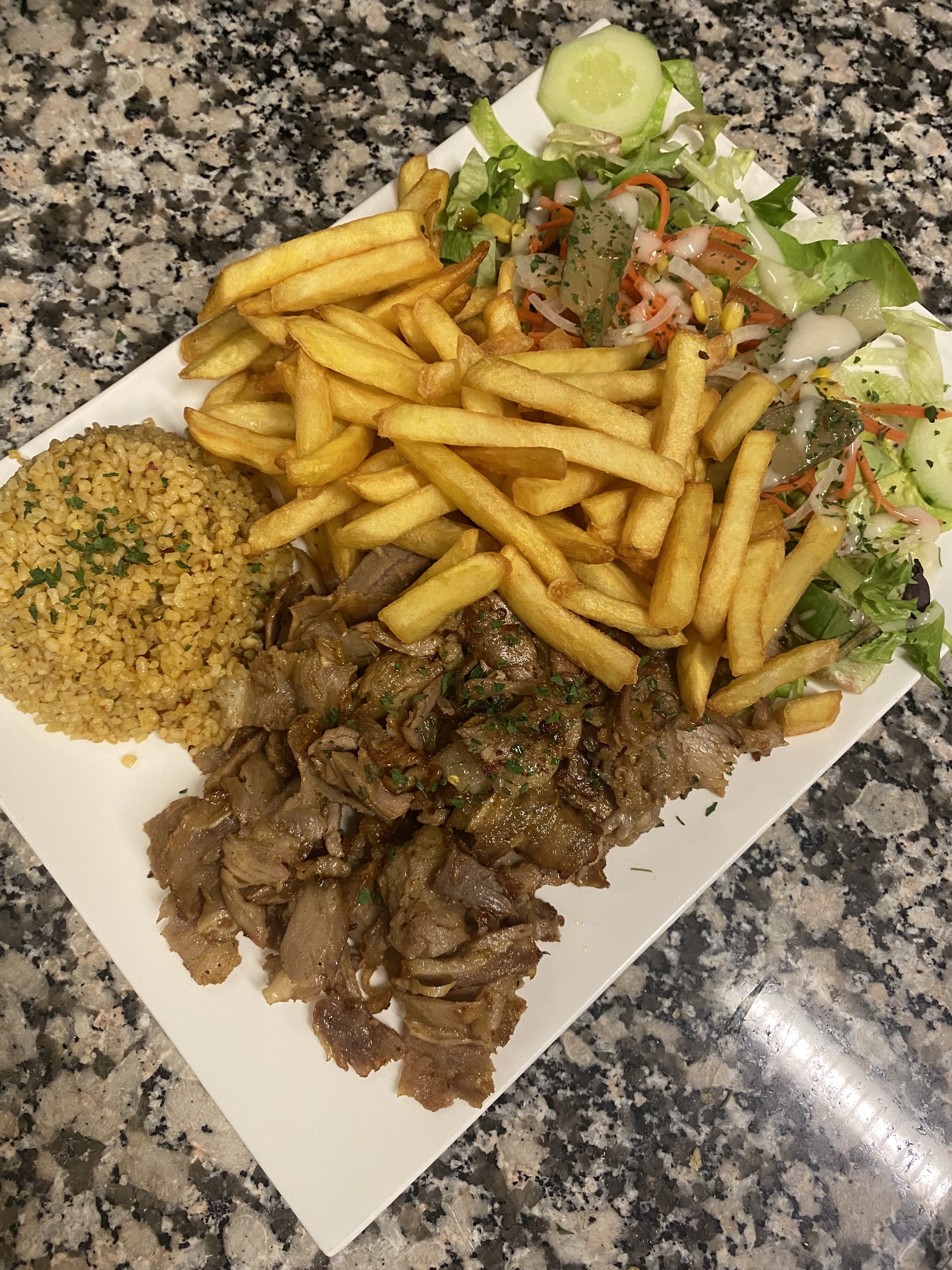 Vraiment très moyens comparés à d’autres restaurants turc ou j’ai mangé .. le poulet n’a pas beaucoup de goût, le boulgour n’ont plus, les frites n’avaient pas l’air fraîches, viande de kebab et kefta qui avaient un goût bizarre .. j’ai mangé j’ai fini mon assiette mais le goût n’y était pas