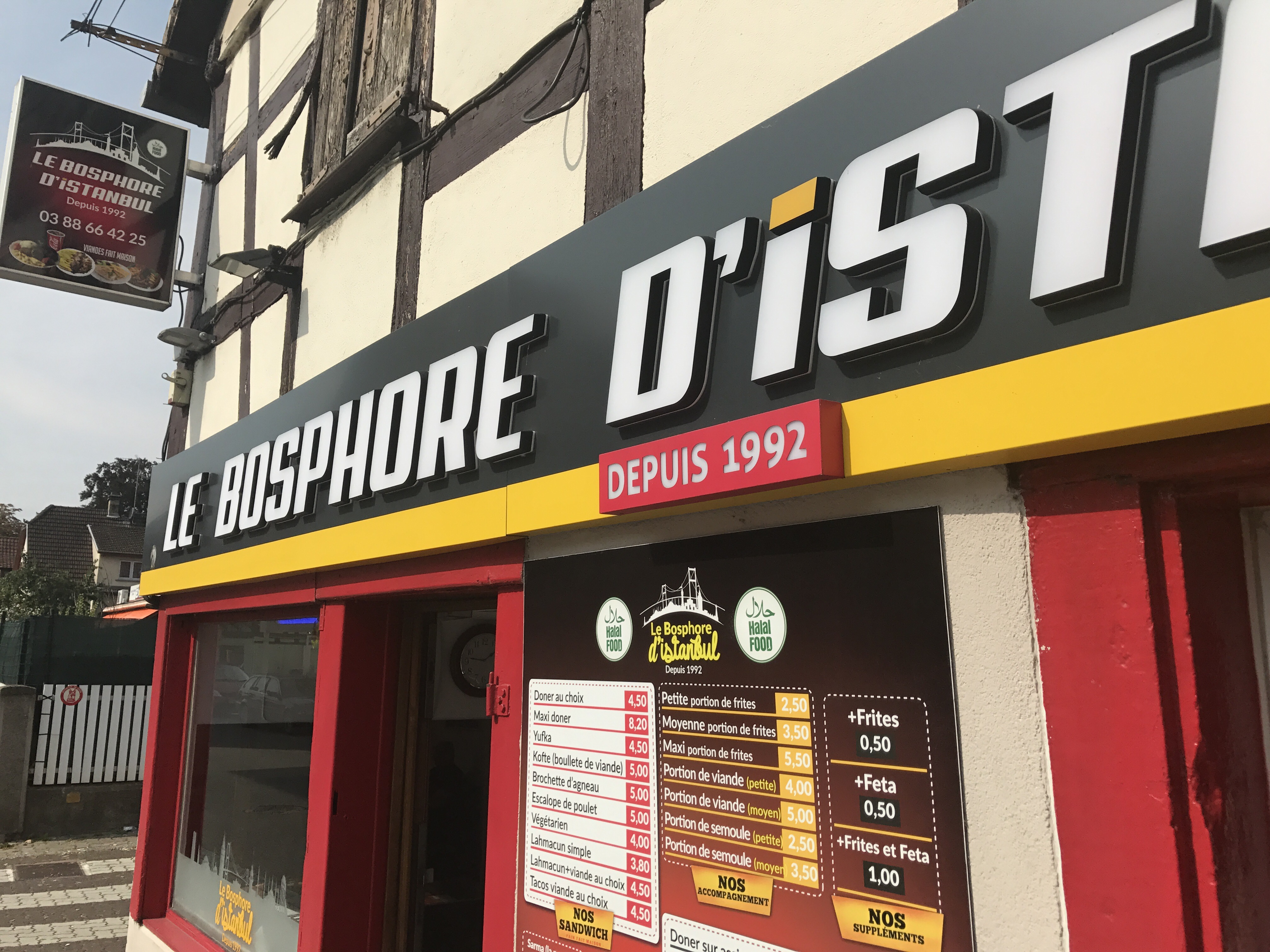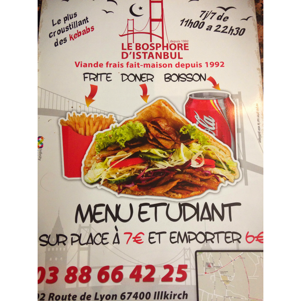 J'habitais à Illkirch avant habitants Ostwald depuis quelques années maintenant dès que j'ai une petite faim pour mon bonheur je vais au Bosphore j'adore c'est doner kebab pourtant ya d'autre dans les alentours mai c'est chez lui que j'arrive toujours à finir quitte à refaire demi-tour pour en reprendre 1 loll les autre à la moitié j'arrive plus à causse du goût ptete en tout cas je vous le conseille si vous avais une petite faim c'est la bas que ça ce passe et le patron que je connais très chaleureux pour vous accueillir !