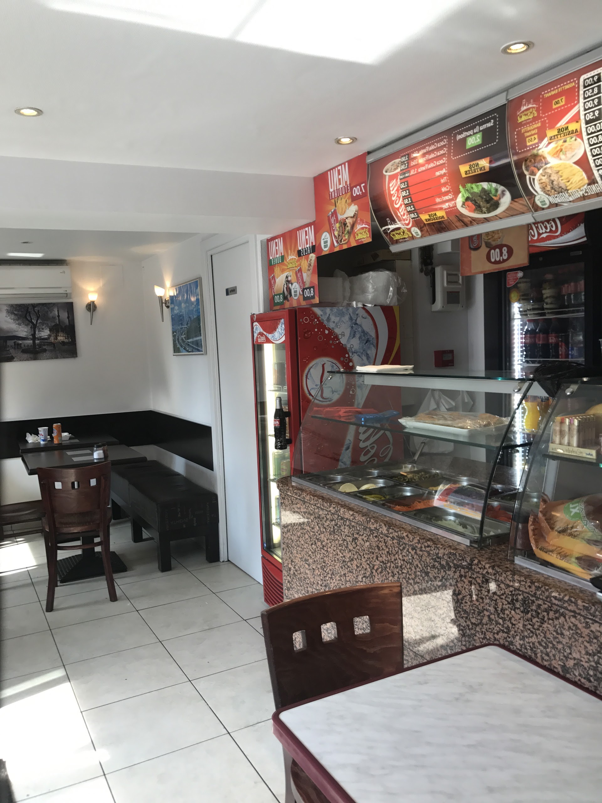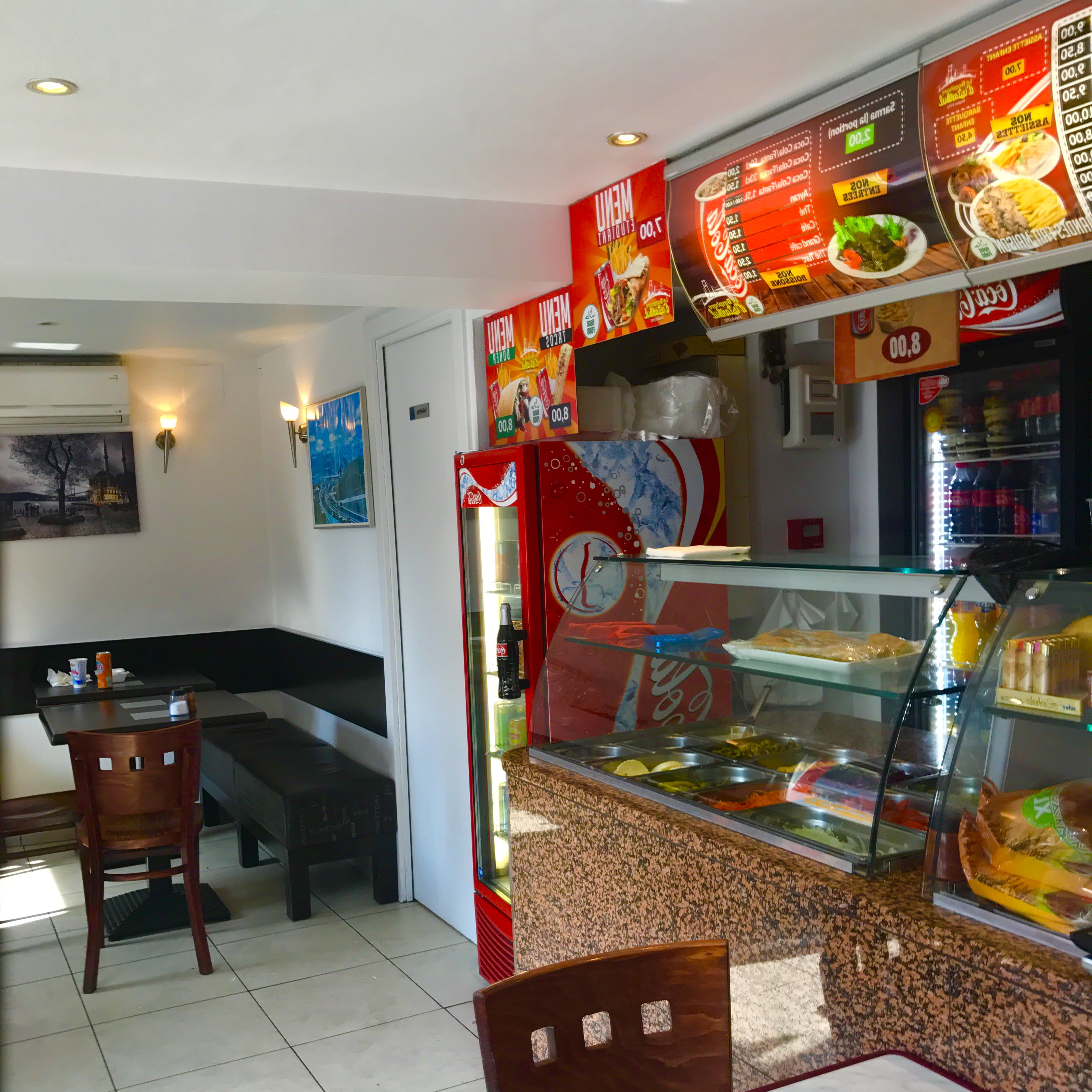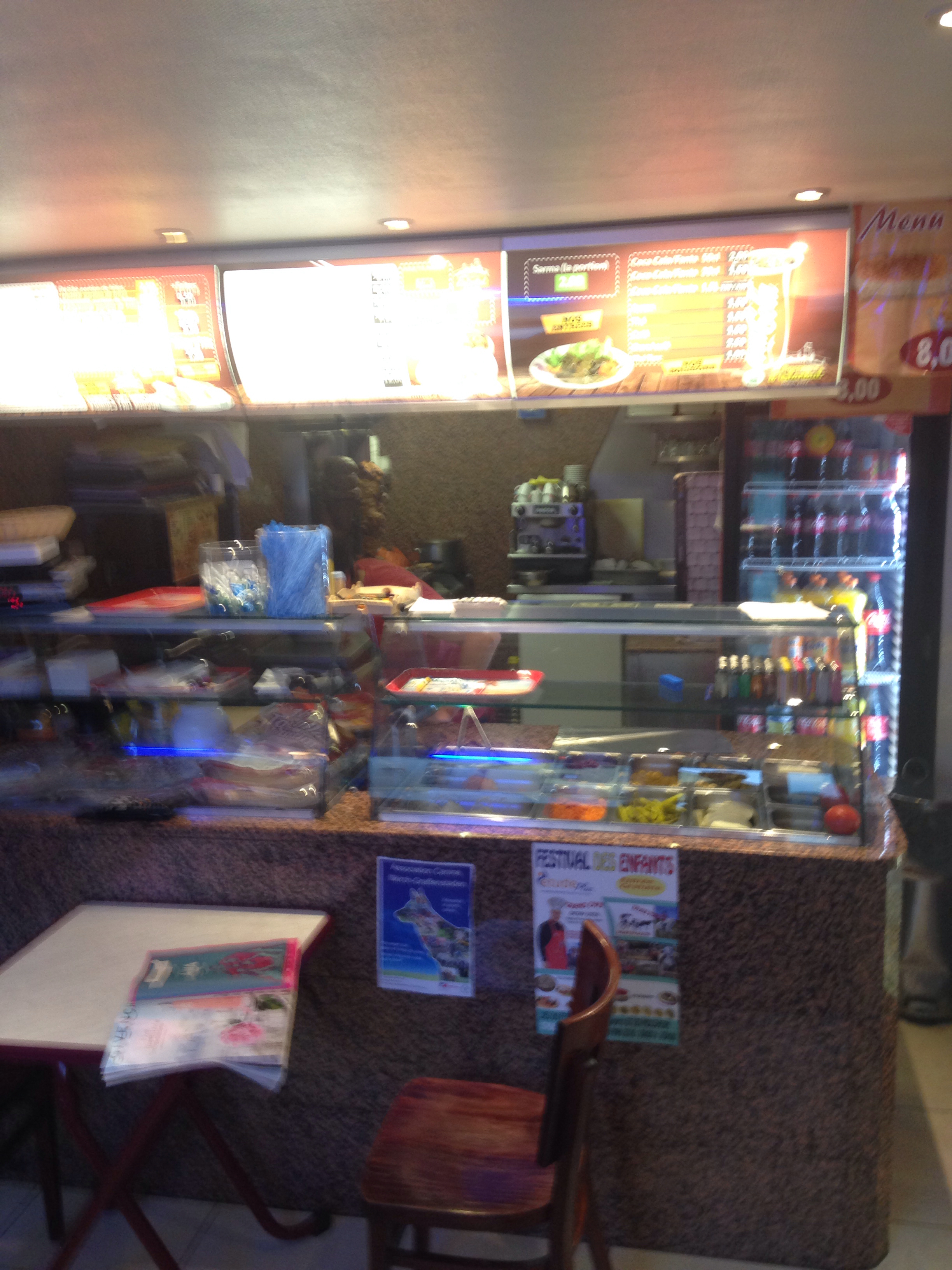 Quelques tables à l'intérieur, prix et formules attrayants personnel très souriant. Le Lamacuhn est un régal. Manque juste le choix de moutarde pourquoi ? Mayo-moutarde c'est un délice. Très sympa, mon préféré.