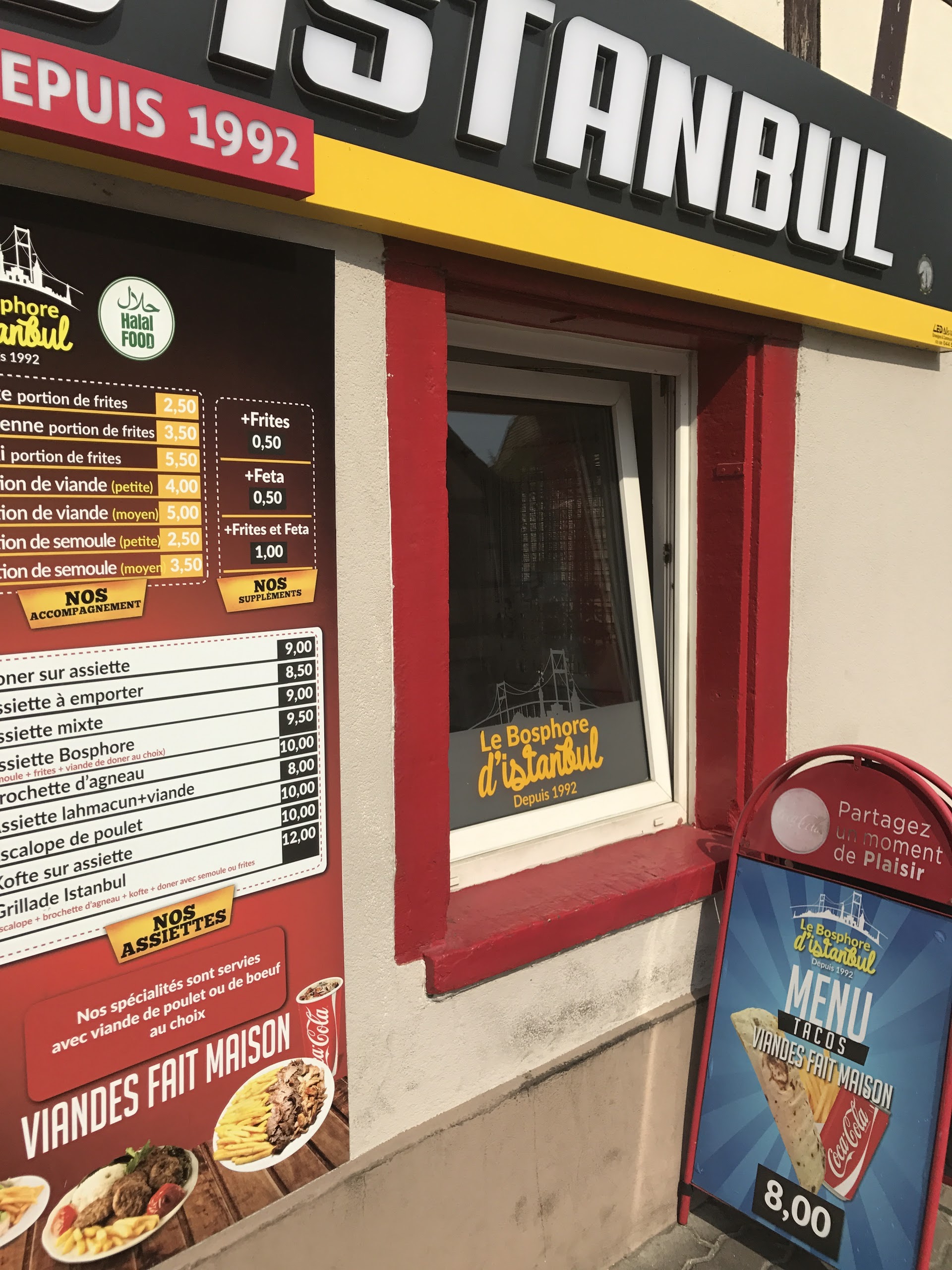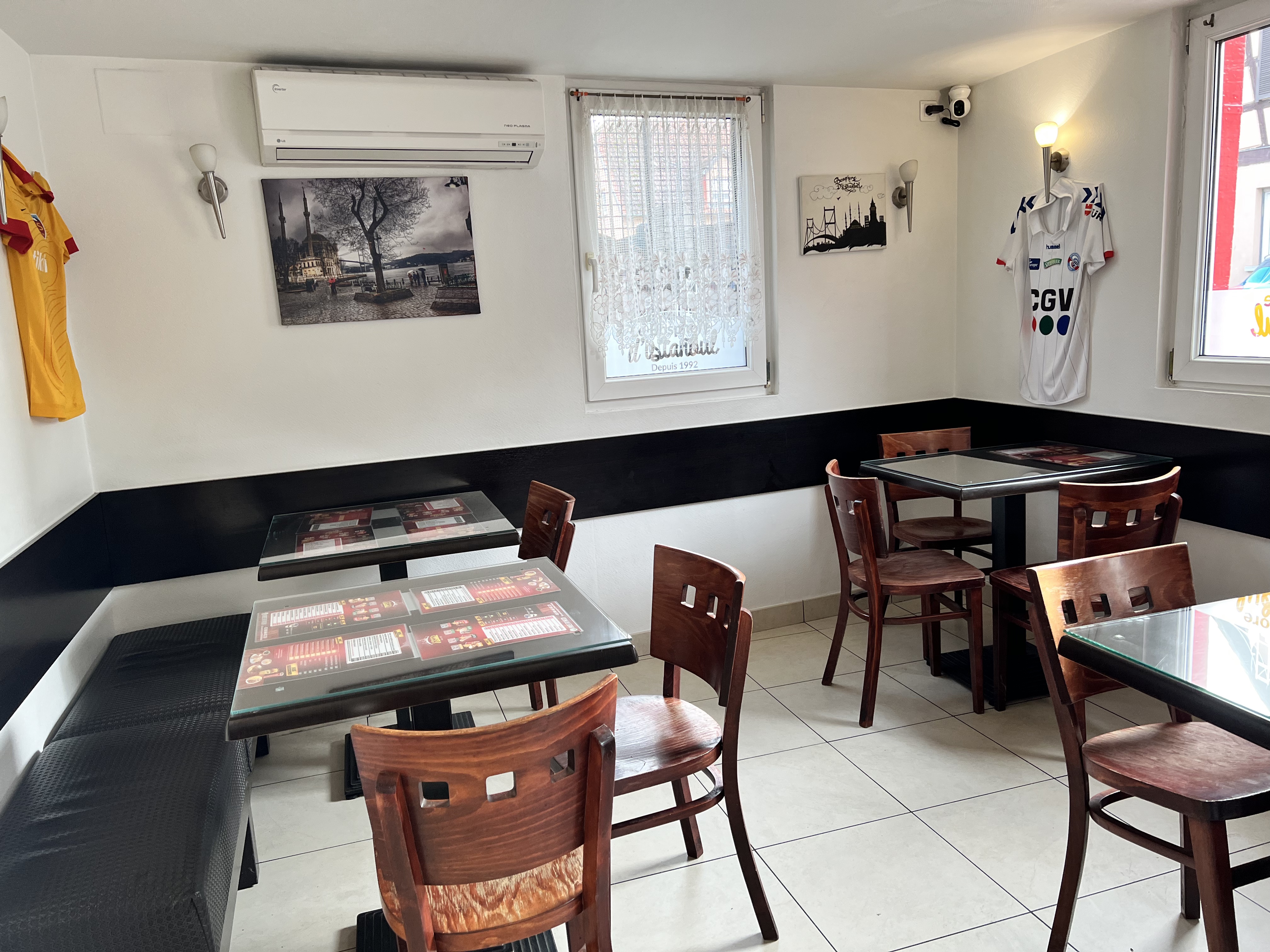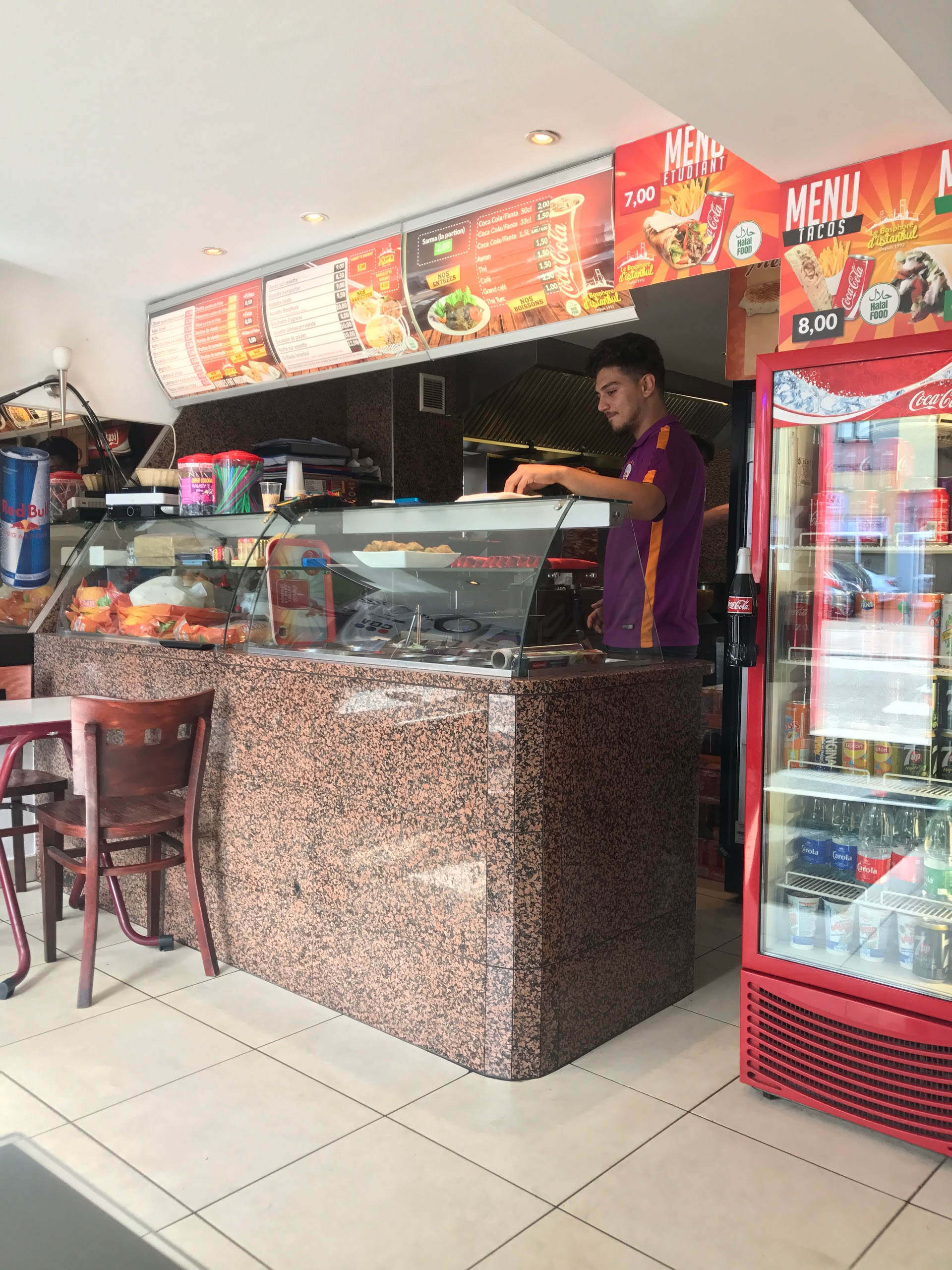 Quelques tables à l'intérieur, prix et formules attrayants personnel très souriant. Le Lamacuhn est un régal. Manque juste le choix de moutarde pourquoi ? Mayo-moutarde c'est un délice. Très sympa, mon préféré.
