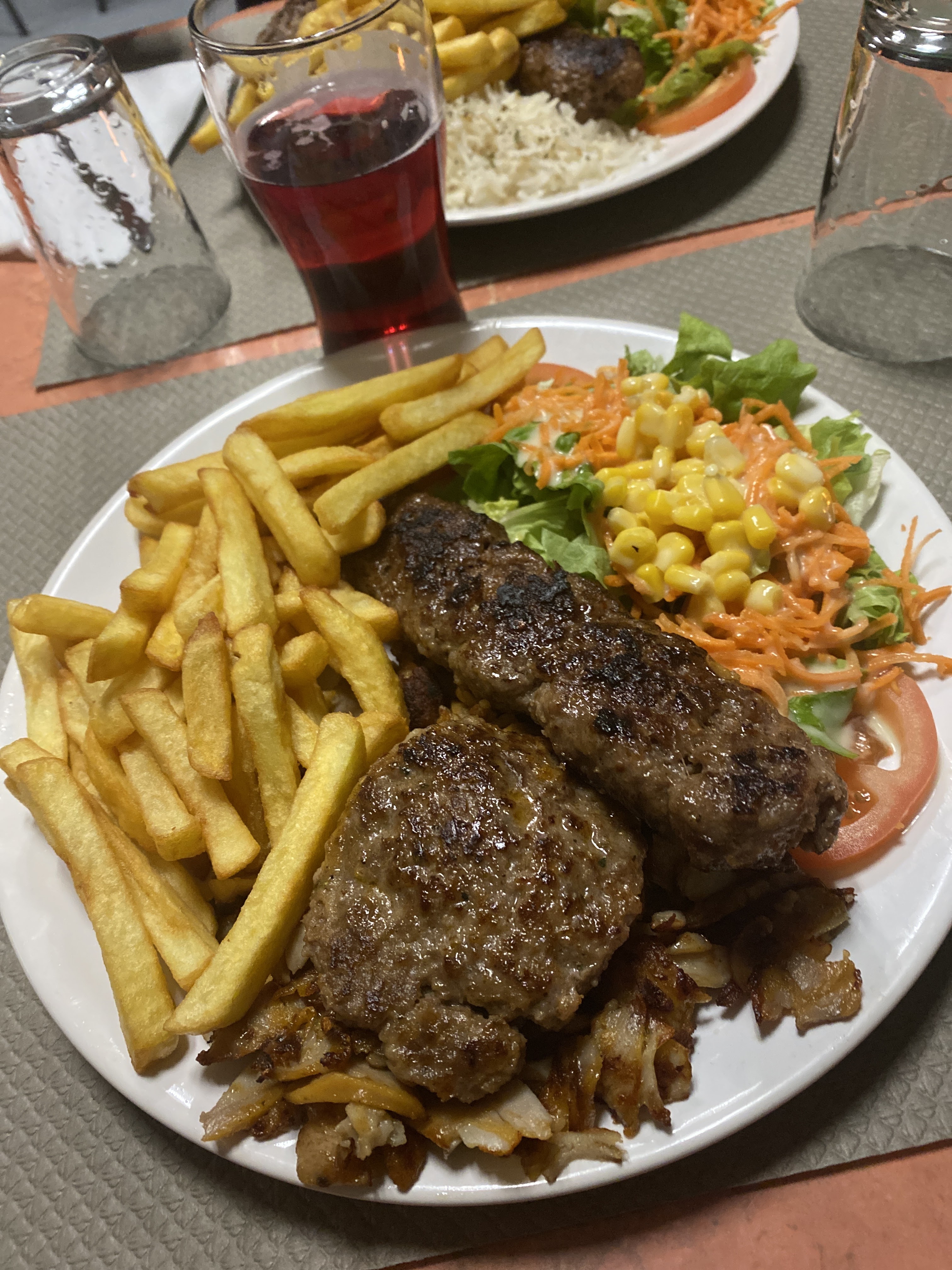 Aujourd'hui, j'ai déjeuné ici et ce fut une expérience formidable! Le propriétaire était si gentil, cela a vraiment fait notre journée. Après avoir conduit pendant environ une heure avec 4 adultes et 4 petits enfants, nous avons visité un total de 5 restaurants qui étaient tous pleins ou fermés. Lorsque nous avons visité ce restaurant, nous sommes arrivés 5 minutes avant l'heure de fermeture et avions déjà perdu l'espoir d'être autorisés à déjeuner ici. Cependant, à notre grande surprise, le propriétaire n'a posé aucun problème et nous a aidés à nous asseoir à l'ombre et nous a aidés avec notre commande (nous ne sommes pas très bons en français, donc l'aide a été bien reçue). Le propriétaire est ensuite allé nous préparer la nourriture, même si officiellement le restaurant était fermé! ! La nourriture elle-même était parfaite. Nous avons commandé divers plats de köfte qui avaient l'air et étaient extrêmement bons et qui ont également été servis assez rapidement! Étant moi-même à moitié turc, je peux reconnaître un bon köfte quand je le mange. Il ne sera pas surprenant que nous ayons donné un pourboire au propriétaire pour environ 20 à 30 % du coût. Ensuite, nous sommes restés peu de temps pour discuter avec le propriétaire et il nous a montré de superbes instruments de musique. Cette personne a vraiment fait notre journée avec sa gentillesse et sa bonne nourriture. Tous les autres restaurants nous ont refusé, ce dont je suis en fait content car j'aurais préféré à 100% manger ici et pas ailleurs.