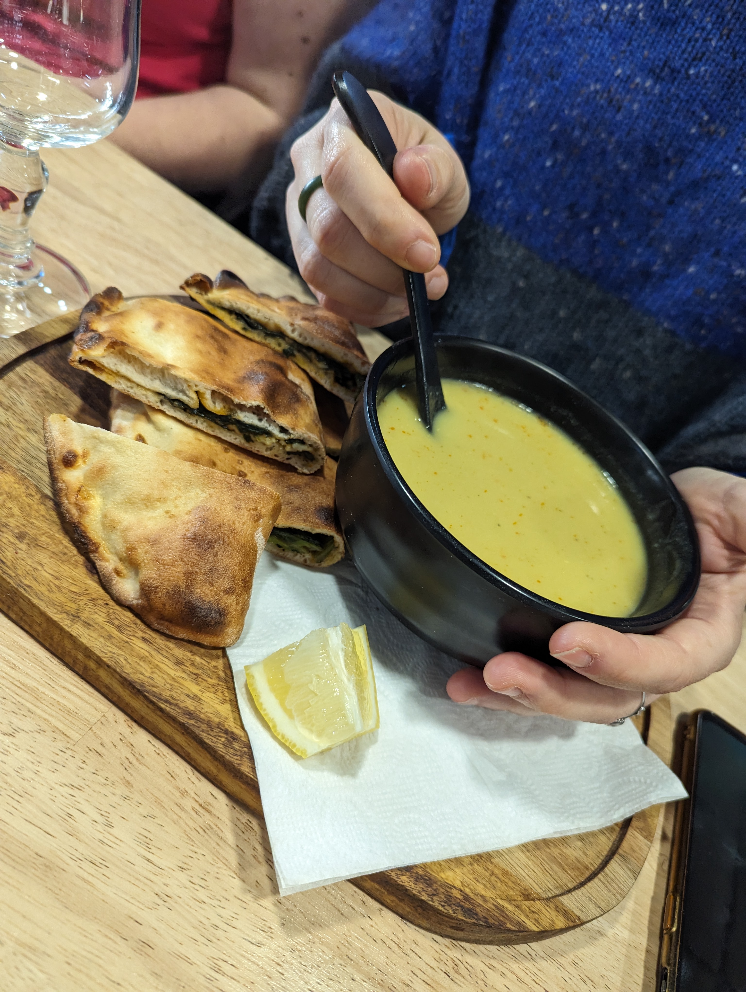 D'abord la soupe, puis le foie, puis un thé, un kunefe, un accueil chaleureux, merci pour tout.