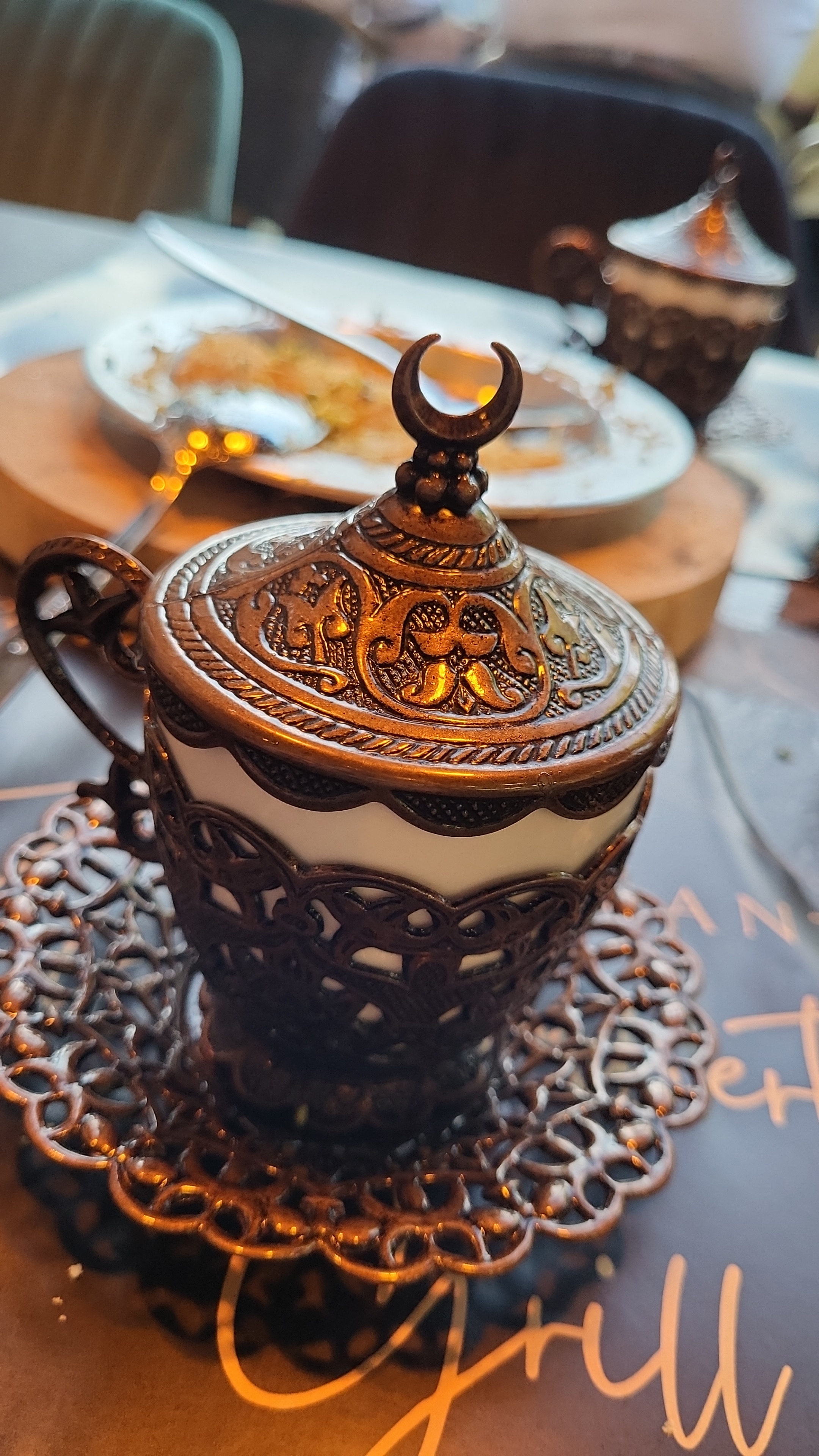Une petite découverte ... Un lieu charmant , avec une musique traditionnelle turc en fond , le décor est plaisant et un accueil chaleureux . Nous nous sommes laissé guider pour découvrir leurs plats et avons été agréablement surpris. Je recommande ! Excellent rapport qualité-prix.