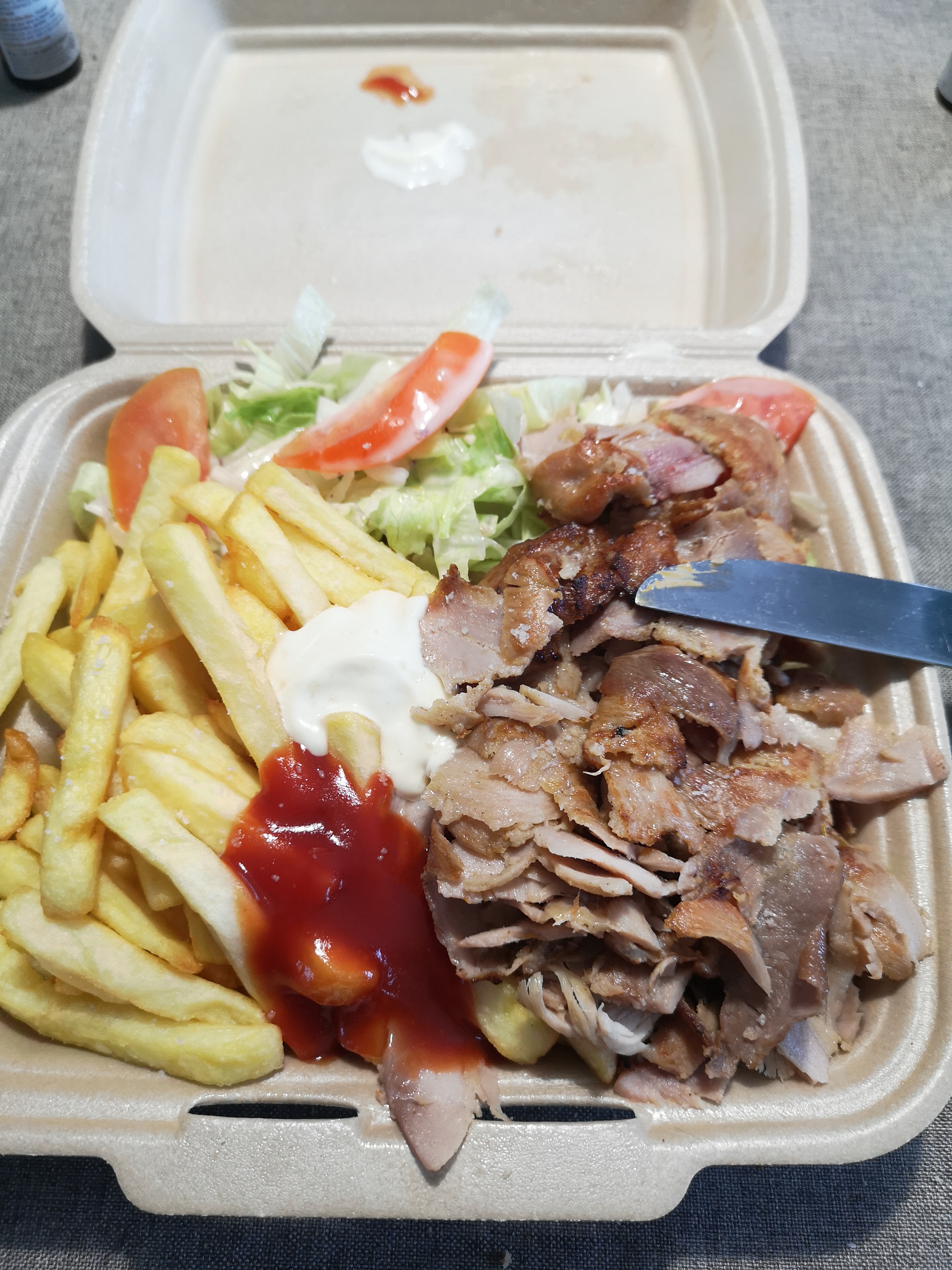 Pain froid et peu de frites pour le prix proposé grec cher et pas exceptionnel je ne recommande pas