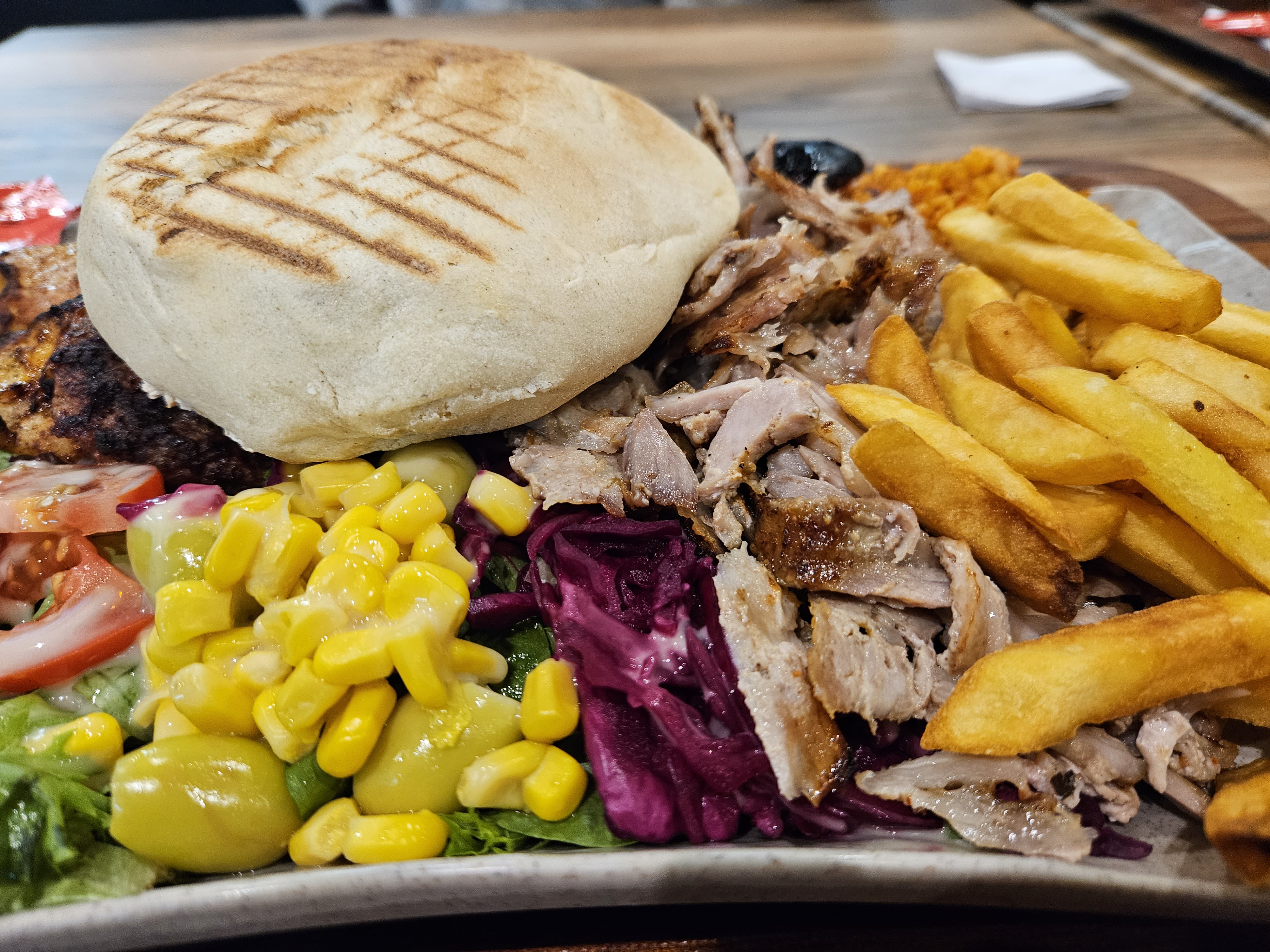 Grec bon mais huileux et pas incroyable non plus, l'accueil pas terrible c'est à revoir, limite inexistant dans leur coin