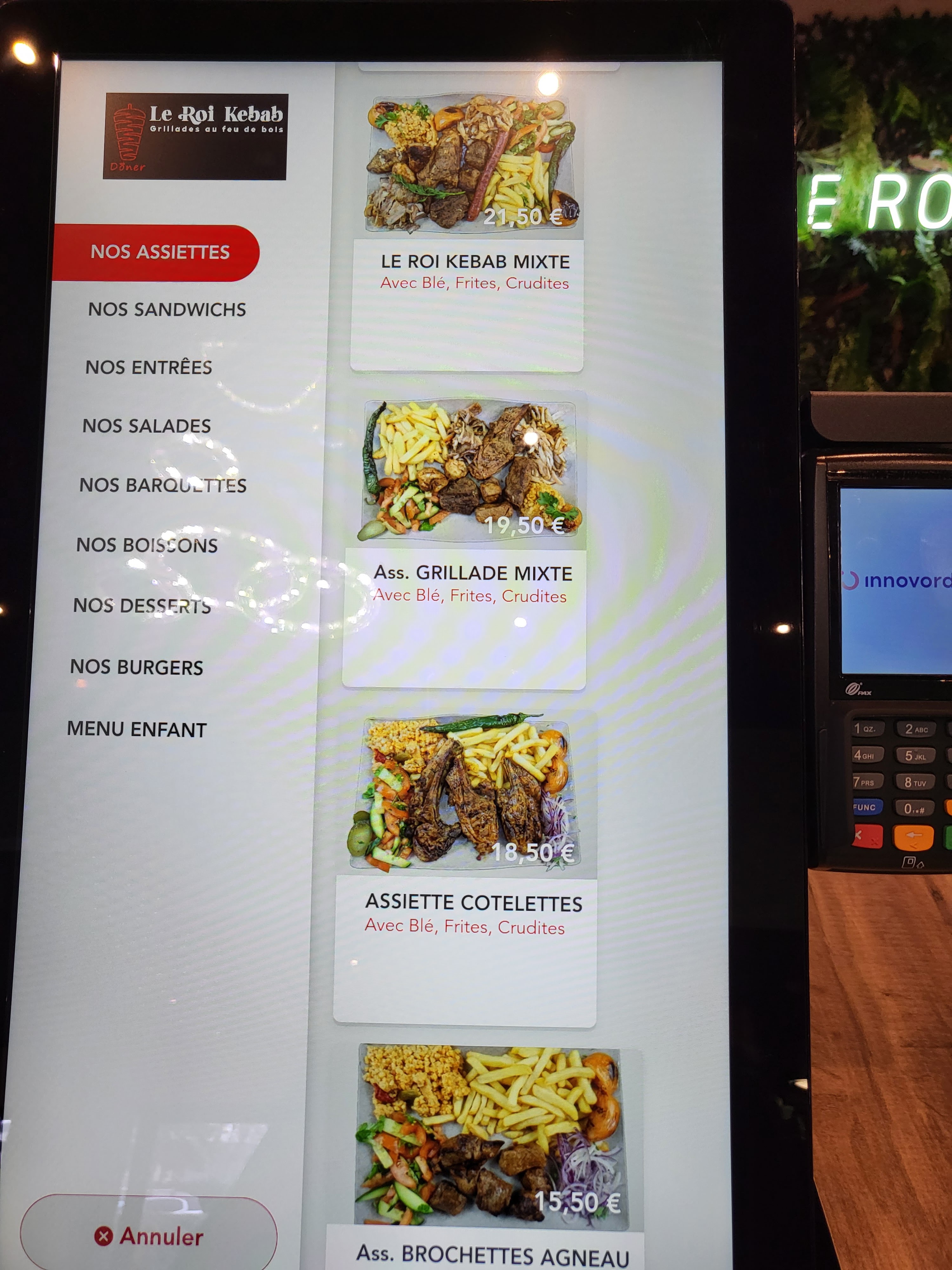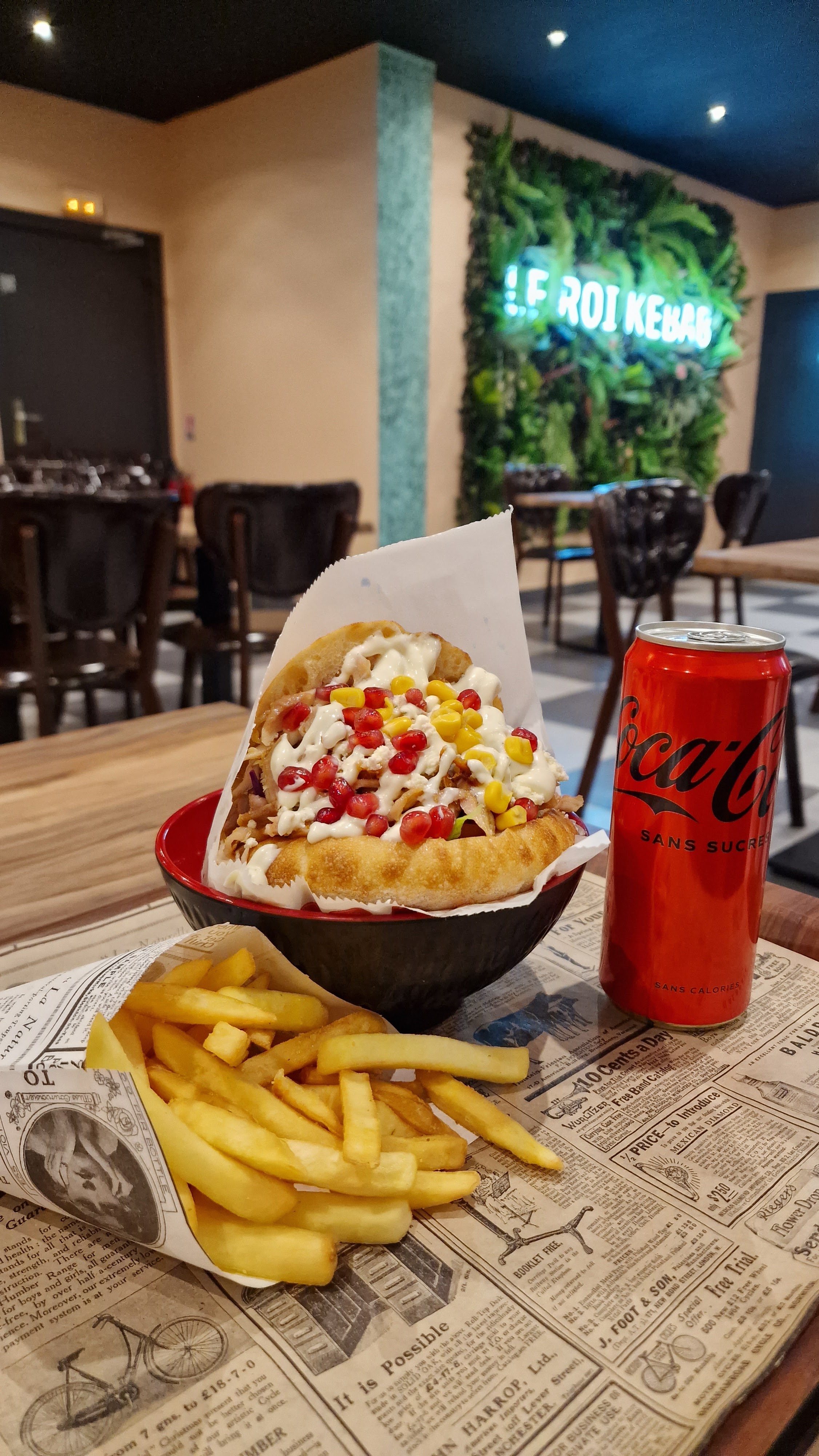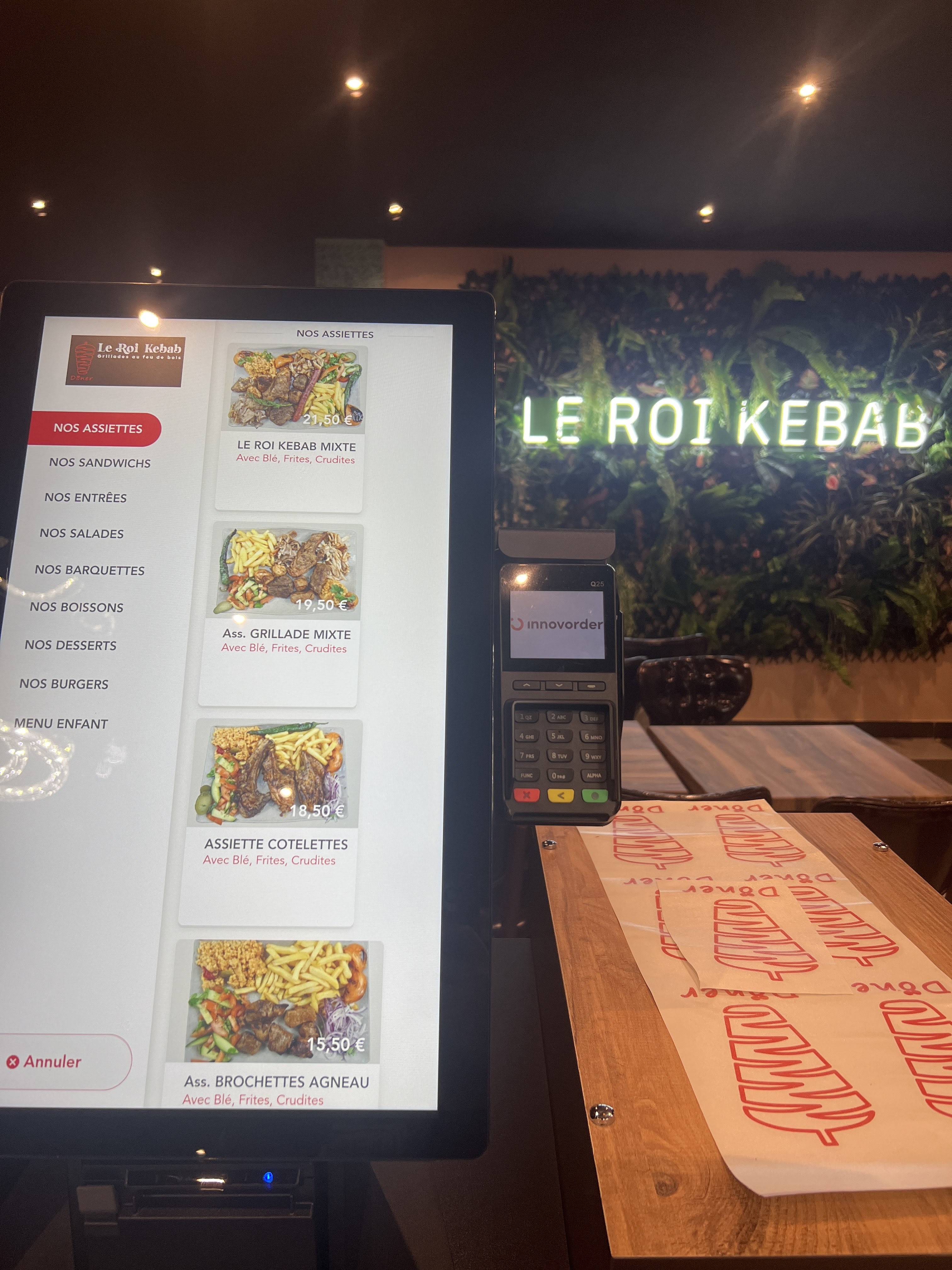 Aucun accueil, aucun goût, pour 20€ 2 kebab ,2 boisson on commande à la tablette de que c’est prêt c’est nous on part chercher Et aucun goût vraiment j’ai pris un kebab duo pas bon du tout , ya pas de sel poivre sur les tables A fuir Pour ce prix tu manges mieux ailleurs La viande aura du goût au moins mais c’est pas le cas chez le roi kebab