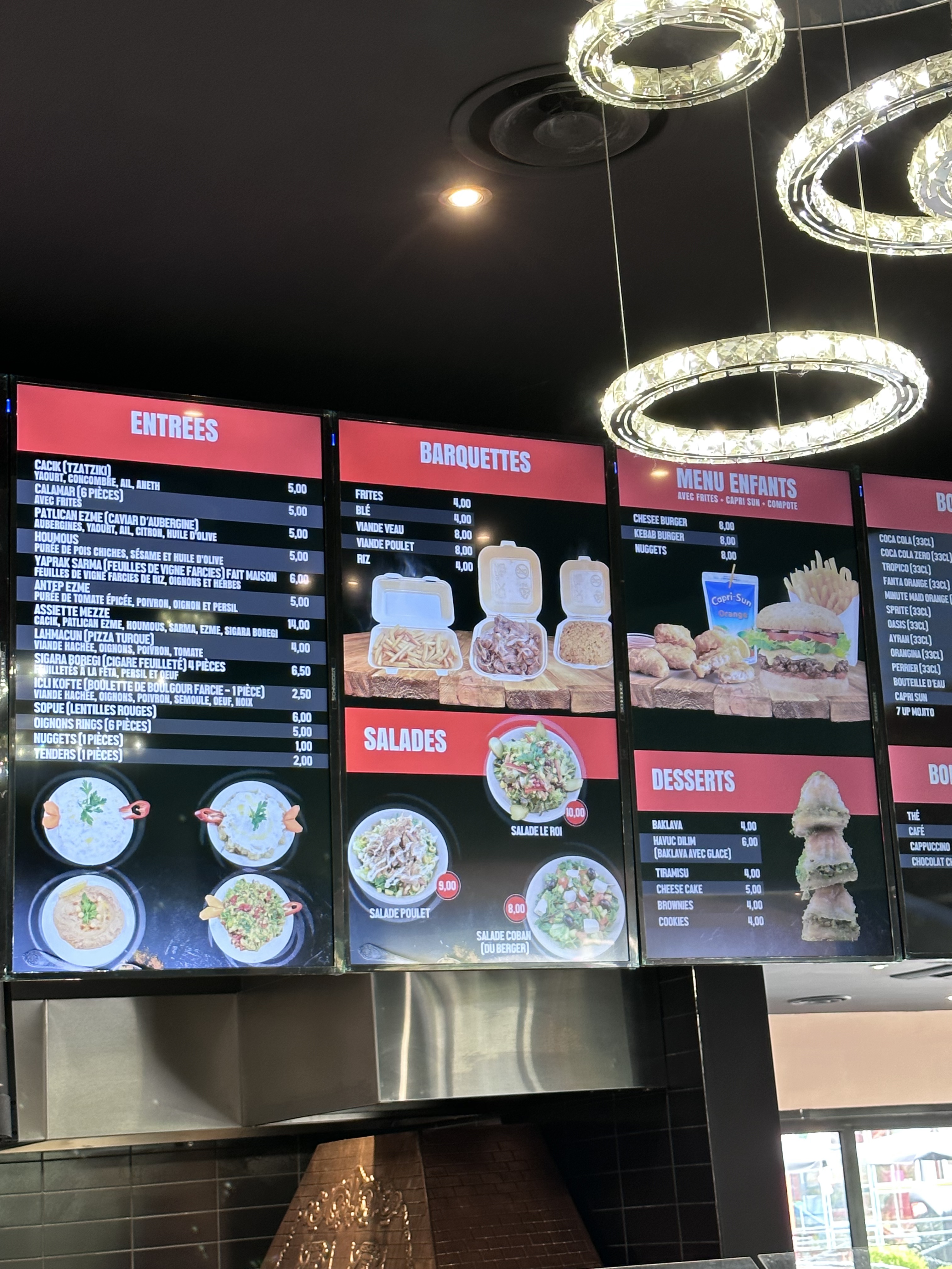 pour avoir commander hier à emporter nous sommes très très déçu 25 € pour une assiette avec 3 morceaux de viande parconte chargée de riz et blé , une ridicule barquette de salade à côté et un sandwich merguez avec quelque morceaux de salade et 1 merguez dans le sandwich et on paye sa 9.60 le sandwich sans boisson … beaucoup trop chère pour ce que c’est . je ne recommande pas ce restaurant cetais une première bas je n’y retournerai plus jamais