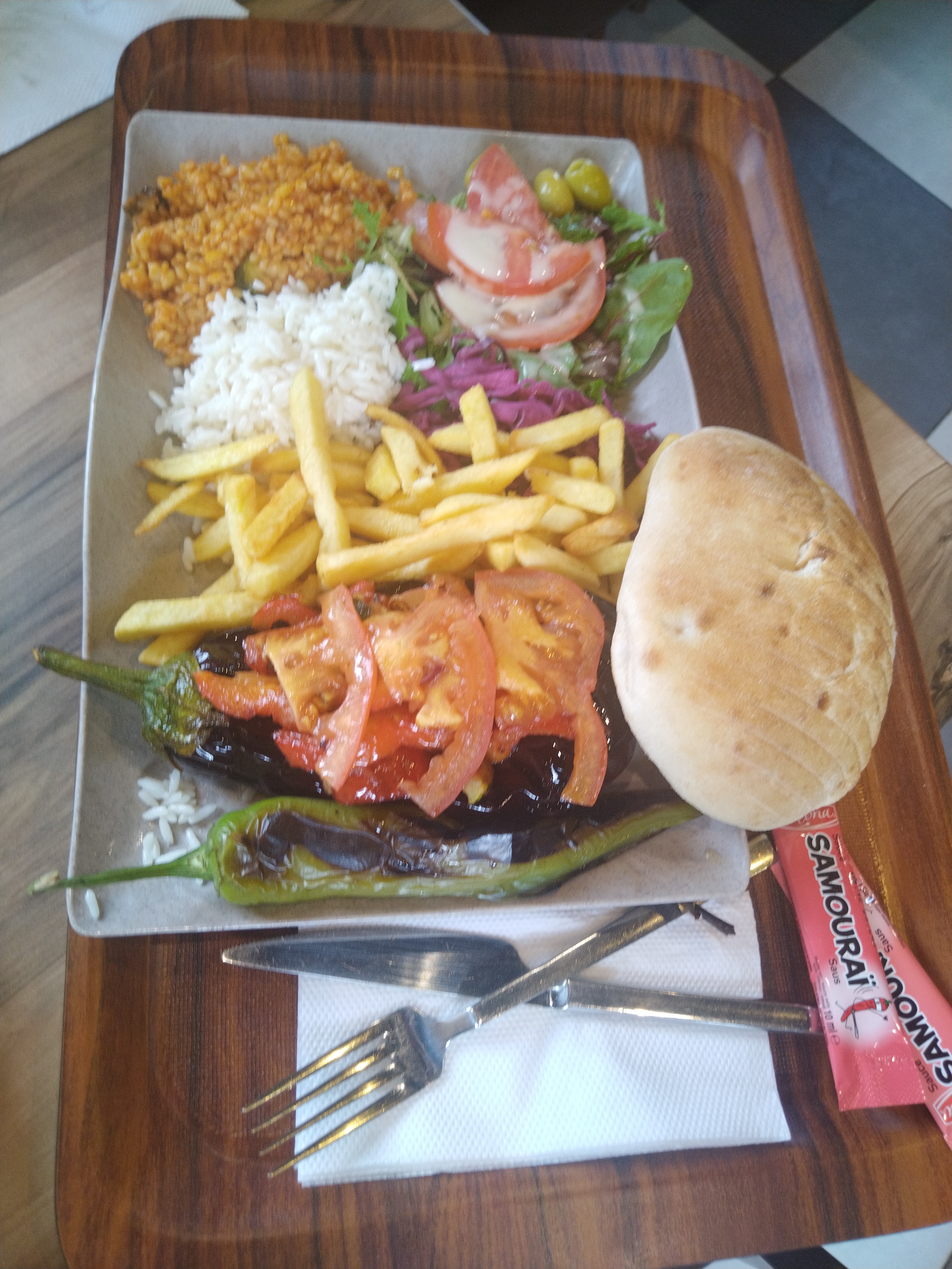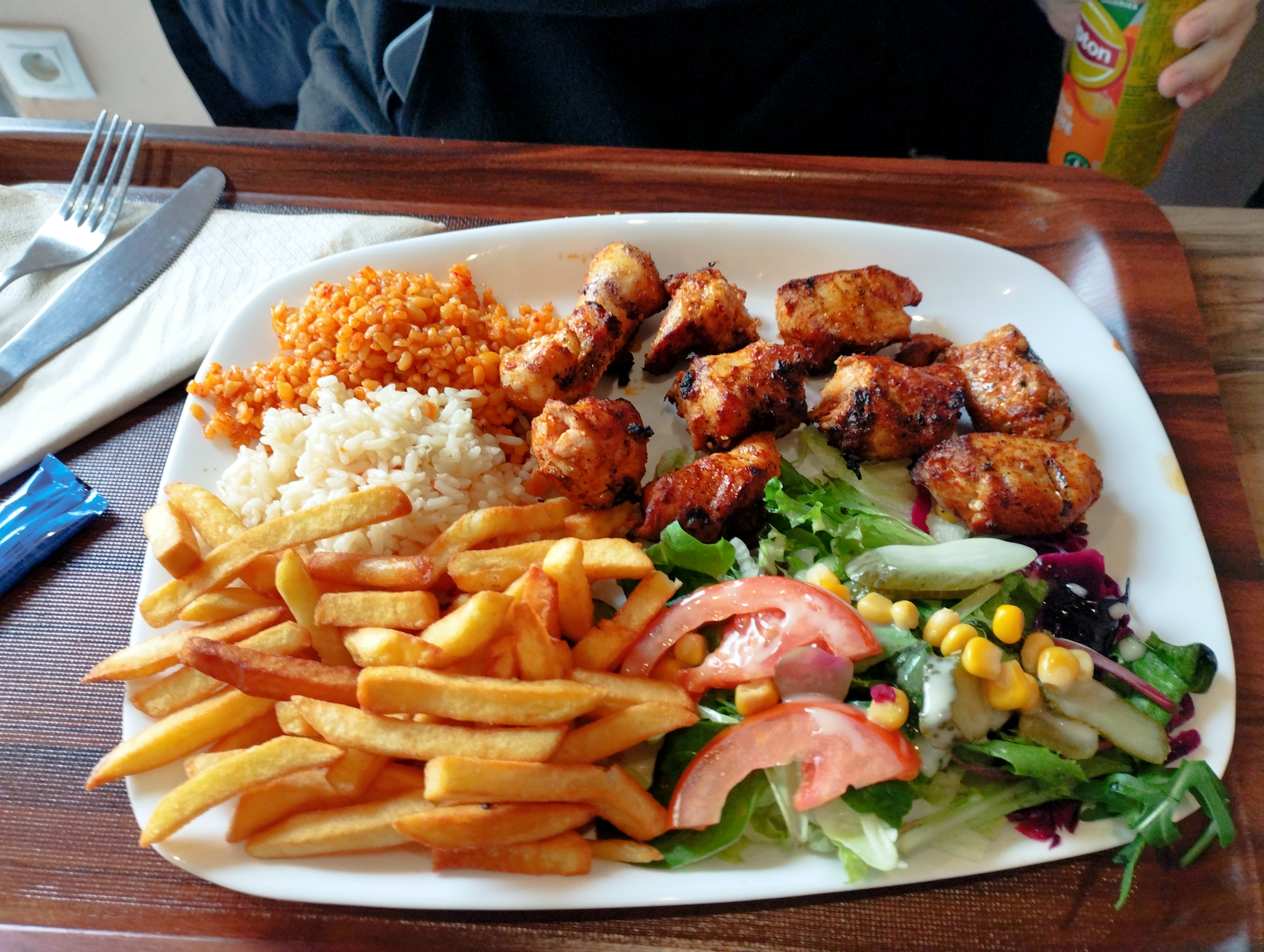 Très bien ! Une assiette bien garnie j’ai choisis le roi du kebab grill avec mouton merguez poulet côte d’agneau bulgur salade piment grillé etc Fabuleux servit grille bien sûr avec une flamme 🔥 bon rapport qualité prix 🥇 je valide cette adresse qui mérite qu’on s’y attarde.