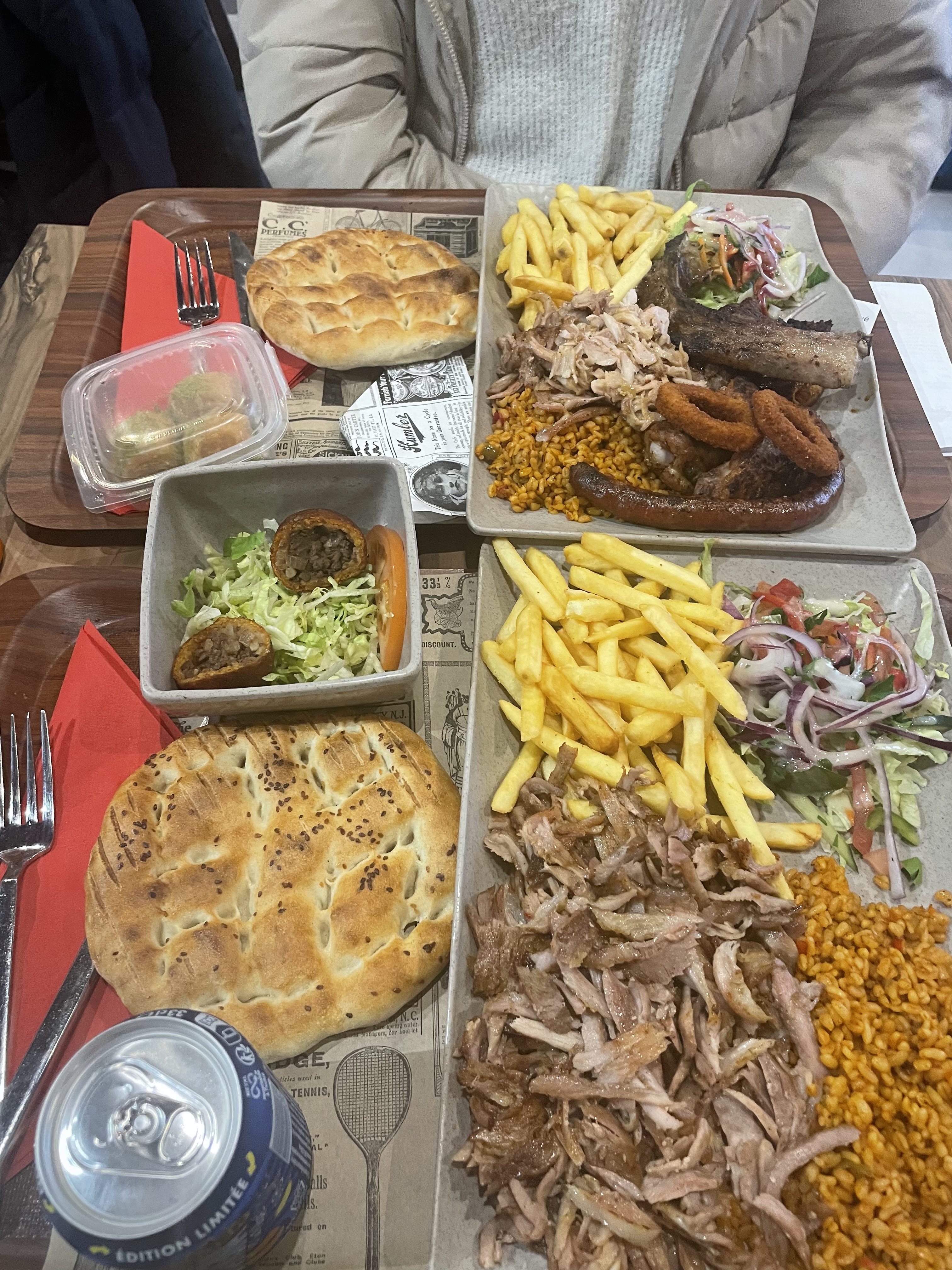 Voici un nouveau restaurant dans la zone de Fleury, il était temps ! Mes amis et moi, nous étions impatient de voir de la nouveauté ! Malheureusement le rapport qualité/prix n'est pas bon... Pour des frites surgelé le prix n'est pas en adéquation, les quantités ne sont pas non plus au rendez-vous. J'ai également pris un dessert, le fameux Baklava avec sa glace... Mais elle était congelé.