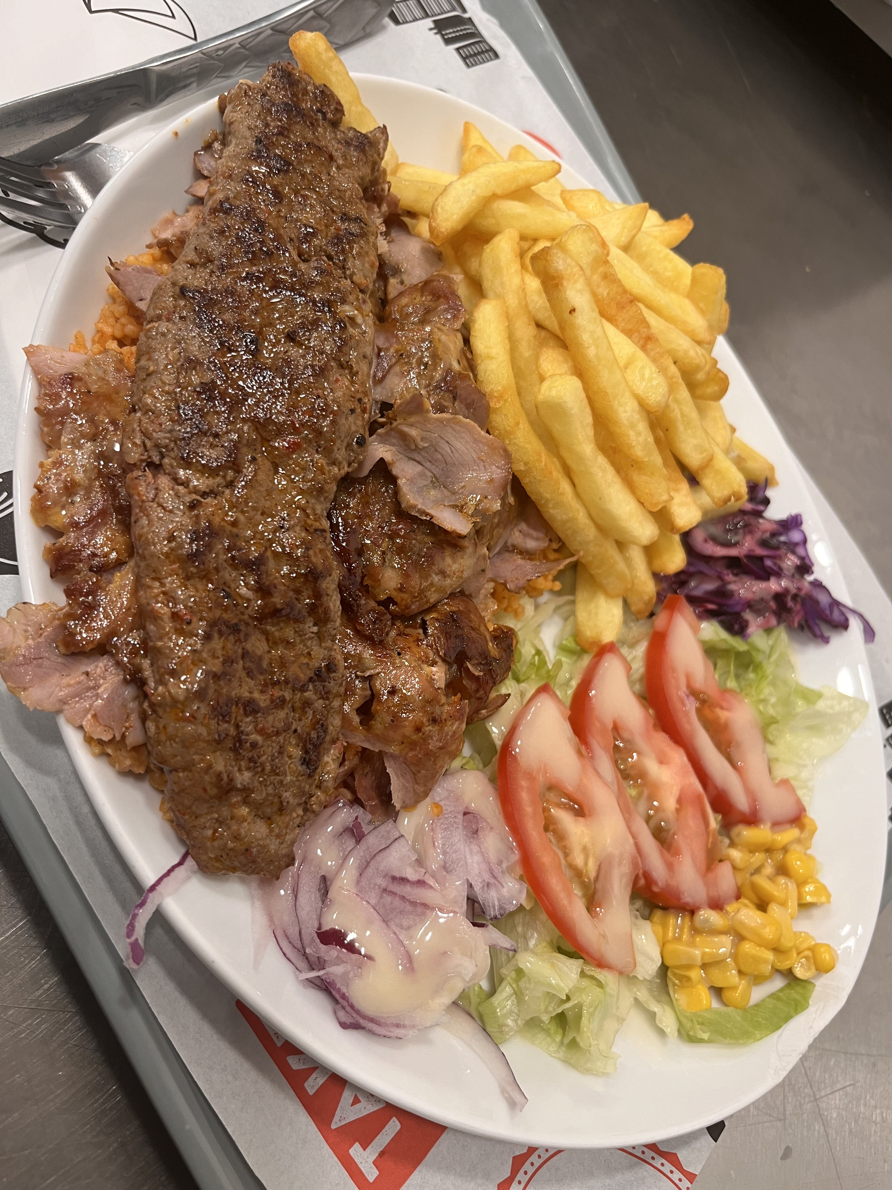 Kebab fait maison d’une très bonne qualité. Vous pouvez y aller les yeux fermés. Le meilleur du secteur sans aucun doute ! J’y ai vraiment retrouvé les saveurs du vrai kebab de Turquie, pareil pour mes enfants qui ont aussi adorés. Moi qui fréquente assez souvent des fast-food, ici ce n’est pas du tout le cas. Il mérite son appellation « maître kebabier »